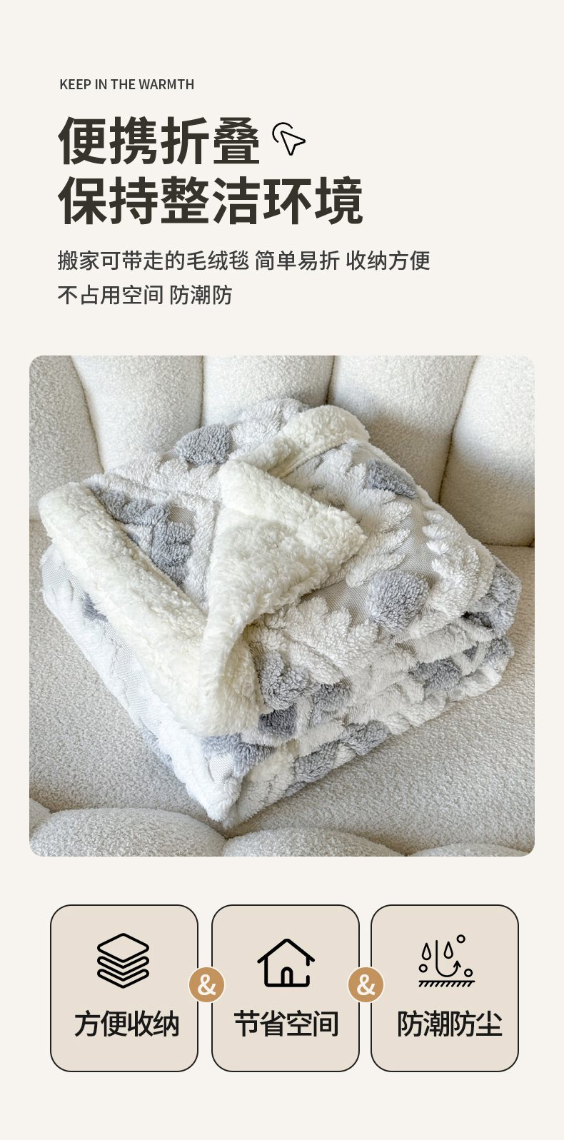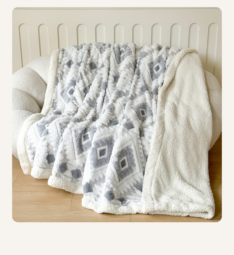 商品名称:梵克保罗 2025新款轻奢阳离子提花镂空塔芙绒羊羔绒保暖午睡双层毛毯办公室盖毯 组合图