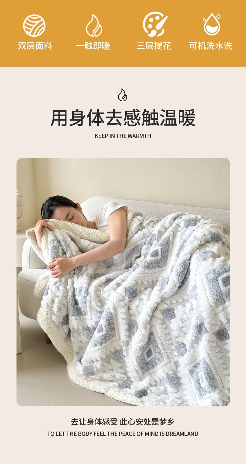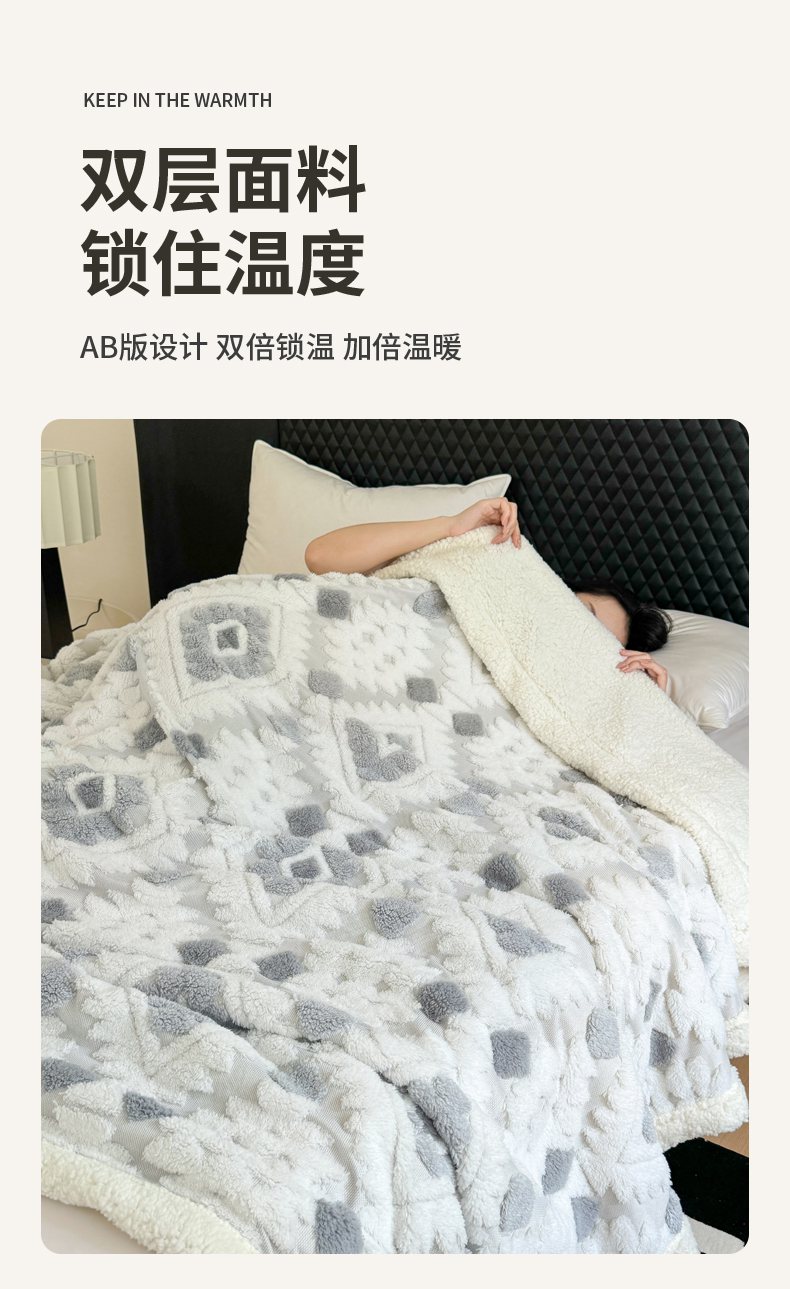 梵克保罗 2025新款轻奢阳离子提花镂空塔芙绒羊羔绒保暖午睡双层毛毯办公室盖毯 组合图