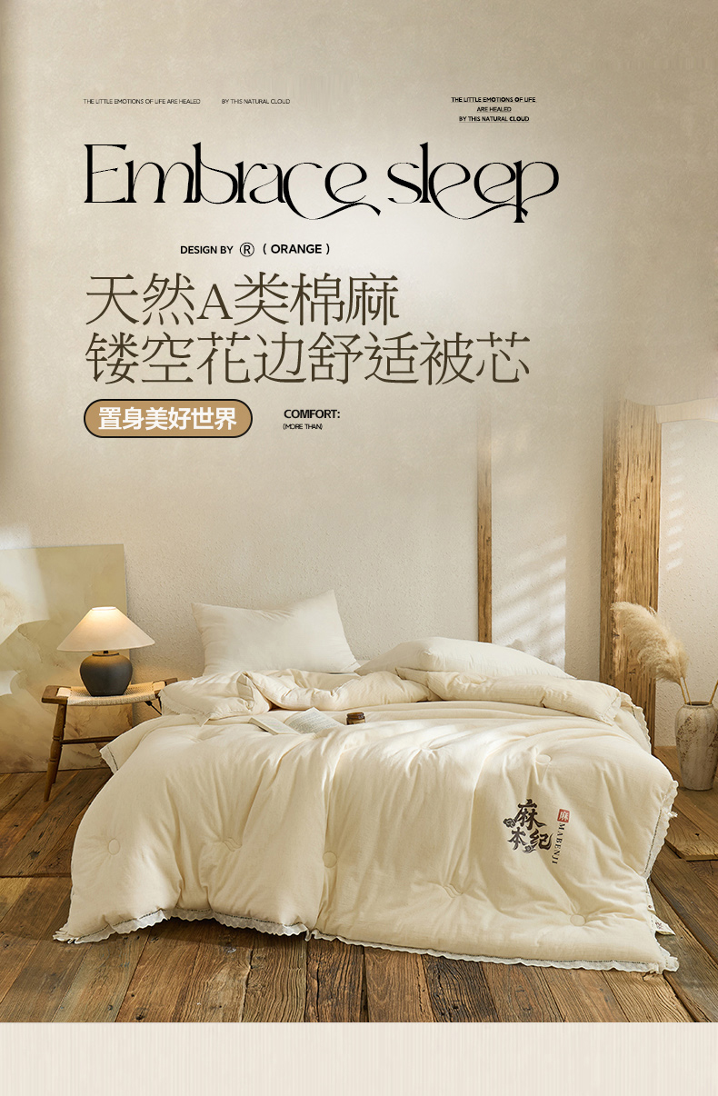 (总)雅高家居 2025新款麻本纪—天然A类棉麻镂空花边舒适冬被被子被芯(此款网上控价不得低于358,378元),麻本纪