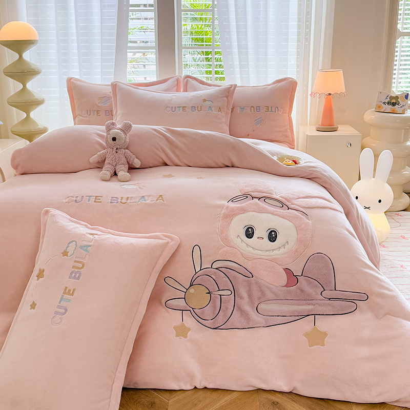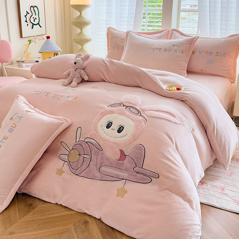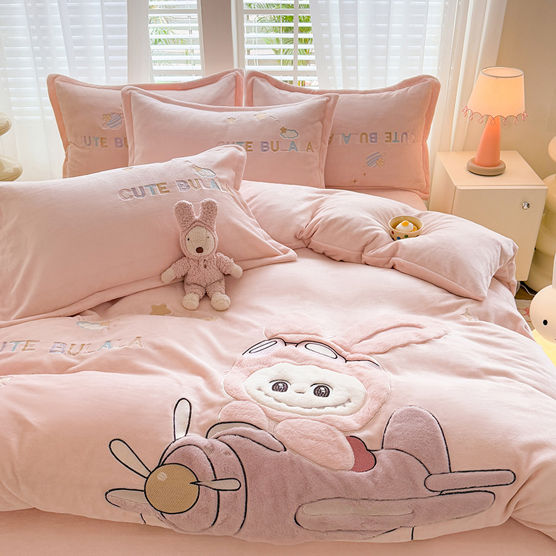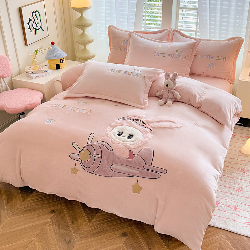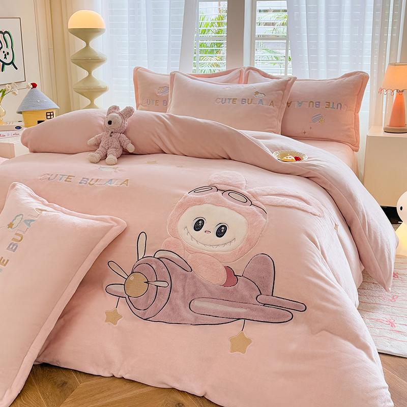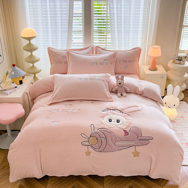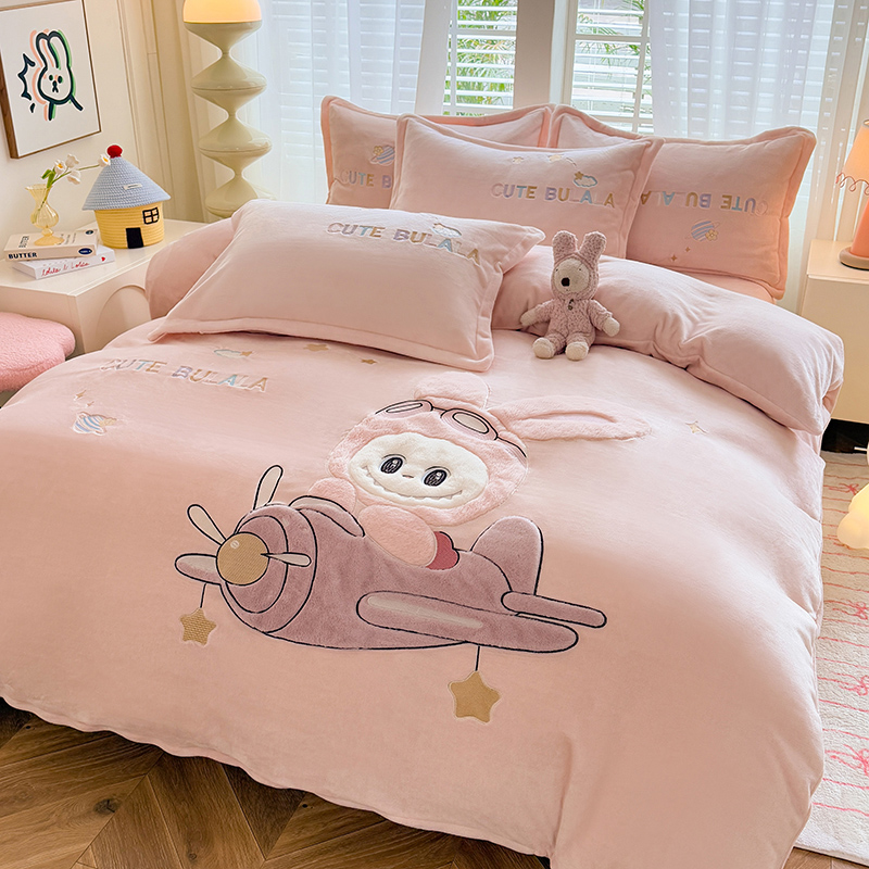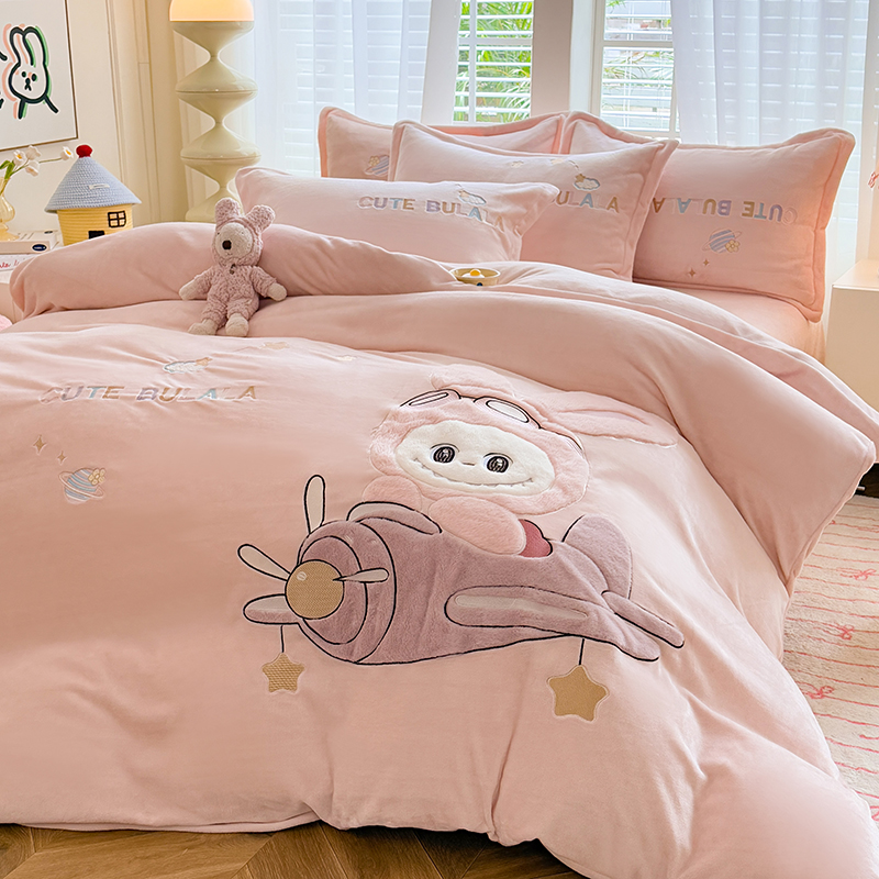 漫布云2025秋冬新品大版卡通230g牛奶绒兔毛贴布绣婴儿绒四件套--童梦园系列 童梦园-珍珠粉
