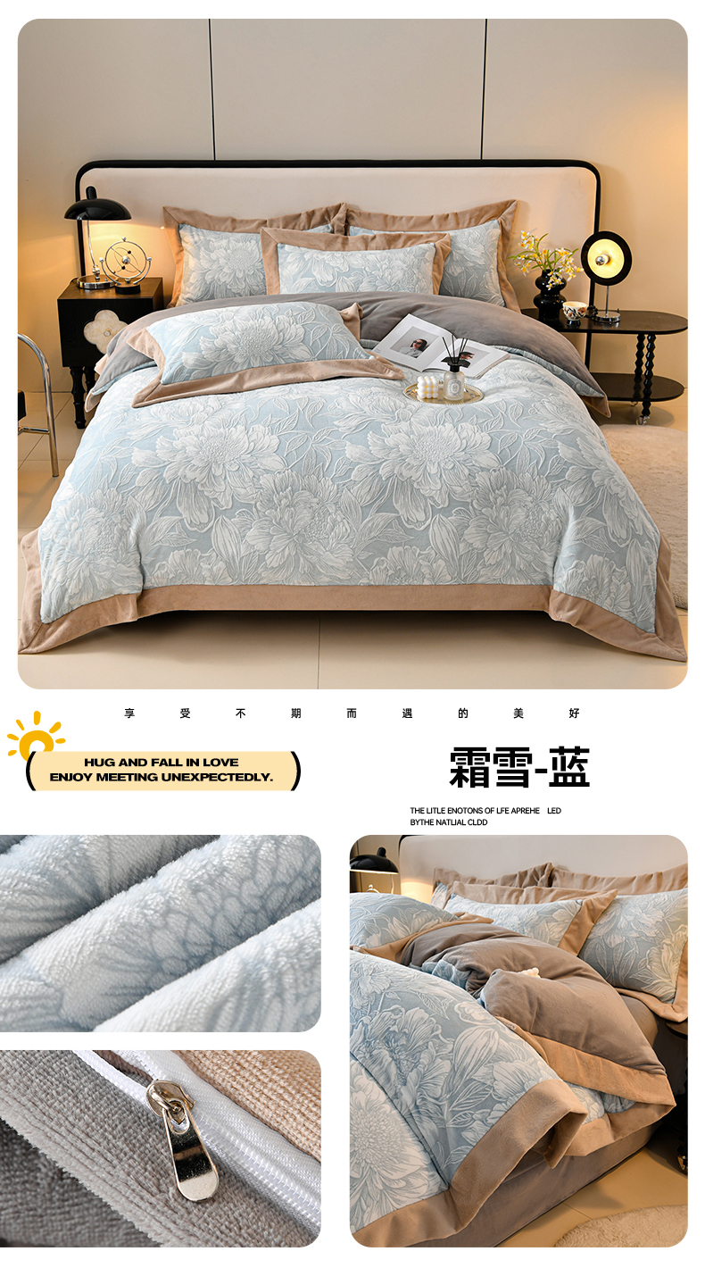 湘雪家居 2025新款高克重雕花牛奶绒四件套 霜雪款-繁枝花开