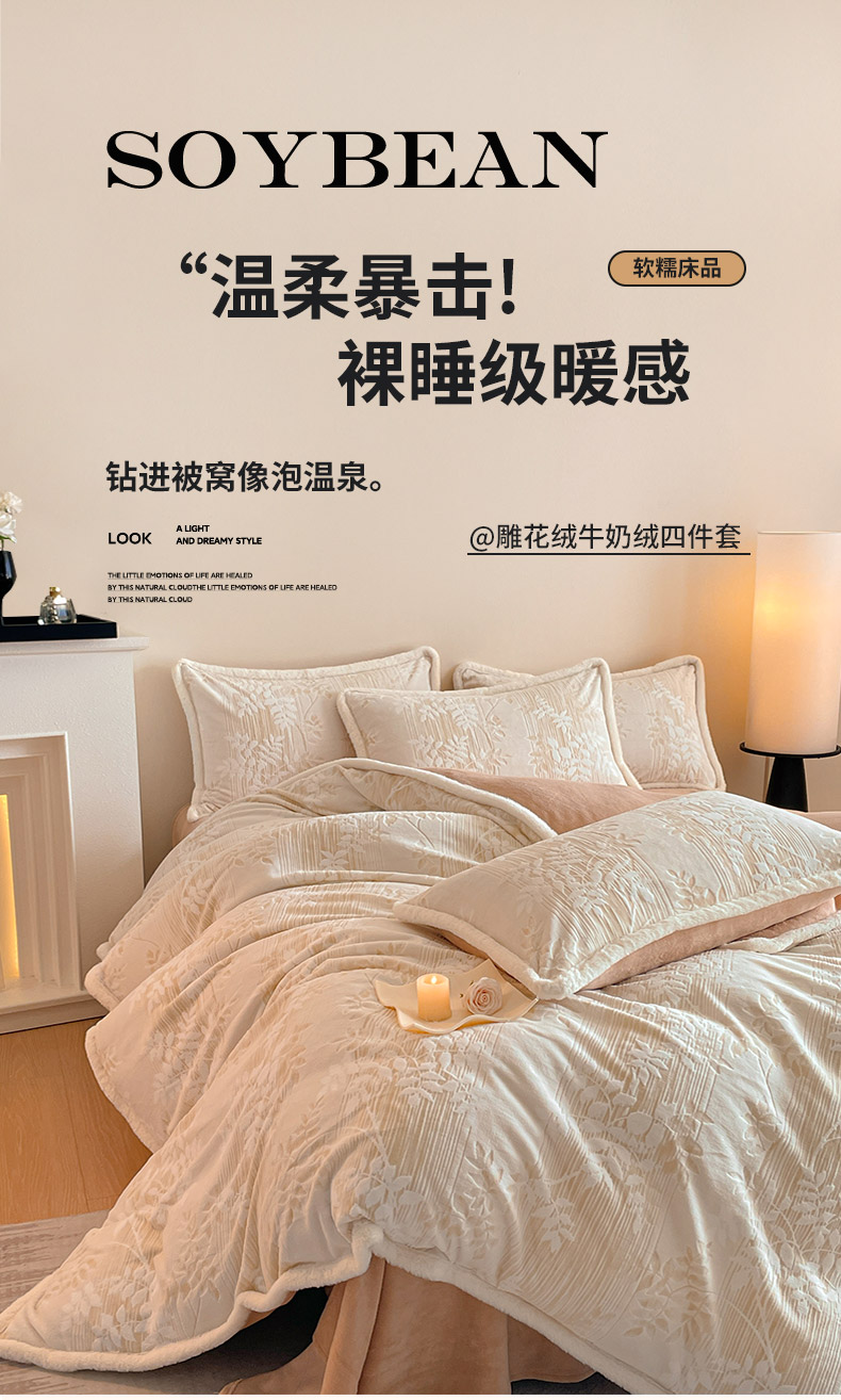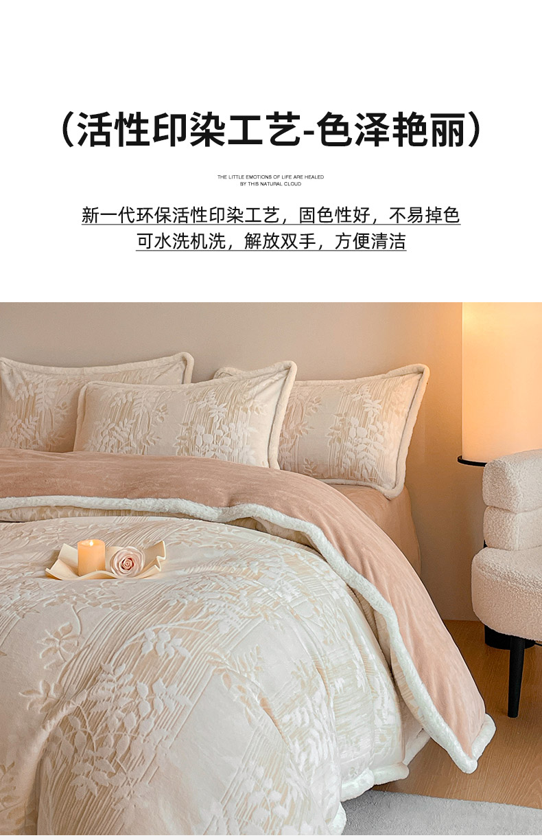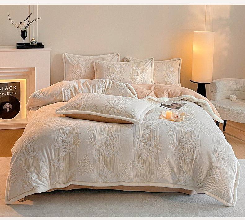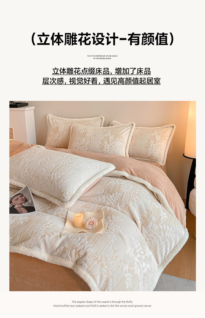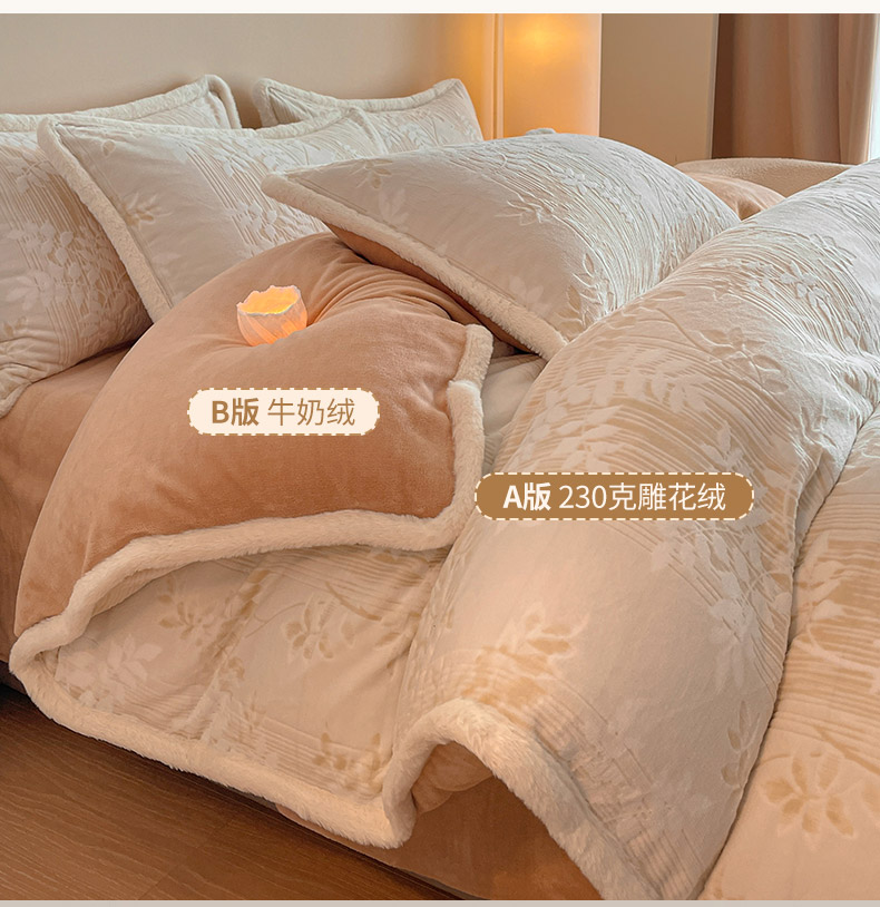 (总)吾诺 兔毛边230克雕花牛奶绒四件套 - 秋意系列,朝花,紫叶,花海,轻羽,飞花,秋意,冬梅,华美,春野