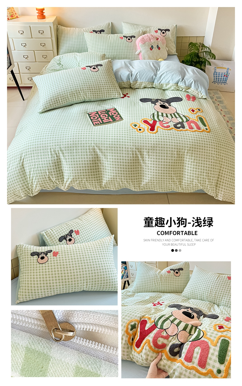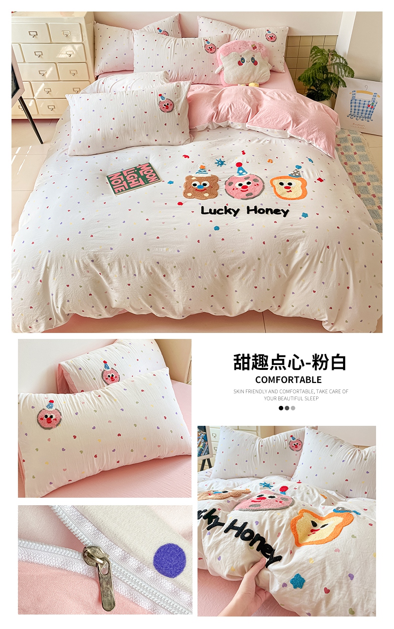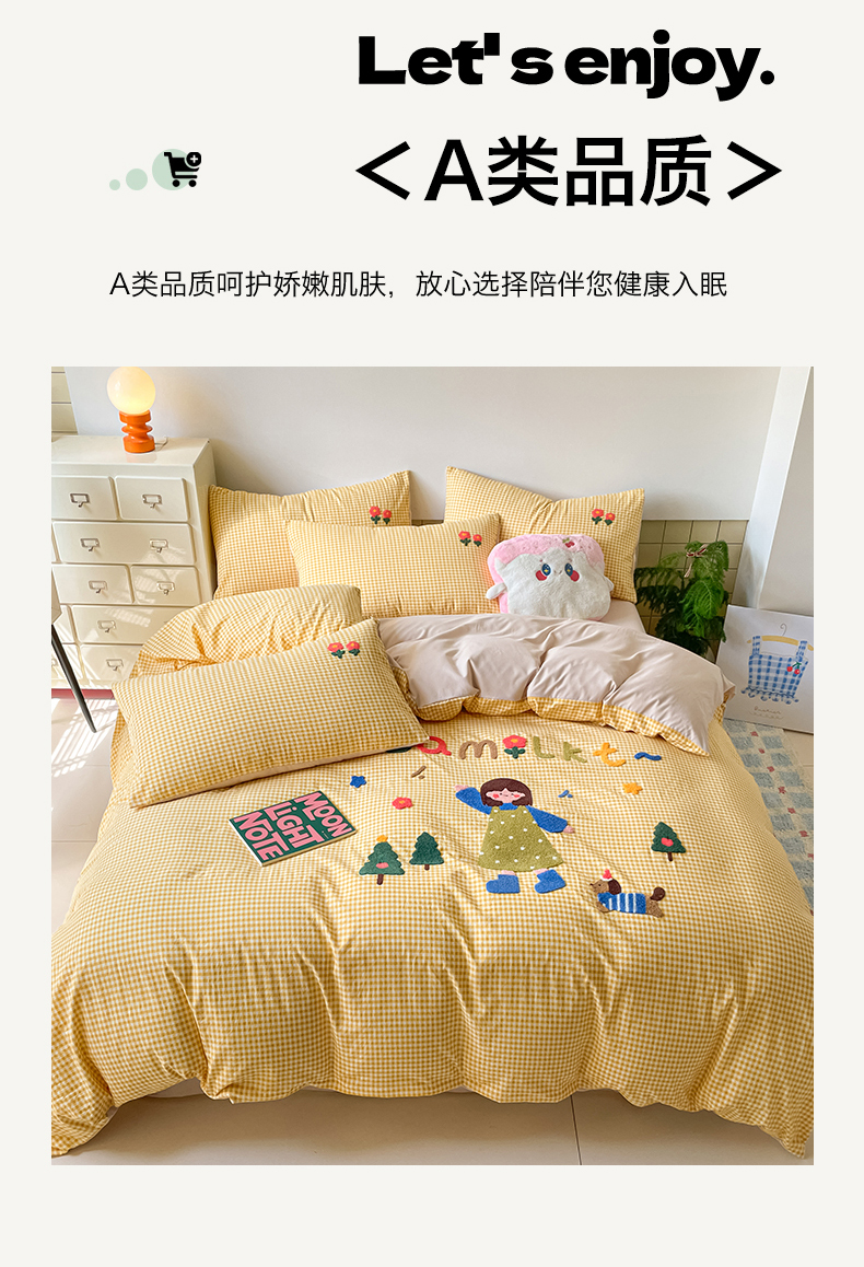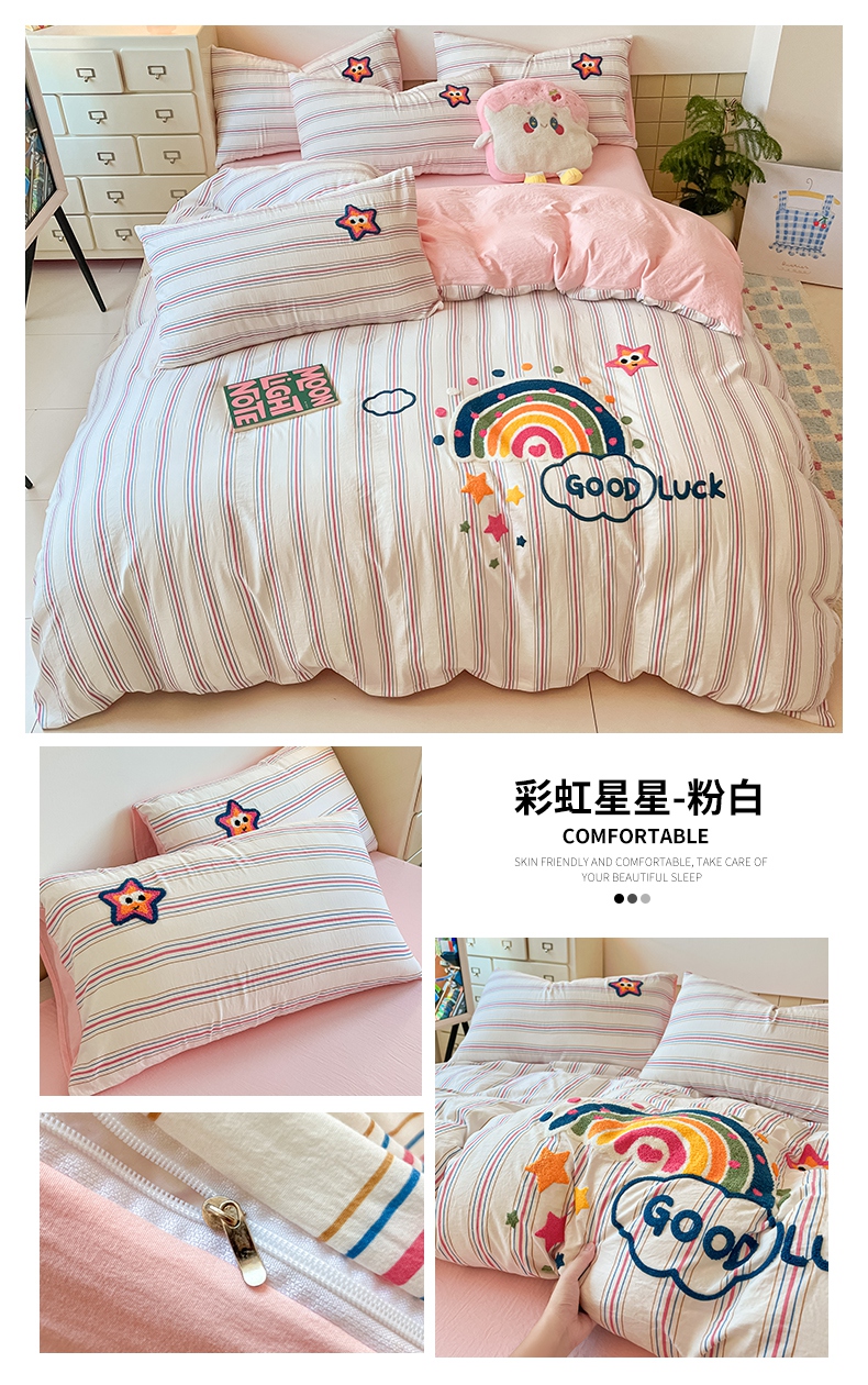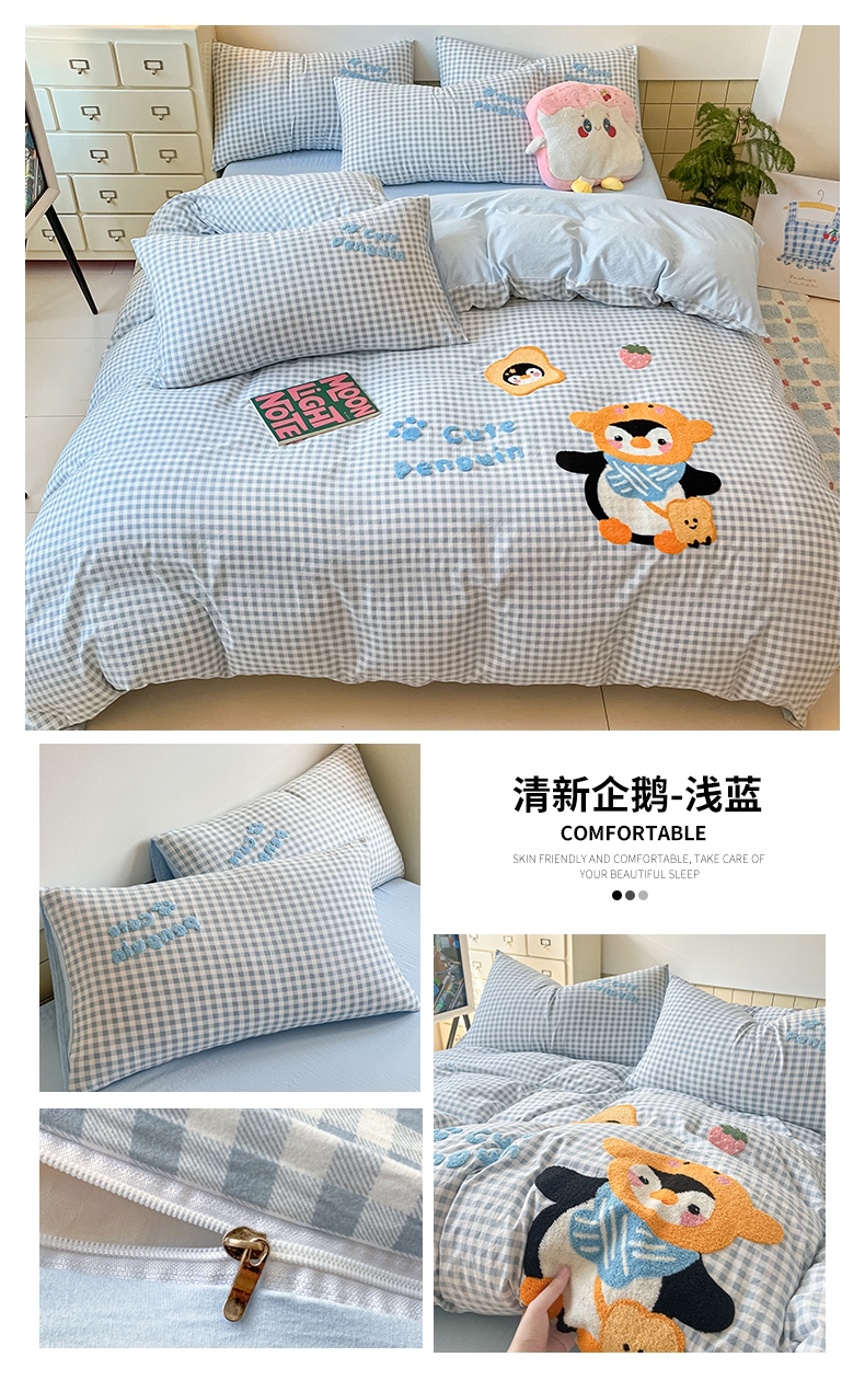 (总)义博家纺 2025新款韩版花边印花四件套四件套,格纹-浅蓝,碎花-淡紫,碎花-浅蓝,甜心-彩虹,碎花-浅粉,碎花-粉紫,条纹-淡紫,碎花-粉蓝,碎花-柔粉,碎花-粉彩,小猫-暖棕,小熊-奶白,花朵-淡蓝,蝴蝶-柔白,小熊-暖棕