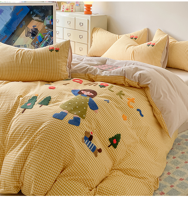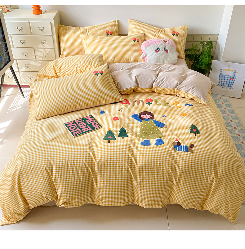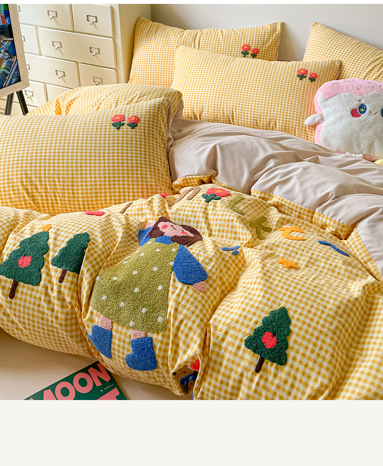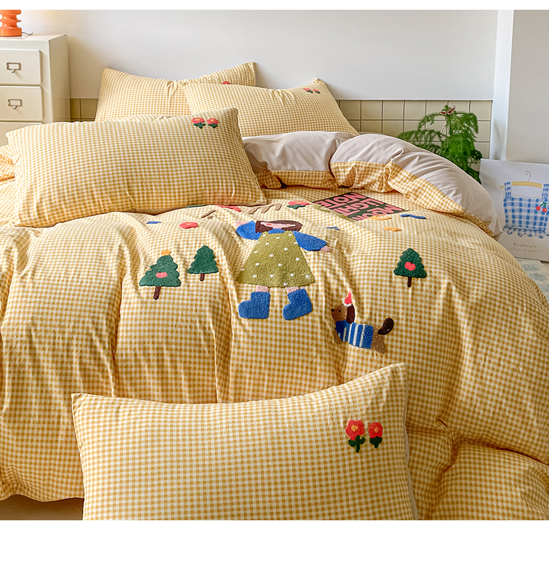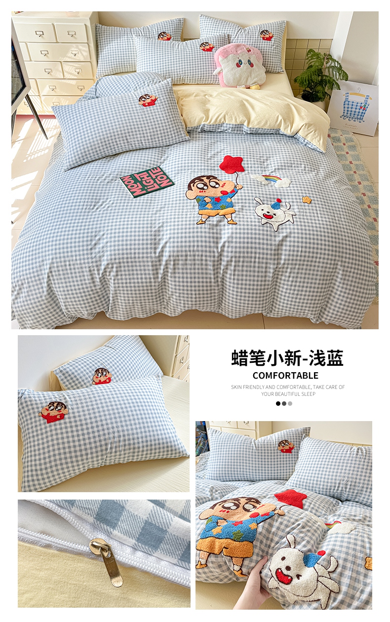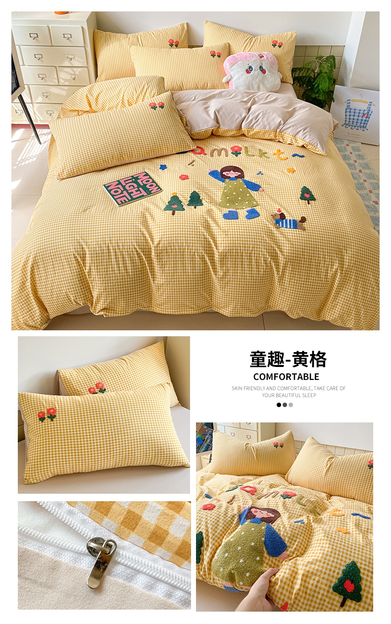 (总)义博家纺 2025新款韩版花边印花四件套四件套,格纹-浅蓝,碎花-淡紫,碎花-浅蓝,甜心-彩虹,碎花-浅粉,碎花-粉紫,条纹-淡紫,碎花-粉蓝,碎花-柔粉,碎花-粉彩,小猫-暖棕,小熊-奶白,花朵-淡蓝,蝴蝶-柔白,小熊-暖棕