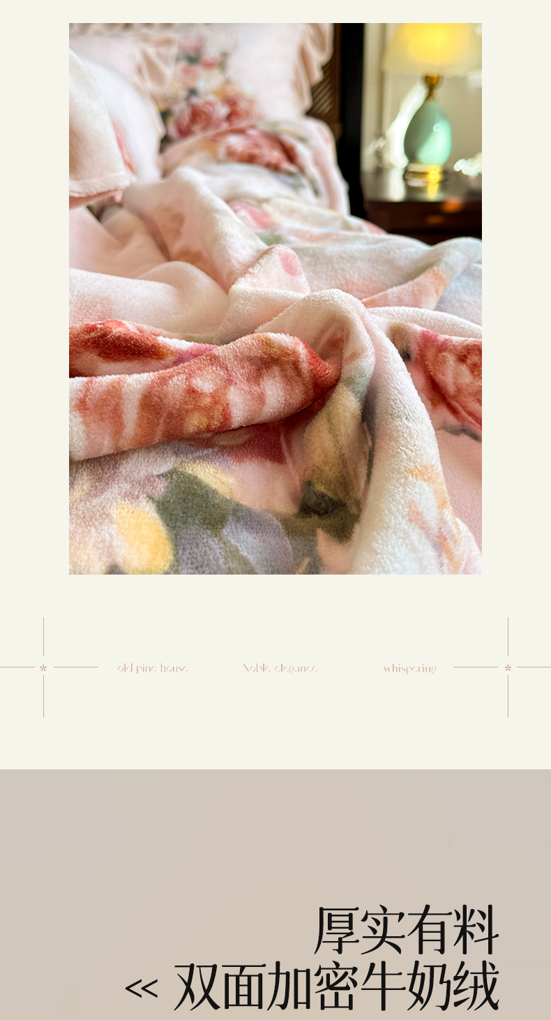 商品名称:宜凡家纺 2025新款牛奶绒5D数码印花床盖四件套 浮香如梦 浅卡其