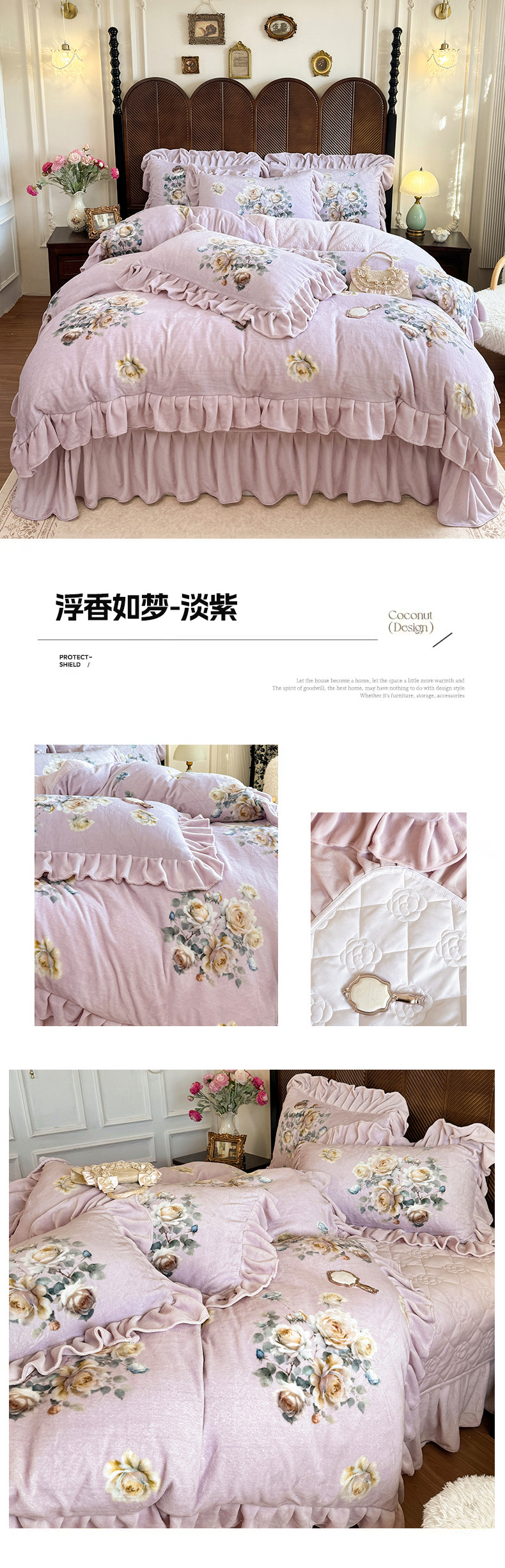(总)宜凡家纺 2025新款兔绒提花牛奶绒夹棉床裙四件套,爱心 少女粉,爱心 粉紫,爱心 驼色,蝶舞 大红,蝶舞 米色,蝶舞 浅紫,蝶舞 玉色,简爱 苍青,简爱 豆沙紫,简爱 玉色,樱桃 苍青,樱桃 豆沙紫,樱桃 奶油白