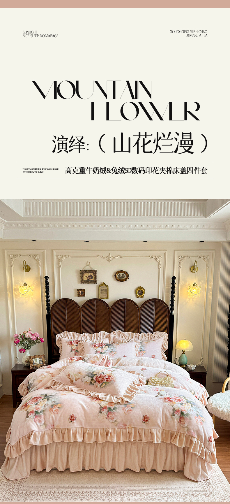 (总)宜凡家纺 2025新款全棉数码印花床裙四件套系列二,繁花似锦,春景熙熙,花间密语,花间柔光,满芯花溪,迷离夜色,婉如初见,雪域森林