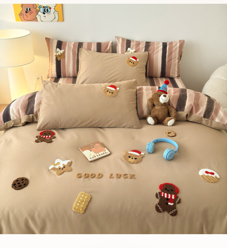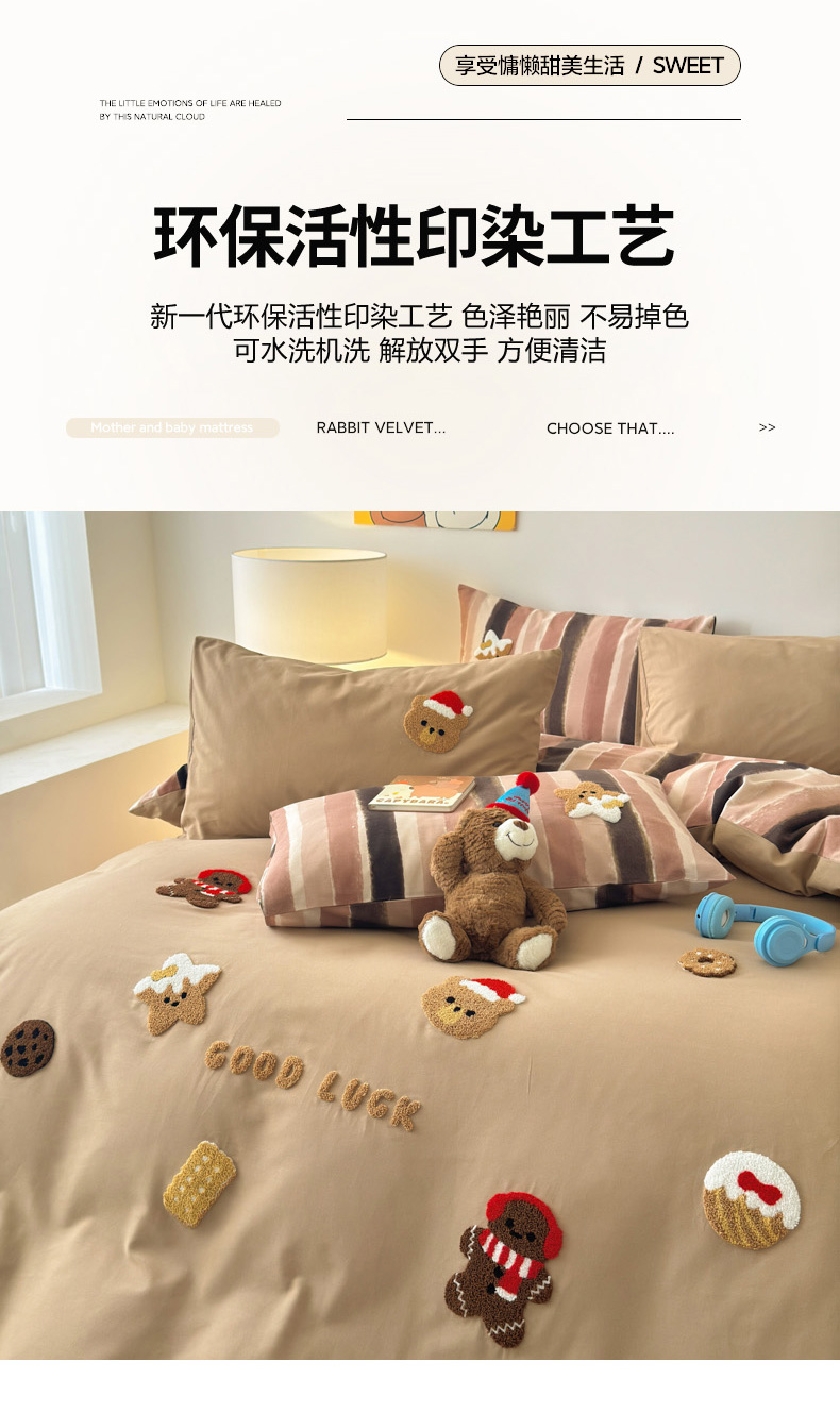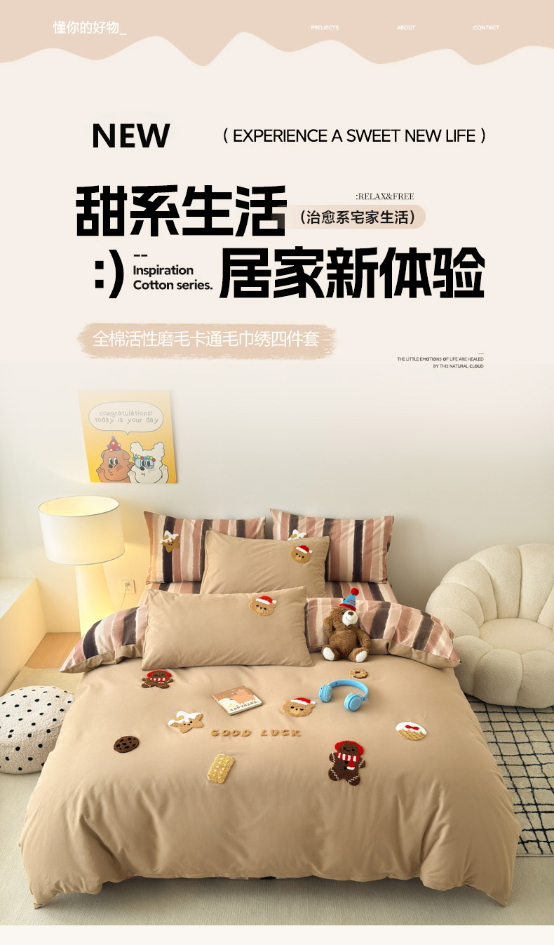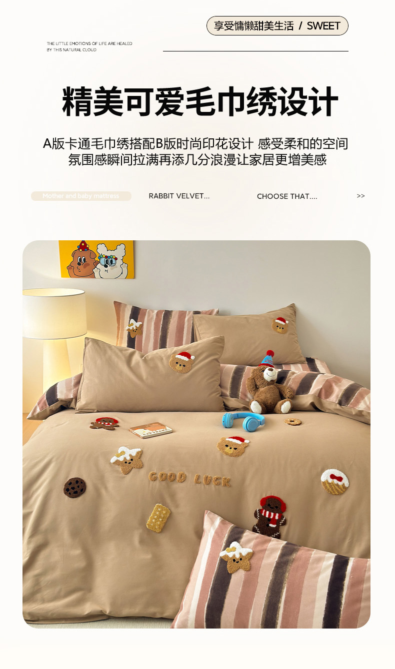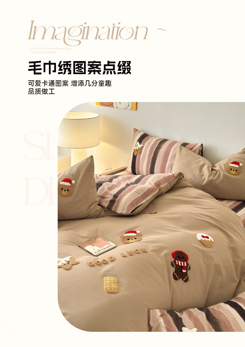 当前位置: 91家纺网 > 商品网购 > 床品套件 > 四件套 > 普通磨毛四件套 > 如意朵 2025新款全棉加厚磨毛毛巾绣四件套(专版花型) 姜饼人