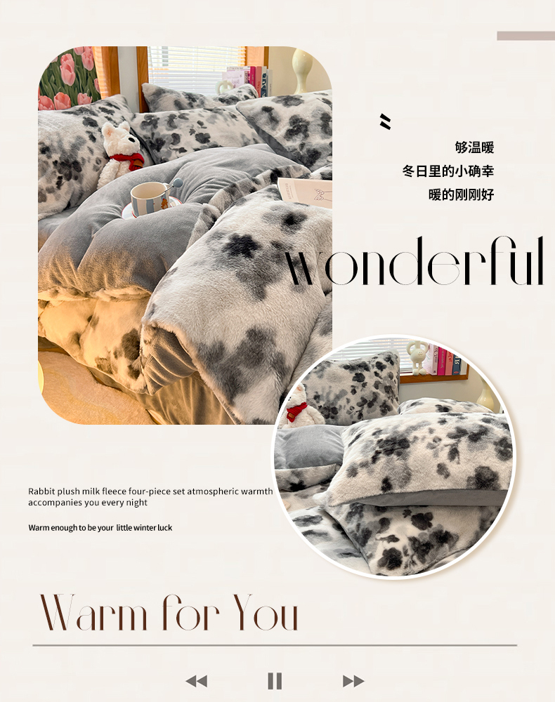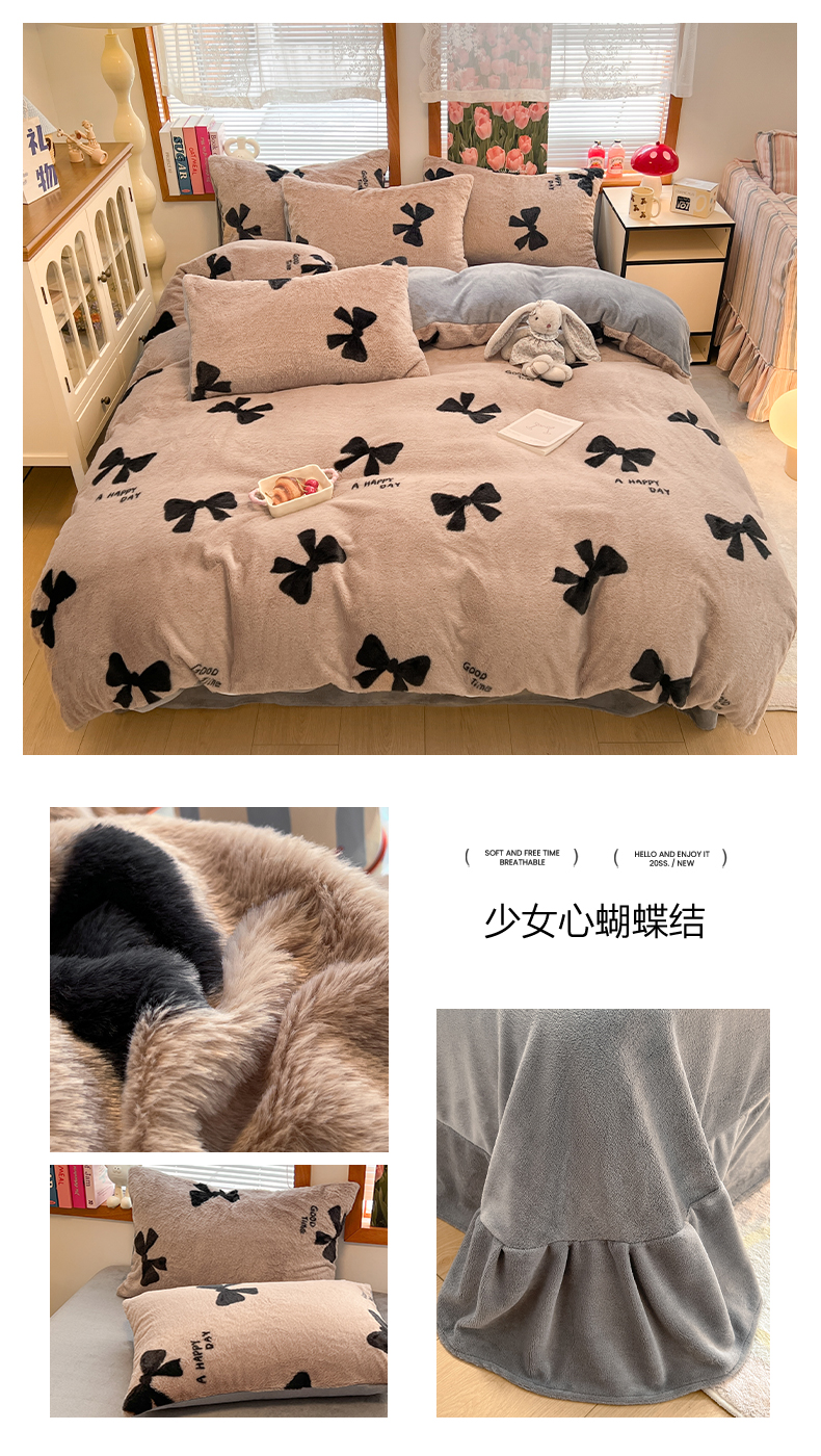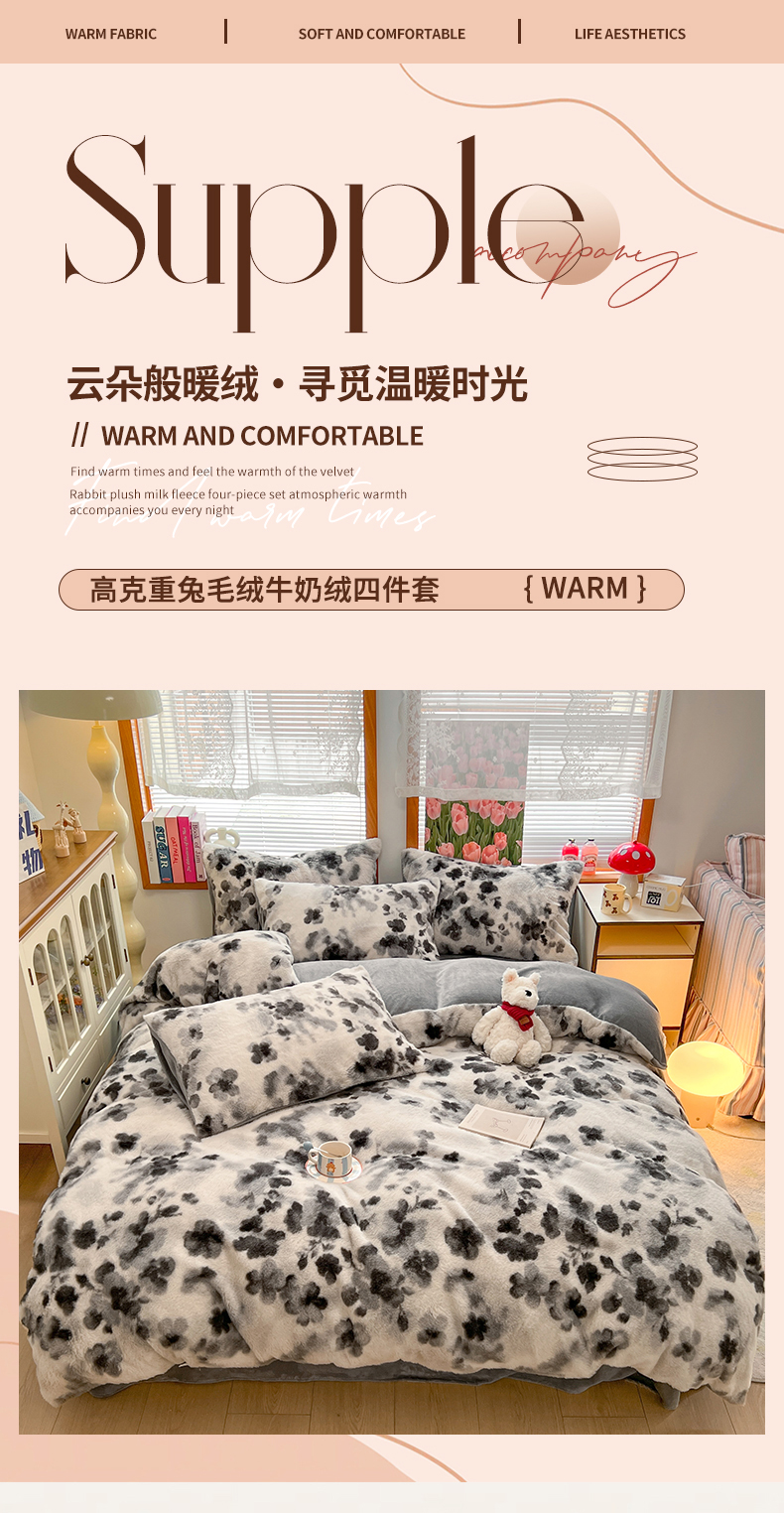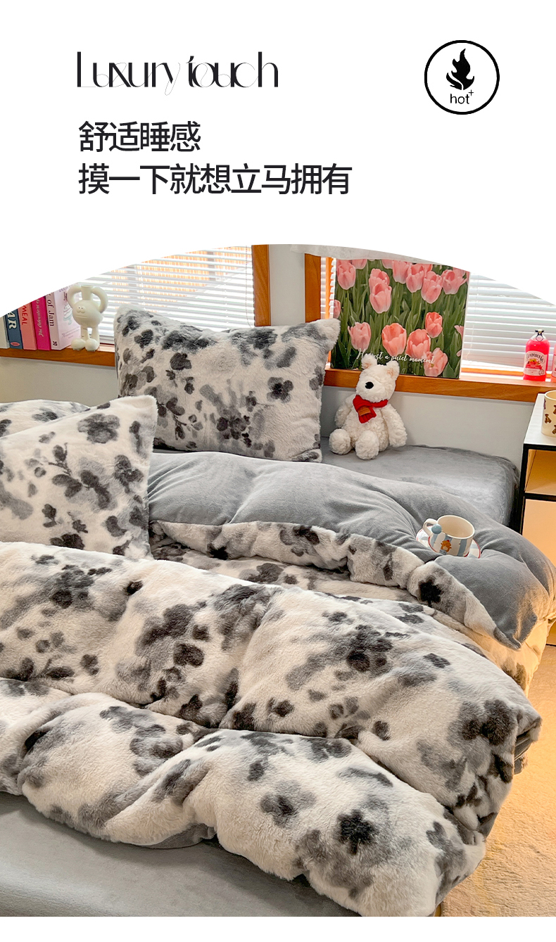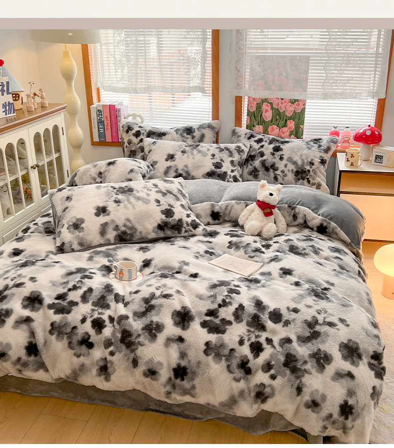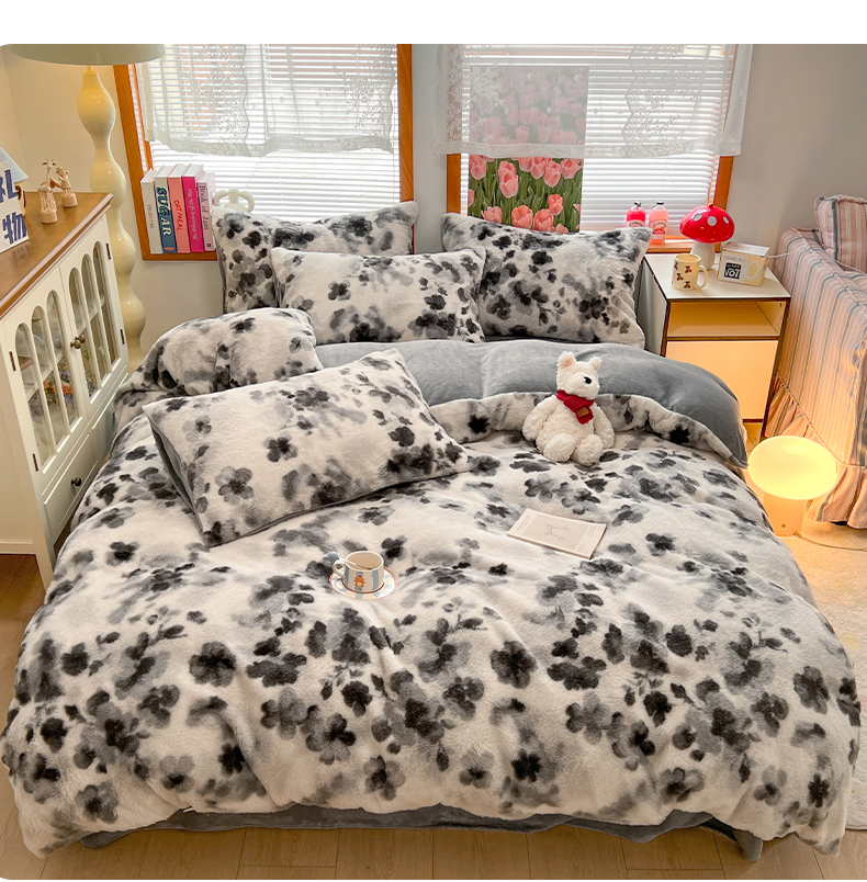 当前位置: 91家纺网 > 商品网购 > 床品套件 > 四件套 > 其它四件套 > 妖妖家纺 2025新款加厚印花兔毛绒保暖四件套 墨染