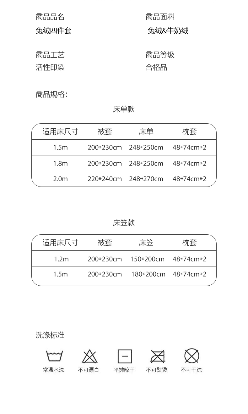 【床笠款】1.8四件套-被套200x230 | ¥95.00 |