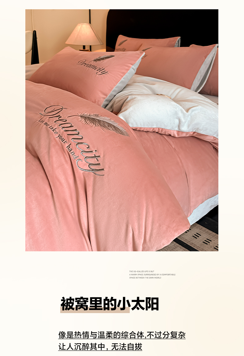 当前位置: 91家纺网 > 商品网购 > 床品套件 > 四件套 > 其它四件套 > 如一 2025新款水晶绒双拼刺绣四件套轻羽系列 轻羽-豆沙灰
