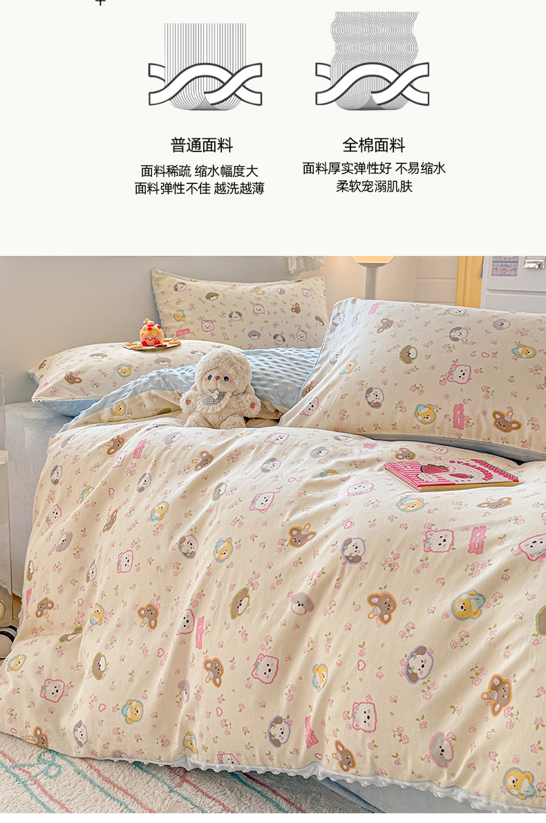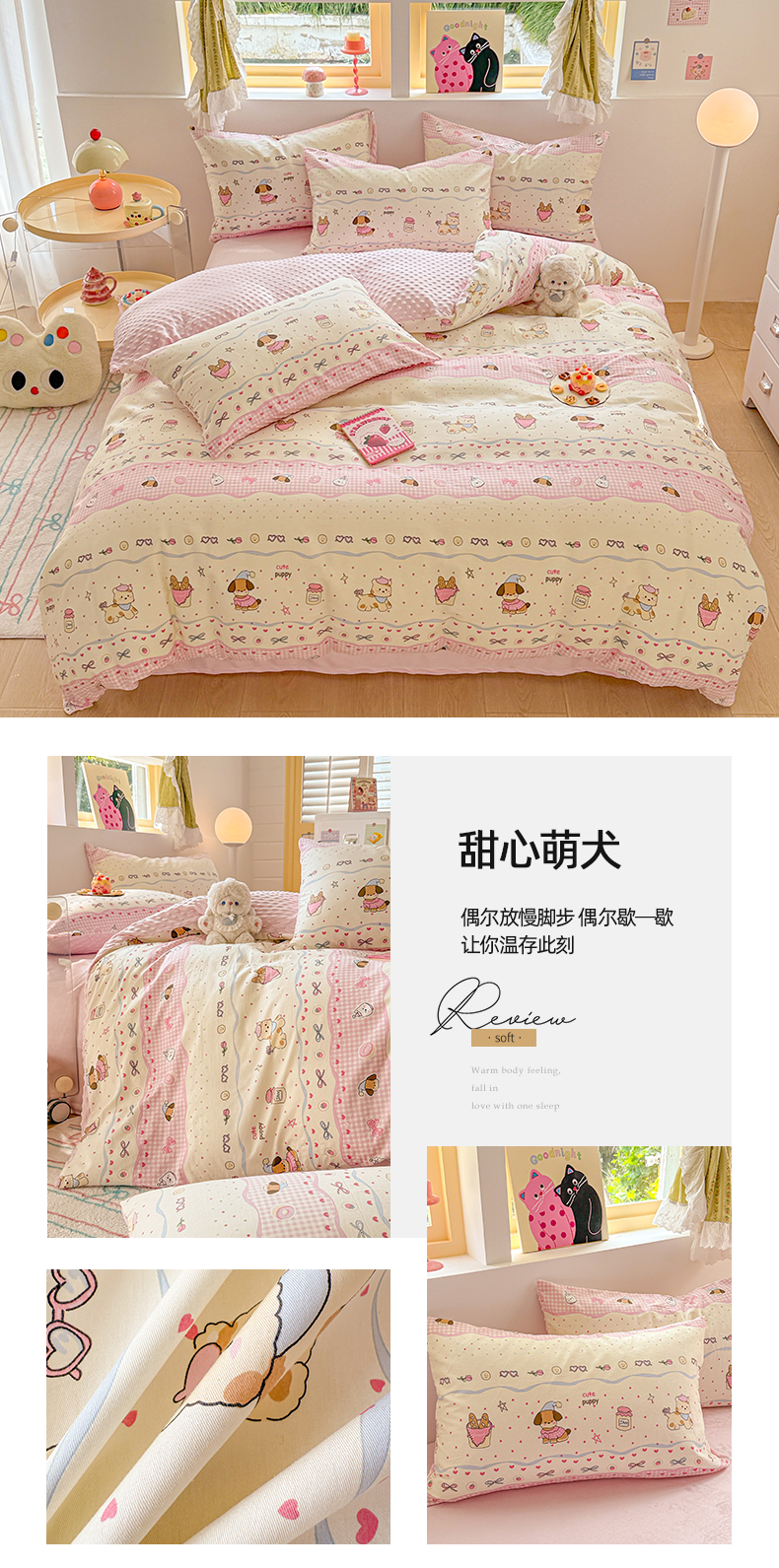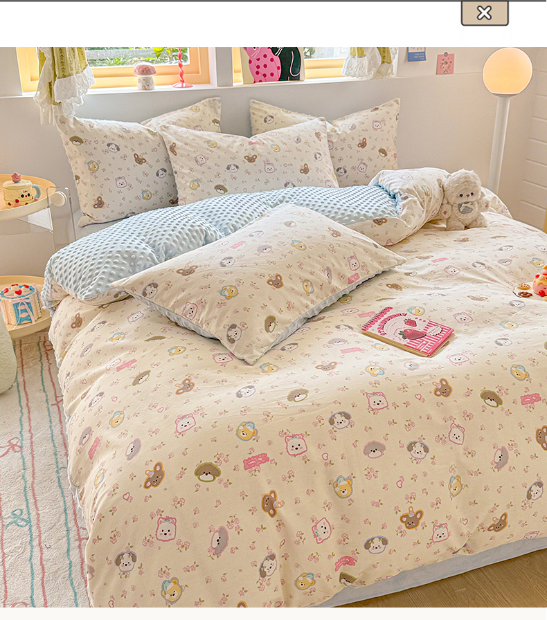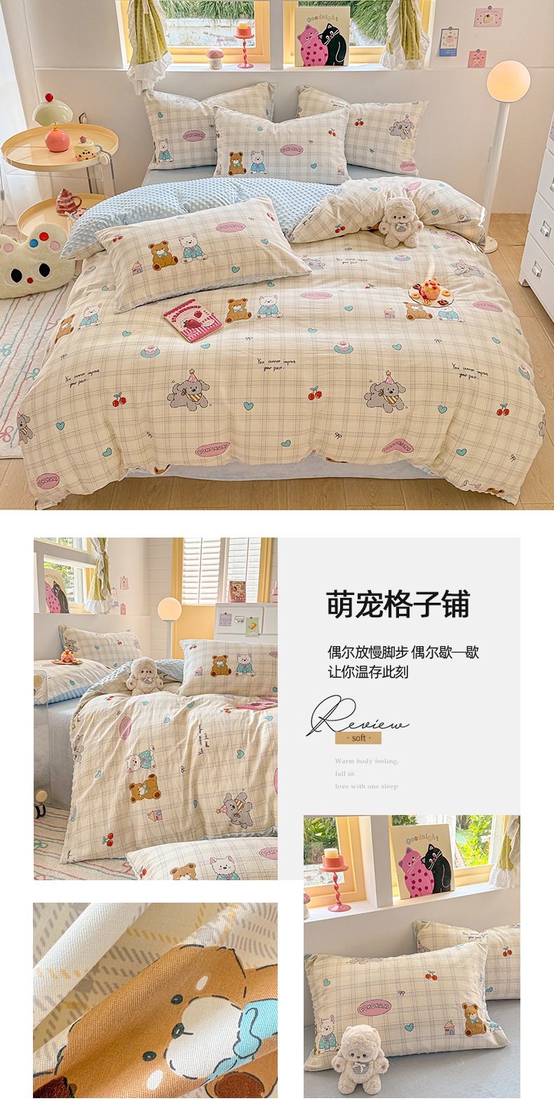 当前位置: 91家纺网 > 商品网购 > 床品套件 > 四件套 > 其它四件套 > 简宜家居(朝初家纺) 2025新款全棉安抚豆豆绒卡通印花小清新四件套 萌宠格子铺