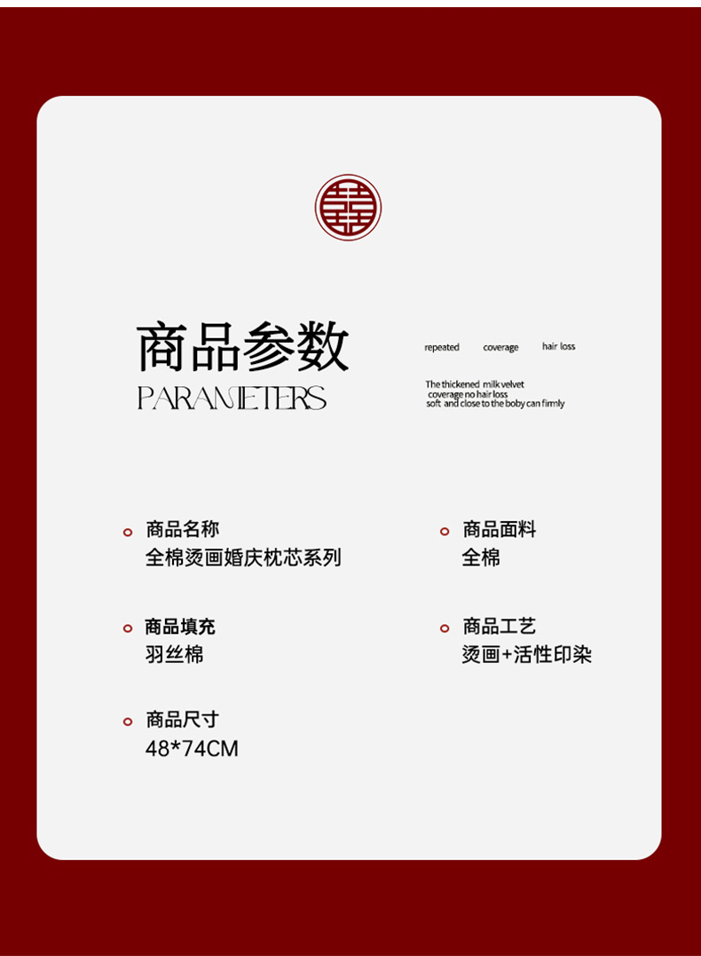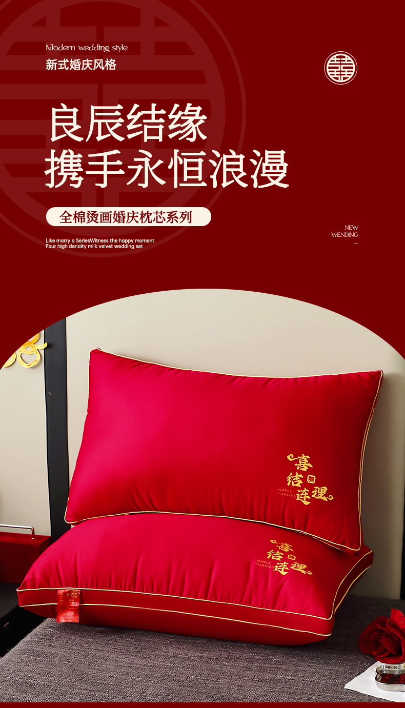 当前位置: 91家纺网 > 商品网购 > 枕头/枕芯/保健枕/颈椎枕 > 枕头枕芯 > (总)糖果枕芯 2025新款全棉烫画婚庆枕芯系列-喜结连理