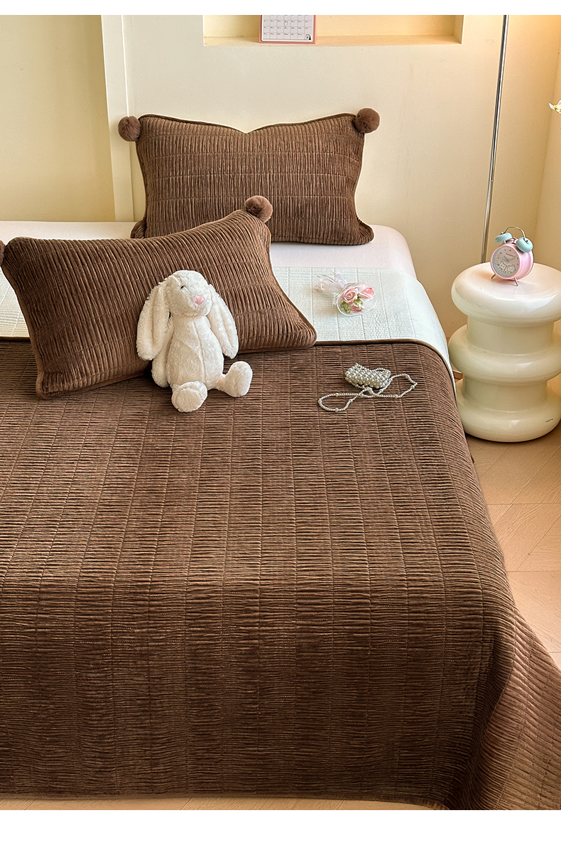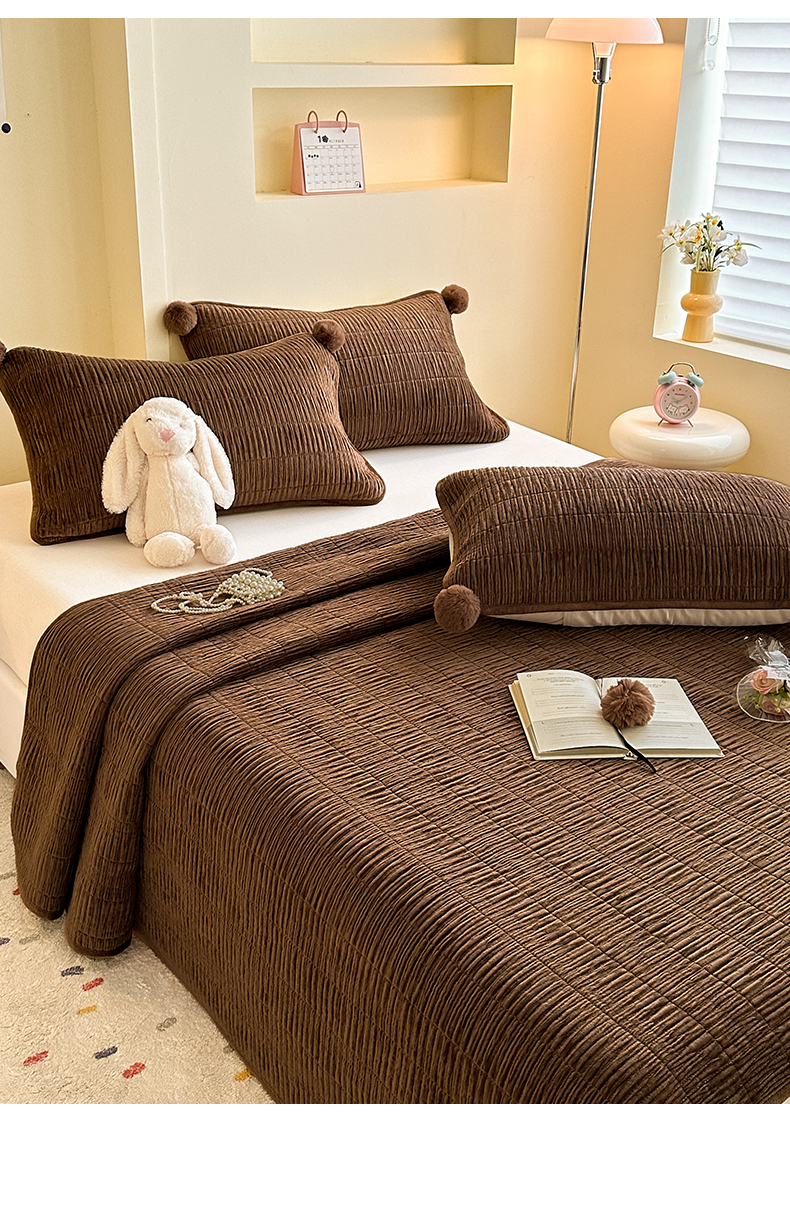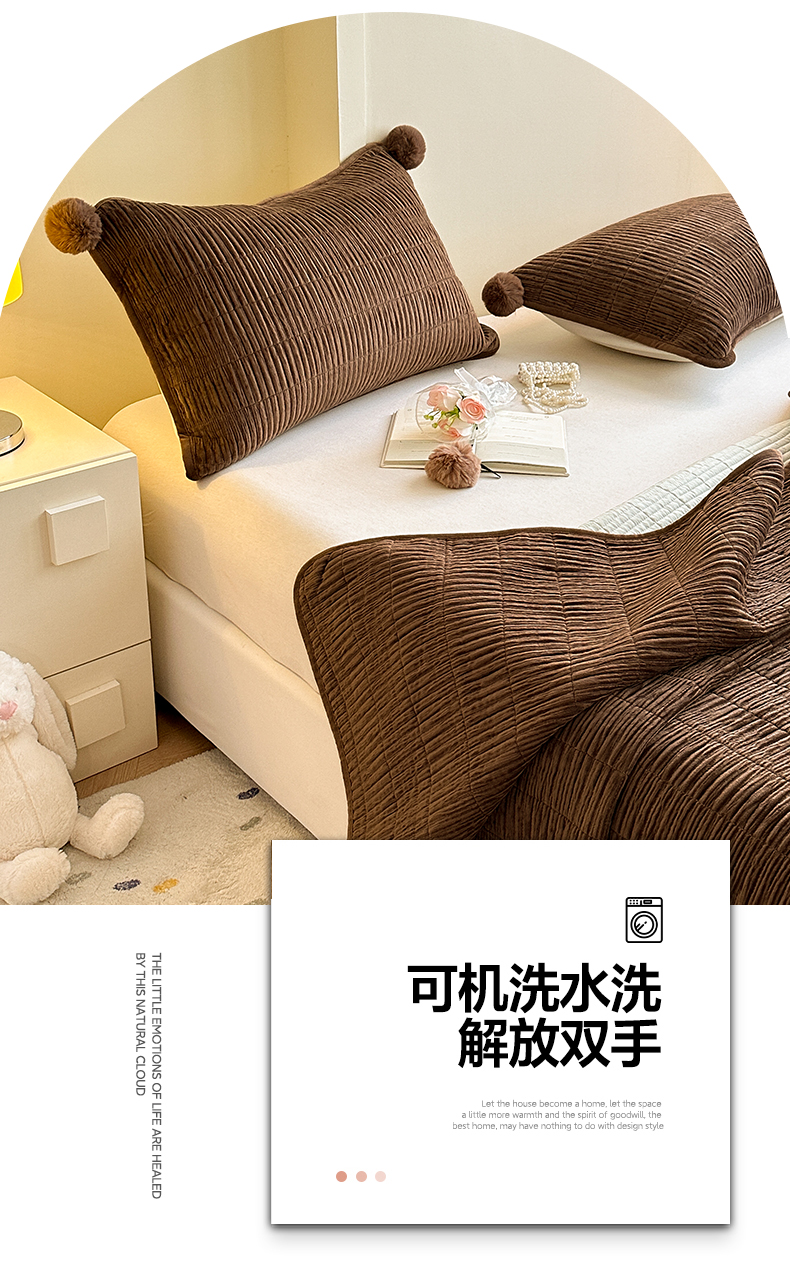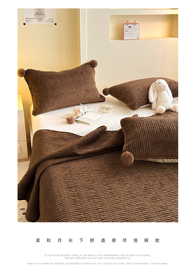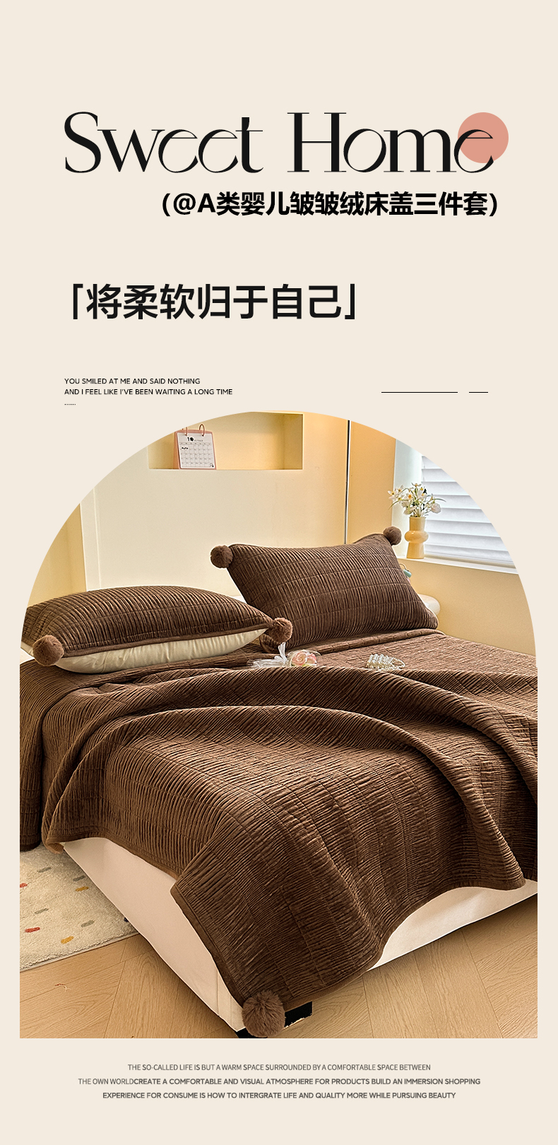 寐居家纺 2025新款婴儿皱皱绒纯色床盖三件套 青岚-枫塘棕