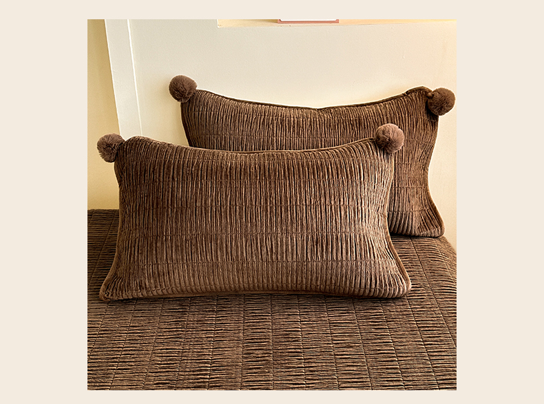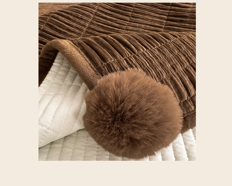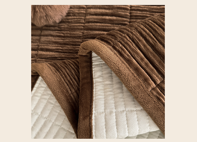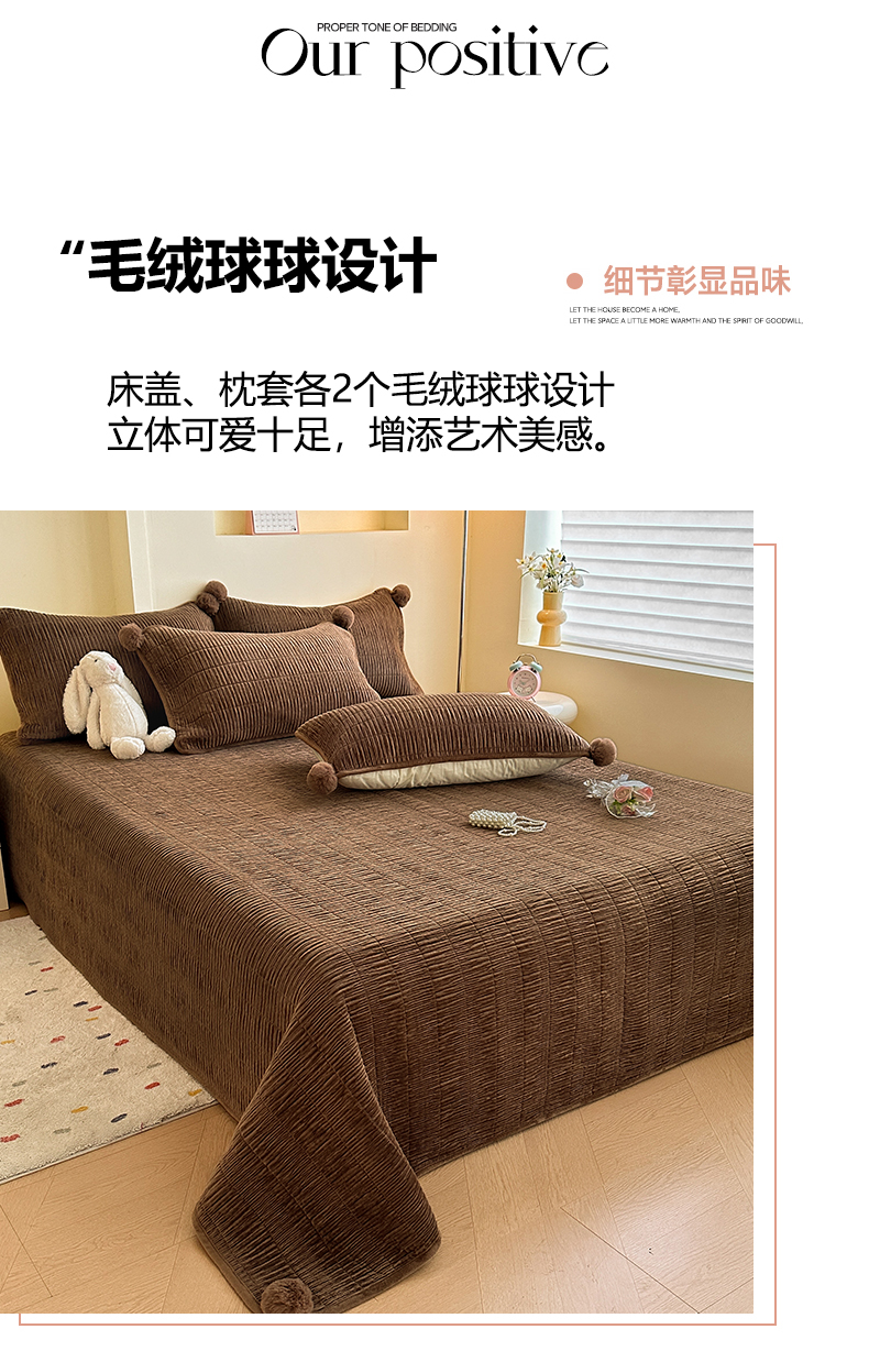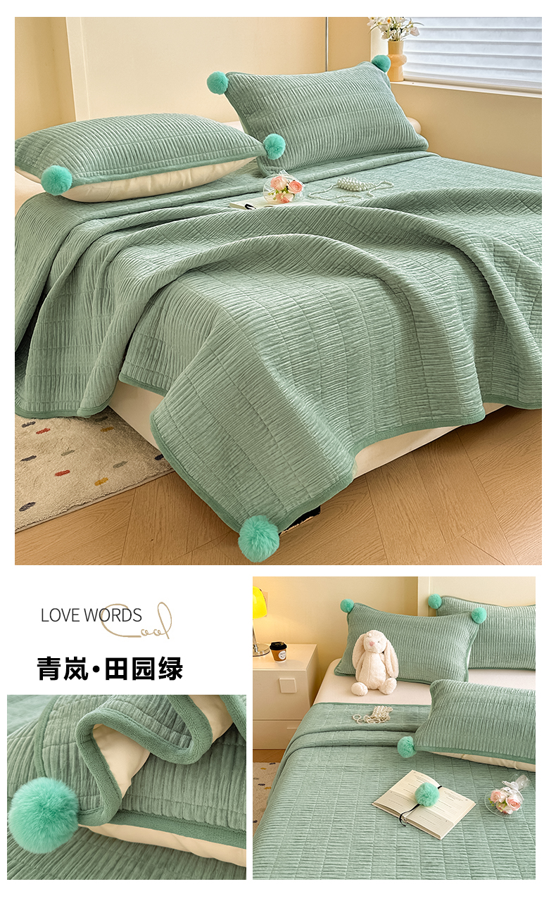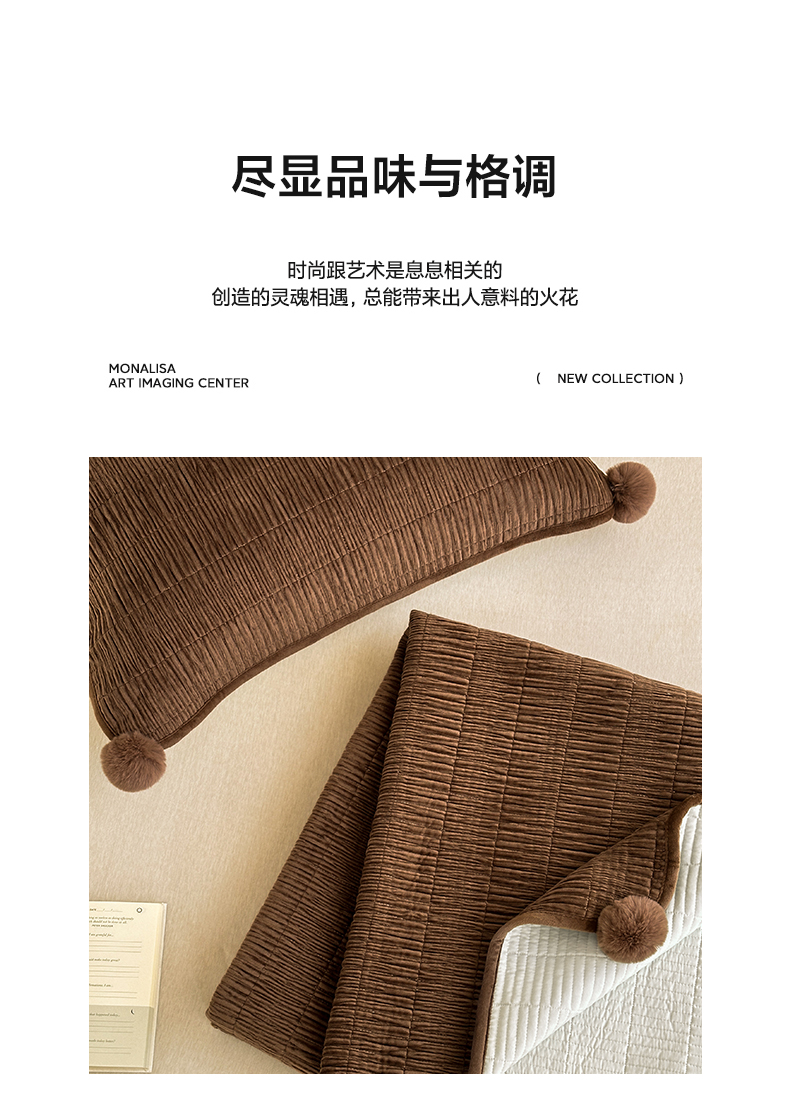 寐居家纺 2025新款婴儿皱皱绒纯色床盖三件套 青岚-枫塘棕