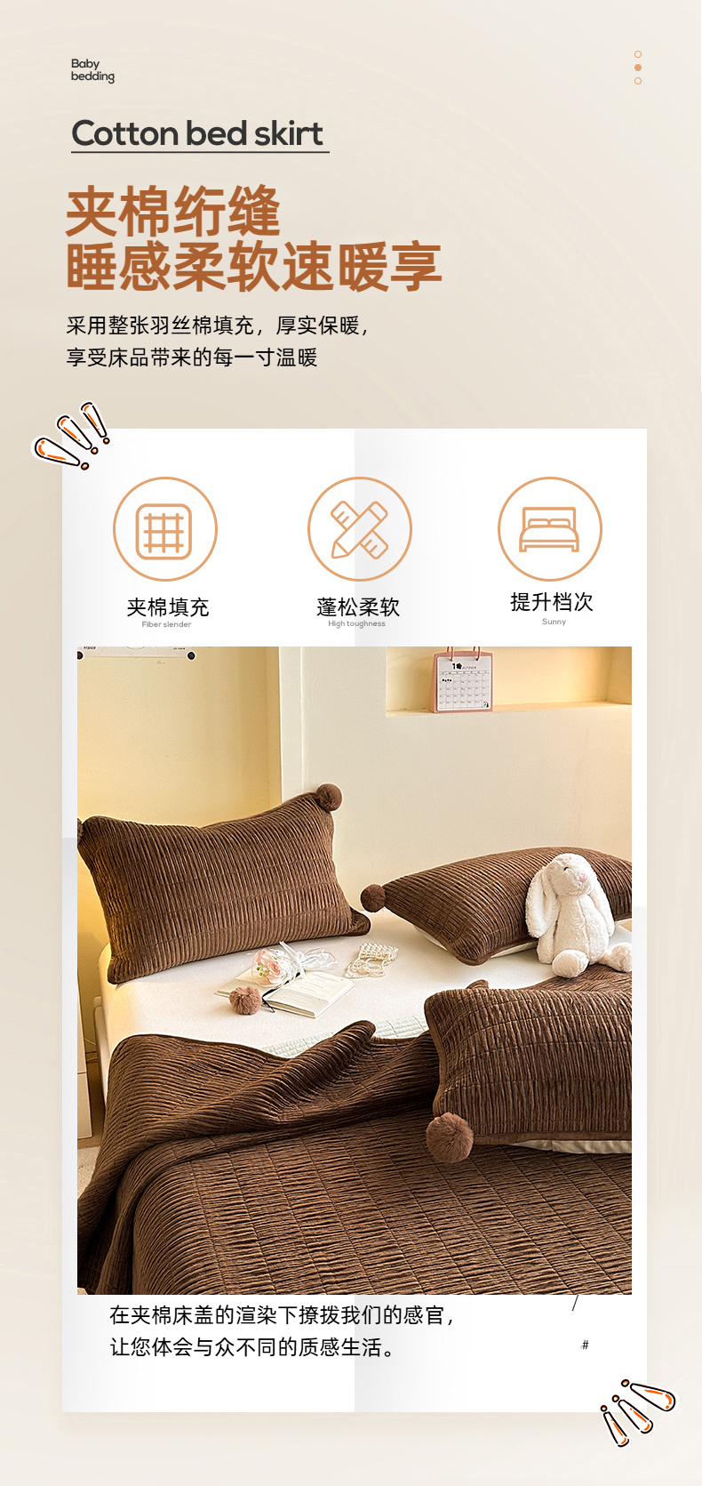 商品名称:寐居家纺 2025新款婴儿皱皱绒纯色床盖三件套 青岚-枫塘棕