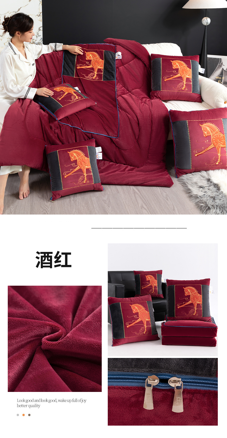 (总)吉利家居 2025新款婴儿绒多功能抱枕被-彩云马,宝石蓝,高级灰,酒红,孔雀蓝,雾霾灰