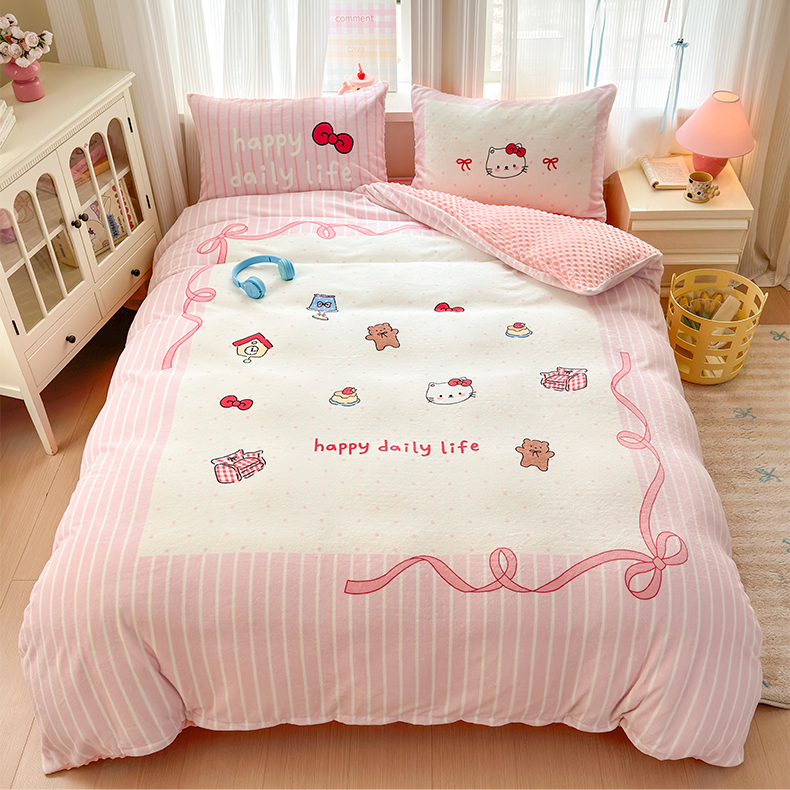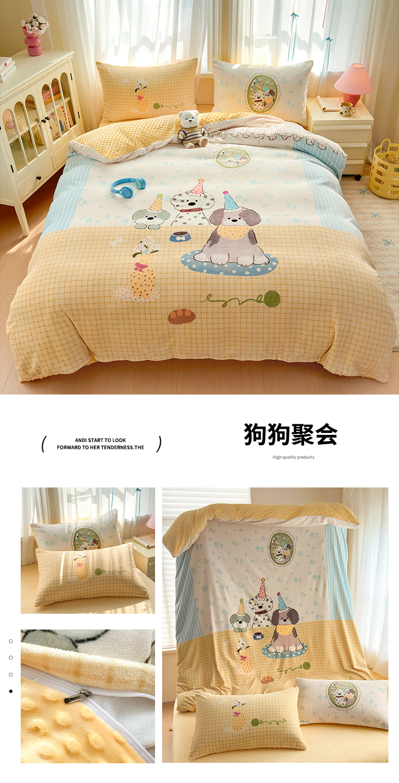 (总)星期八 2025新款卡通大版牛奶绒豆豆绒数码印花四件套