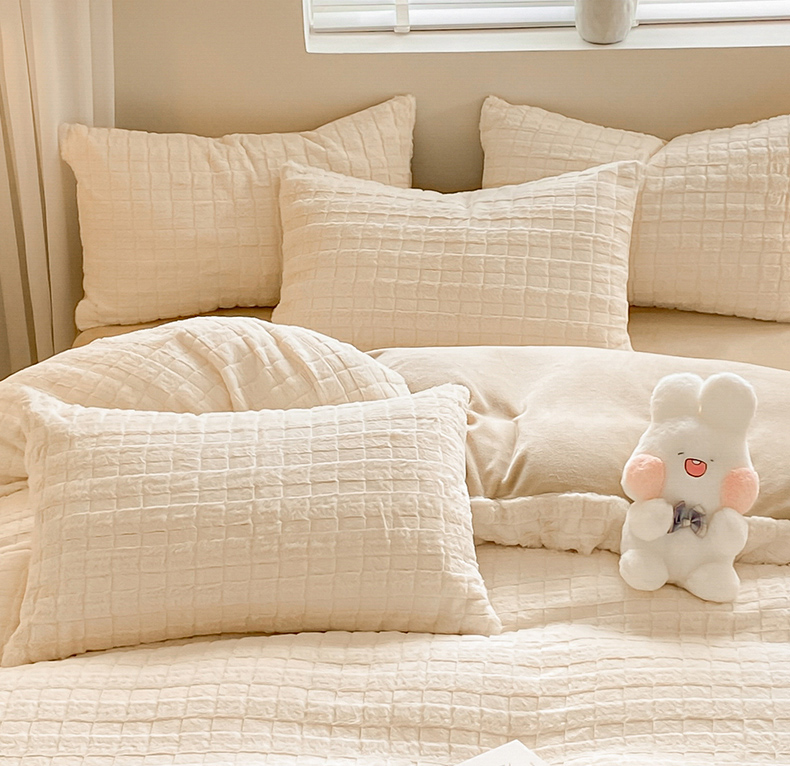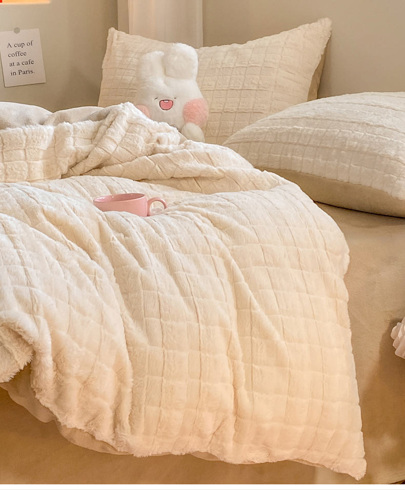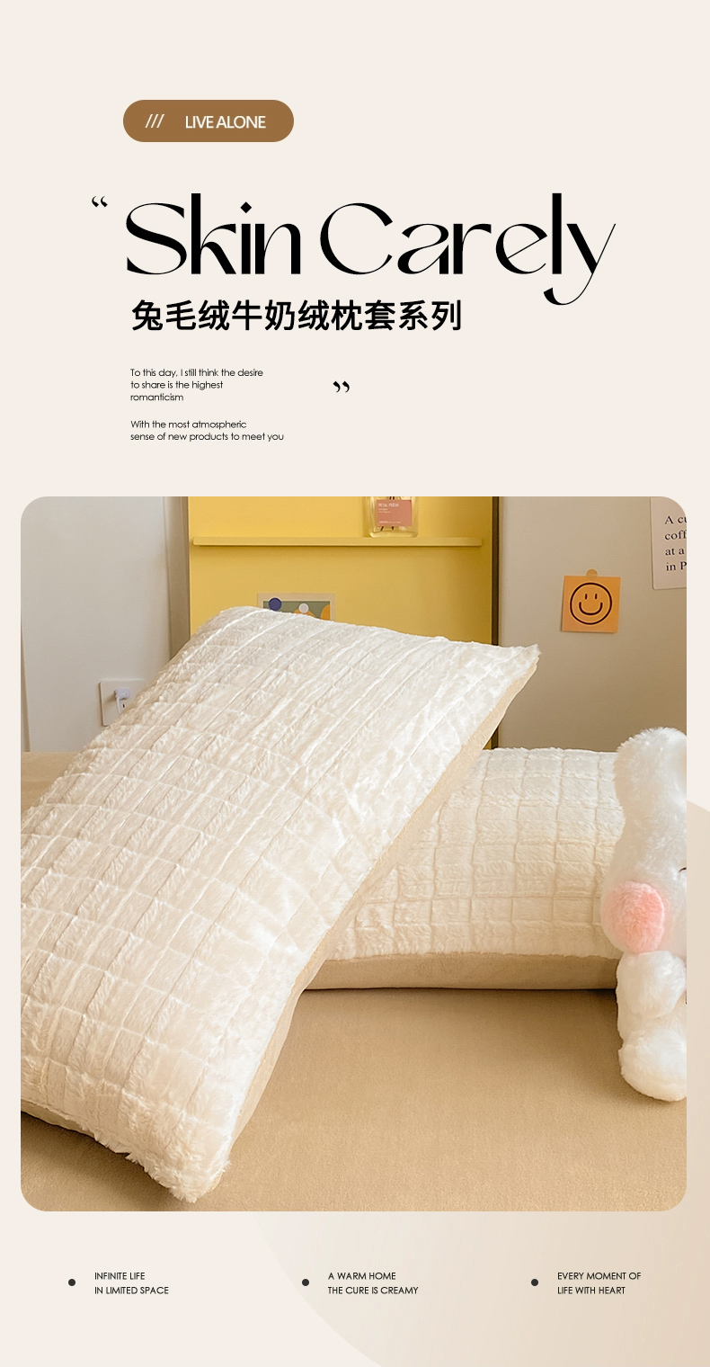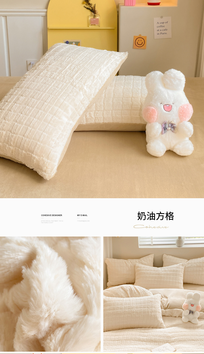 商品名称:名兮家居 2025加厚兔毛绒枕套 奶油方格