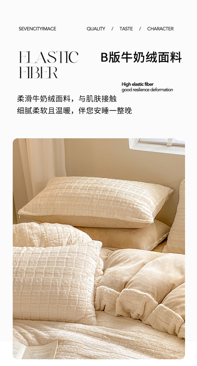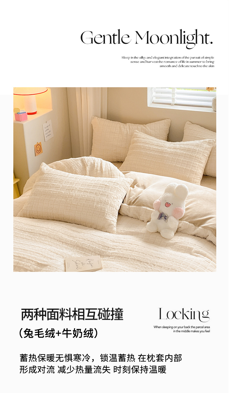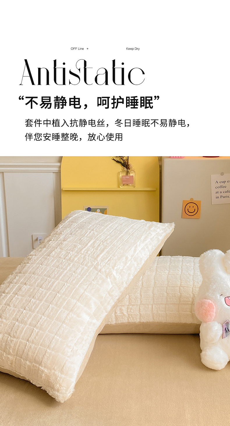 商品名称:名兮家居 2025加厚兔毛绒枕套 奶油方格