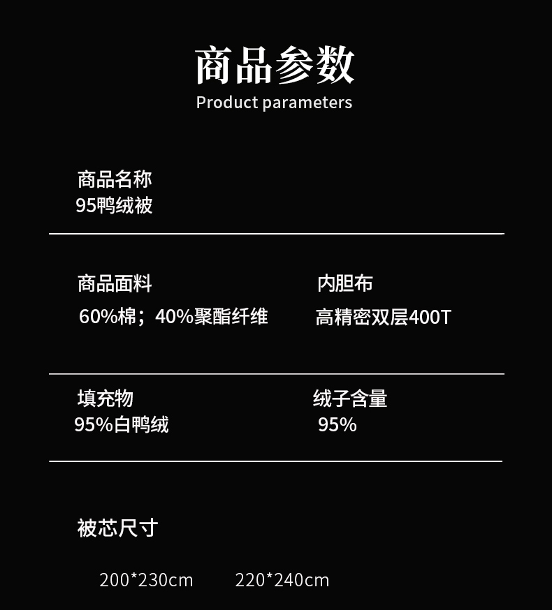 95白鸭绒220*240填充1500克 冬被 | ¥1660.00 |