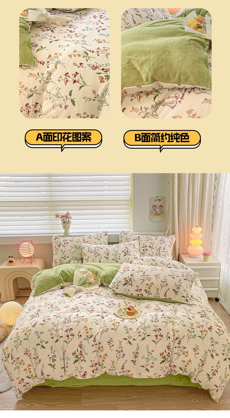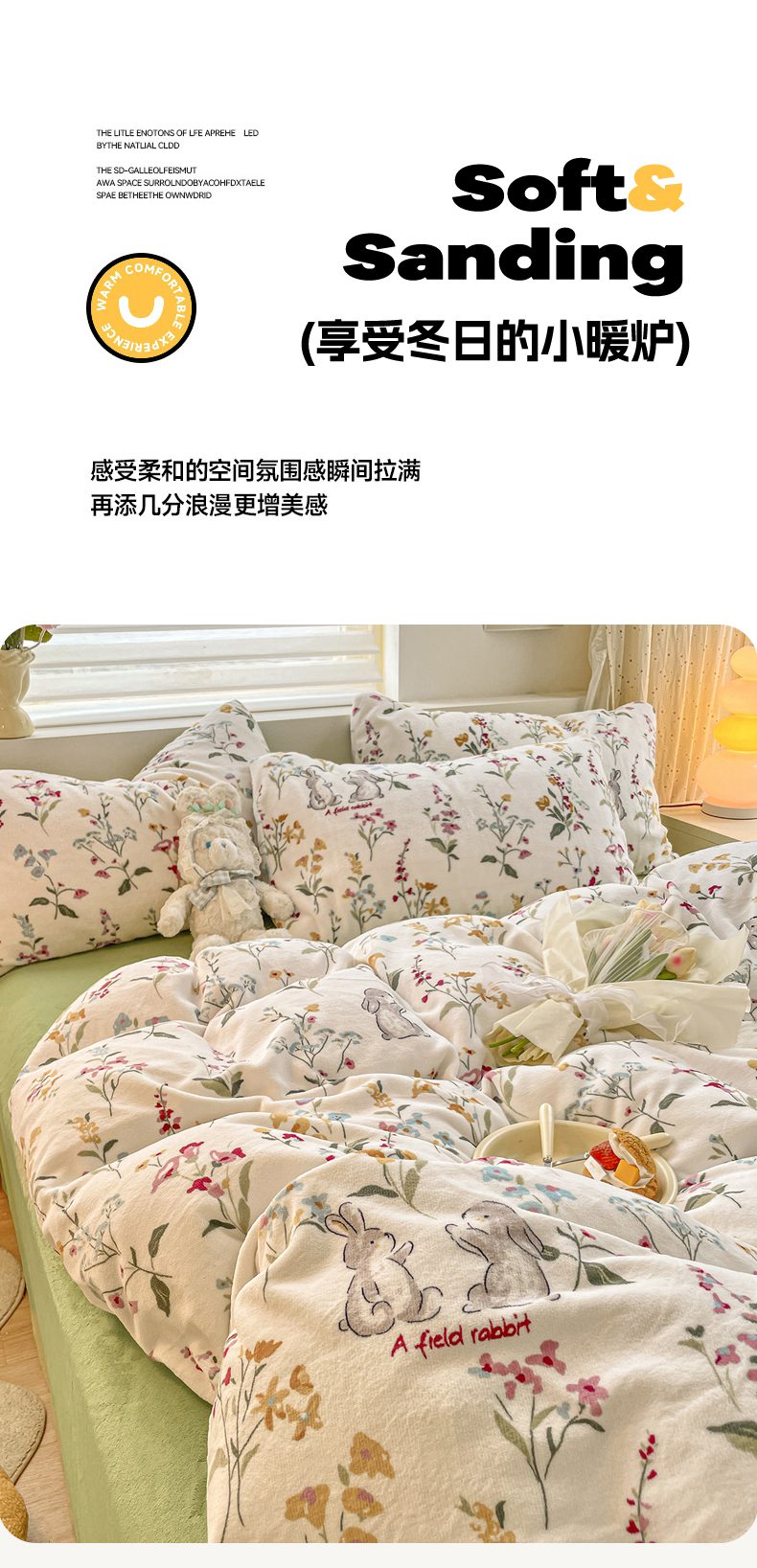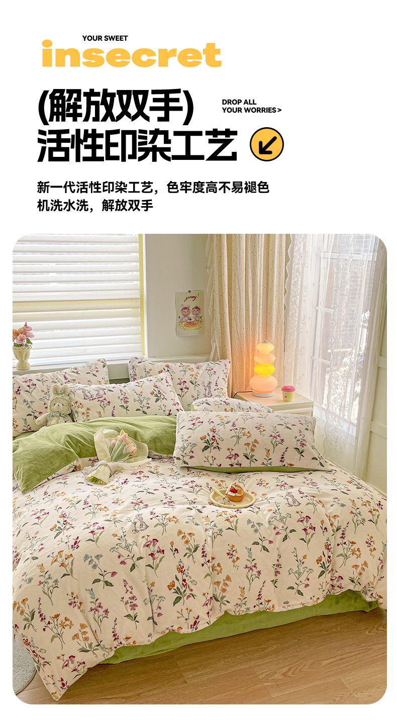 商品名称:如约 2025新款印花牛奶绒四件套 花田梦