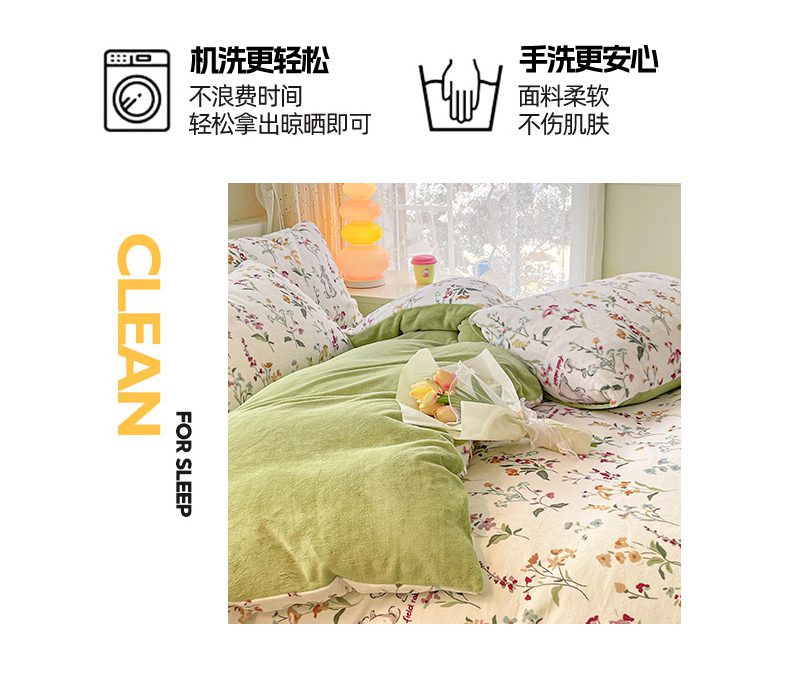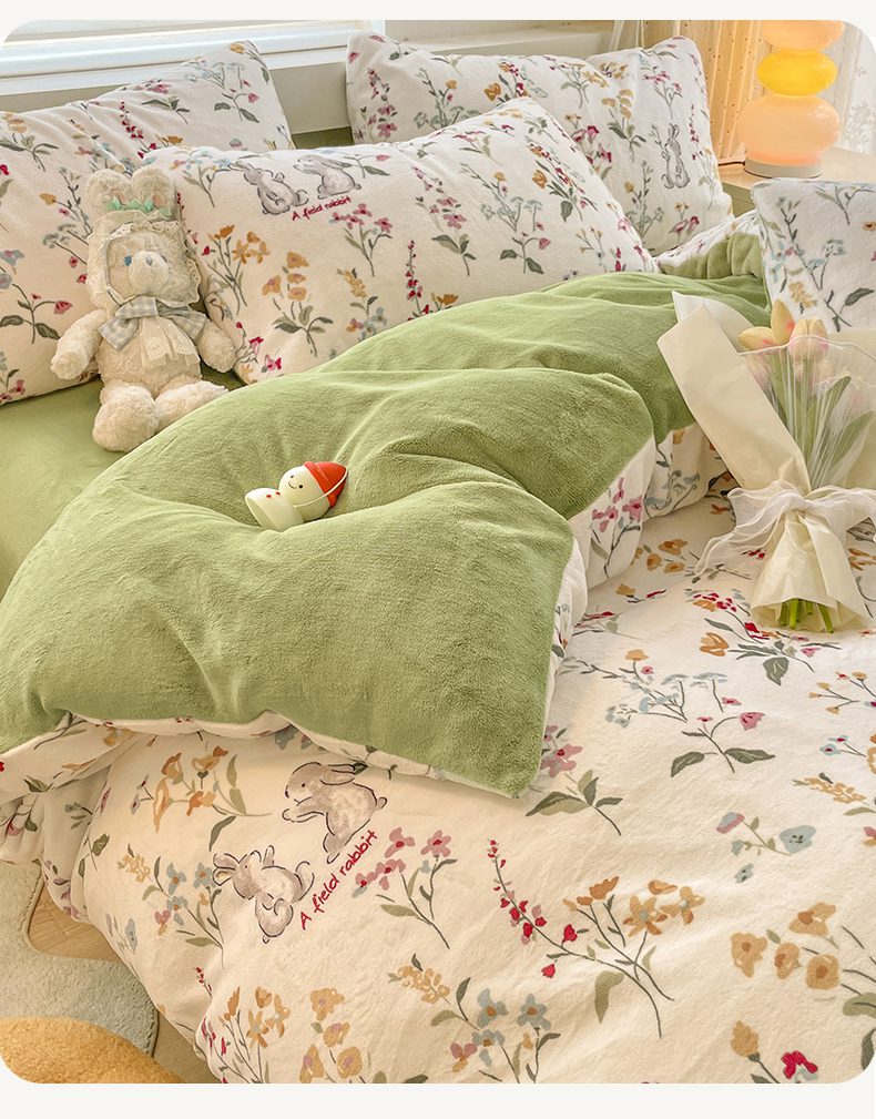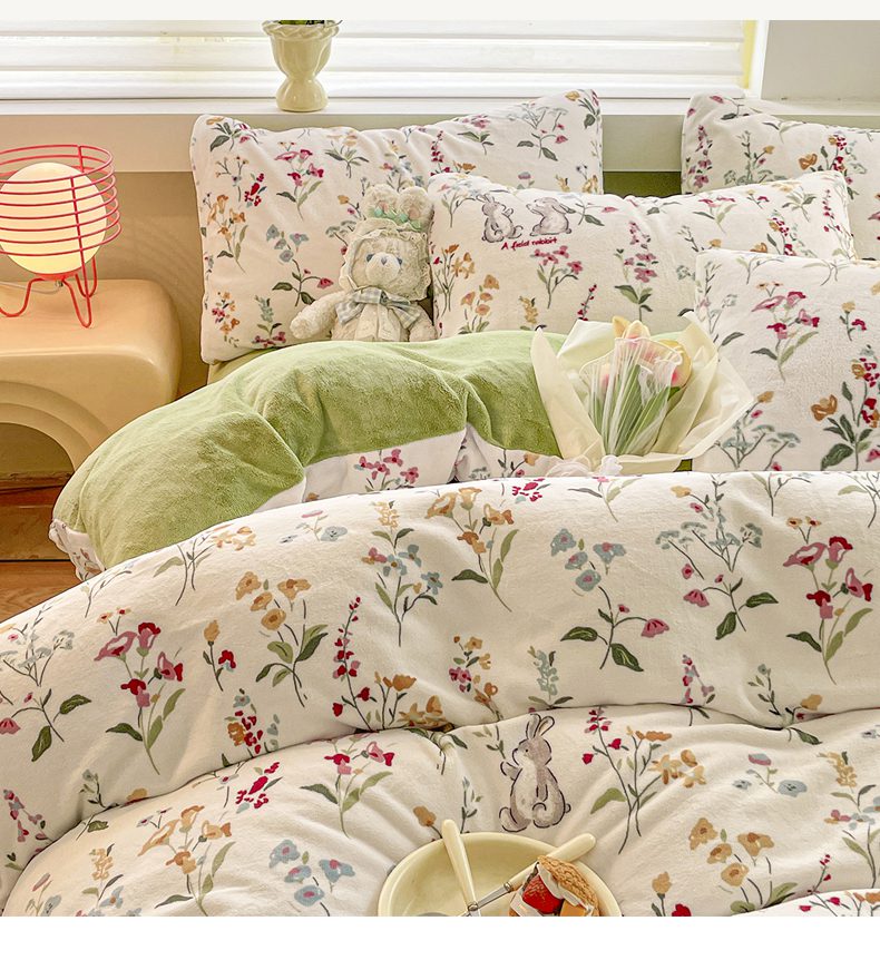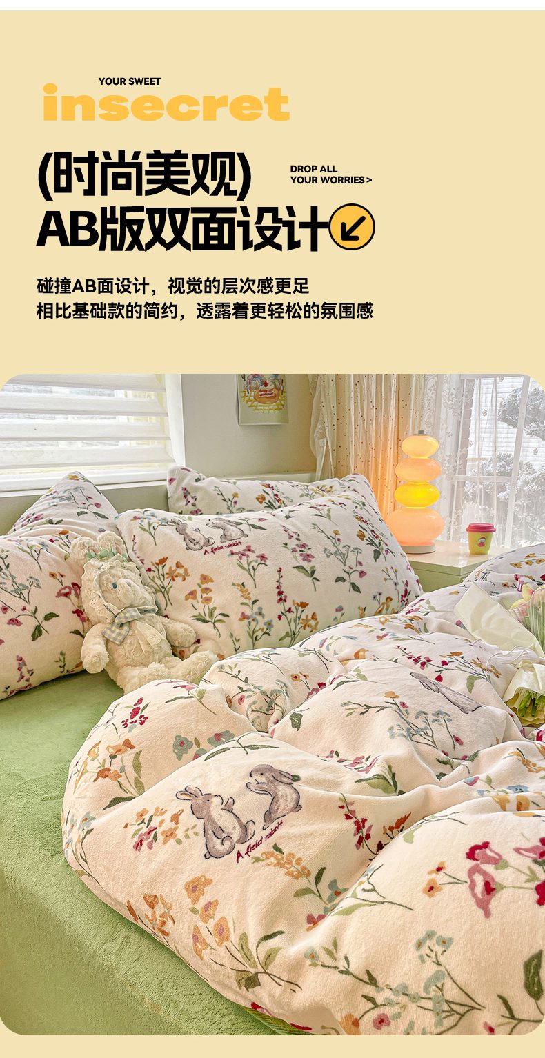 商品名称:如约 2025新款印花牛奶绒四件套 花田梦
