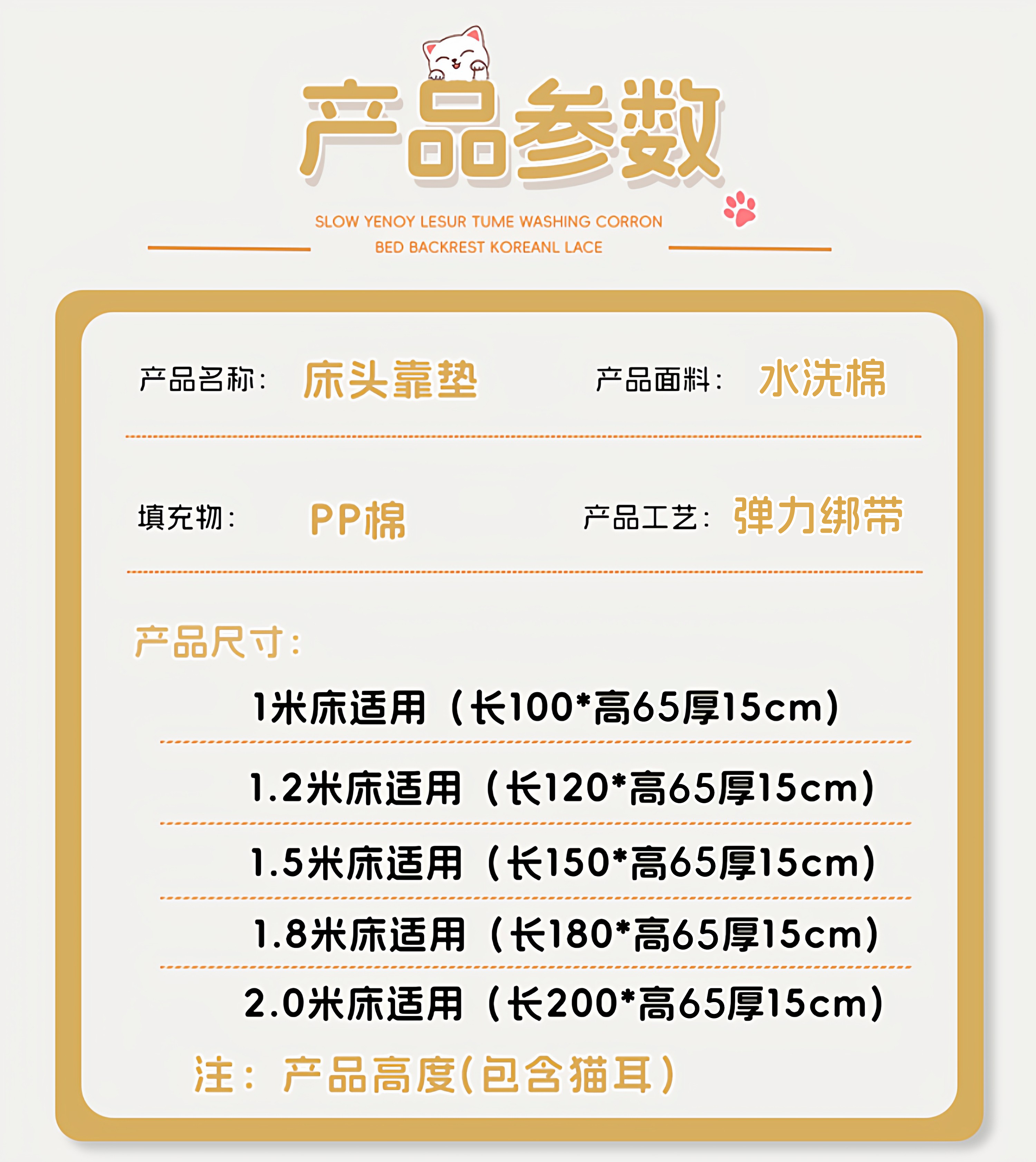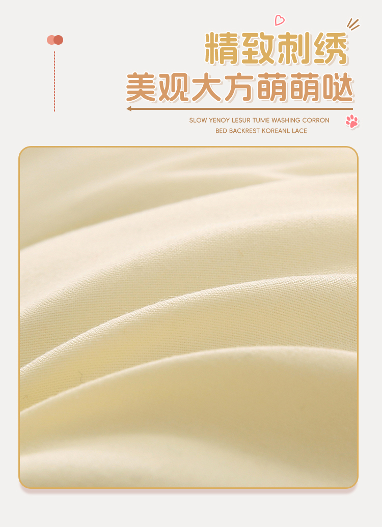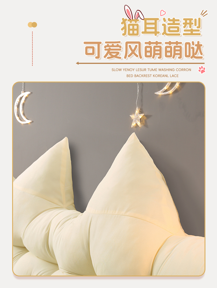 商品名称:碧尔家居 2025新款简约猫长条机械钉扣水洗棉床头靠枕 米黄