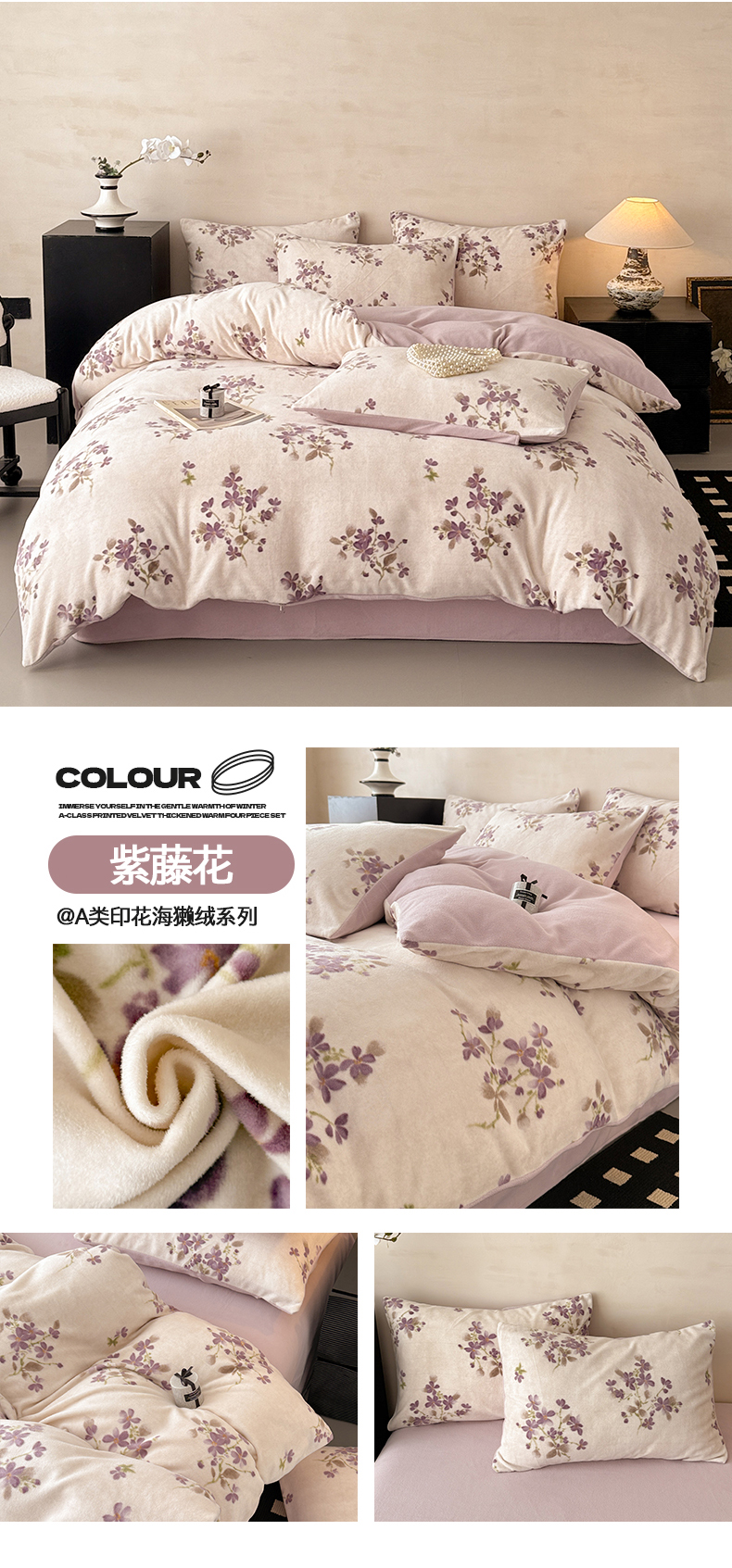 (总)懒猫家纺 2025新款亲肤舒适牛奶绒四件套-千寻花语系列,千寻花语-豆沙,千寻花语-玫紫,千寻花语-米咖,千寻花语-奶杏,千寻花语-雅绿,千寻花语-银灰