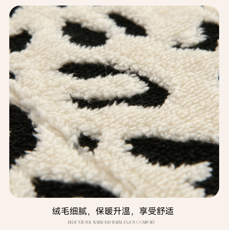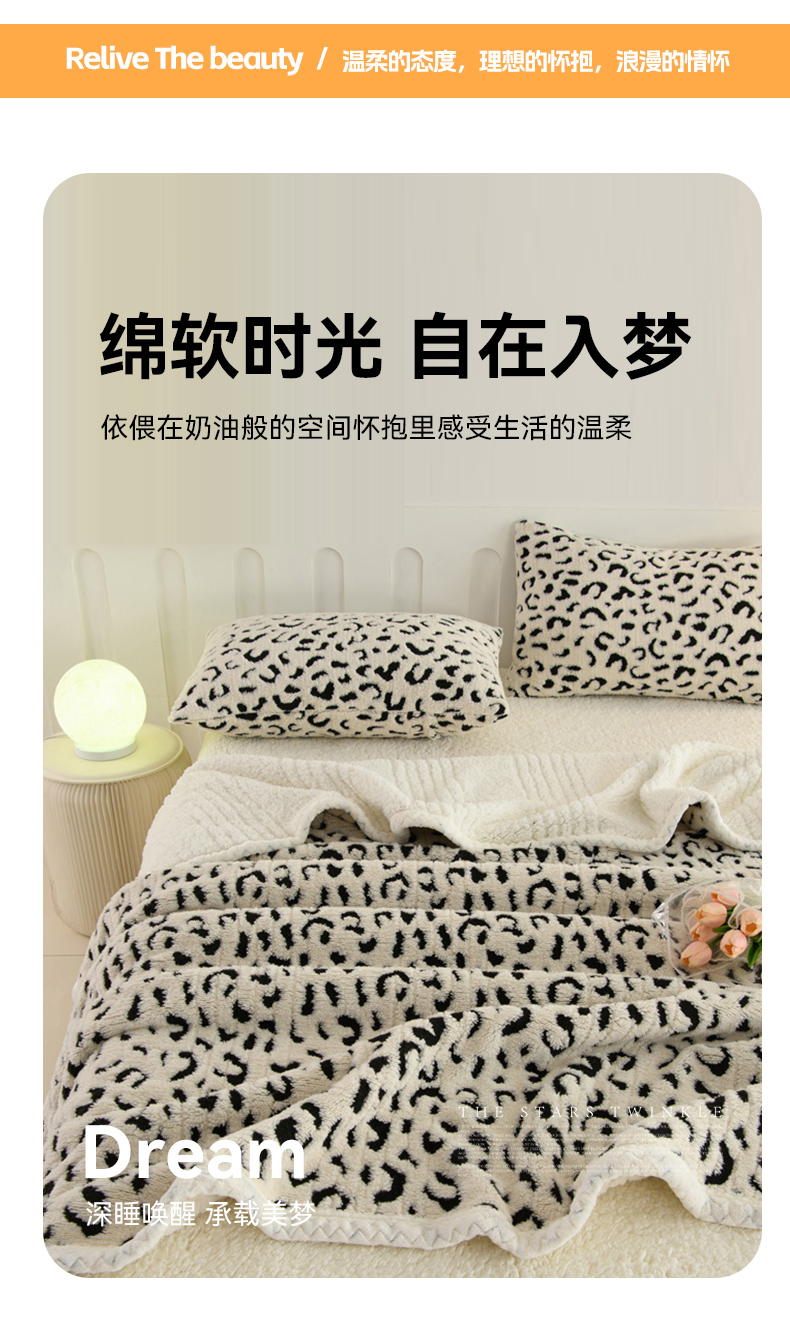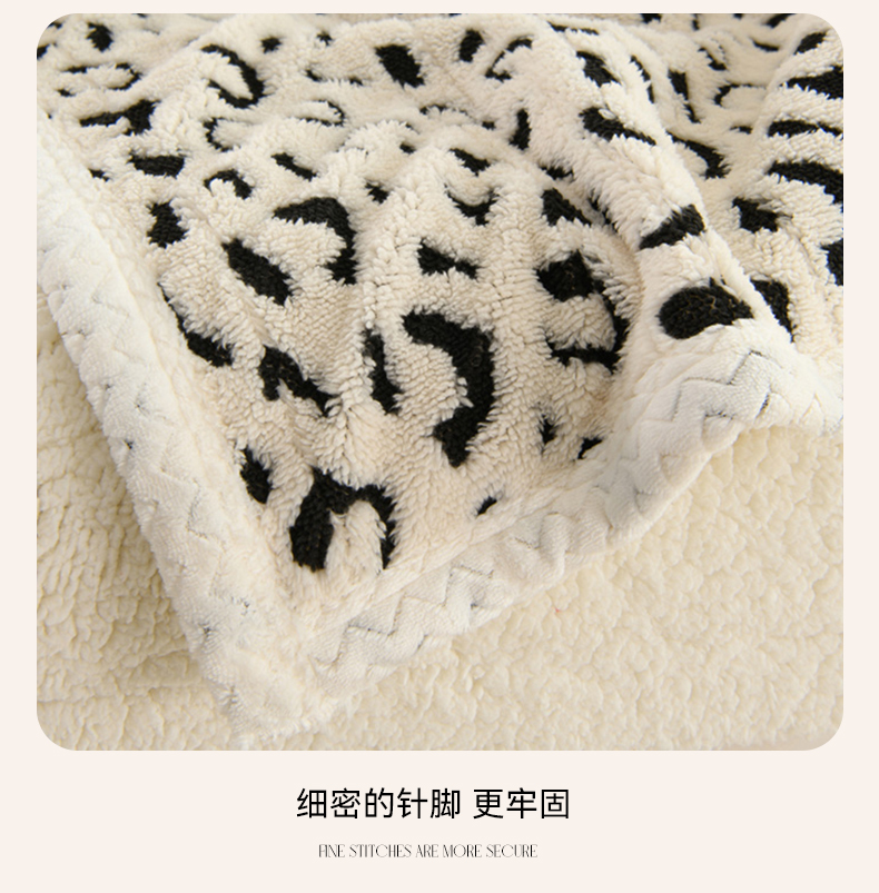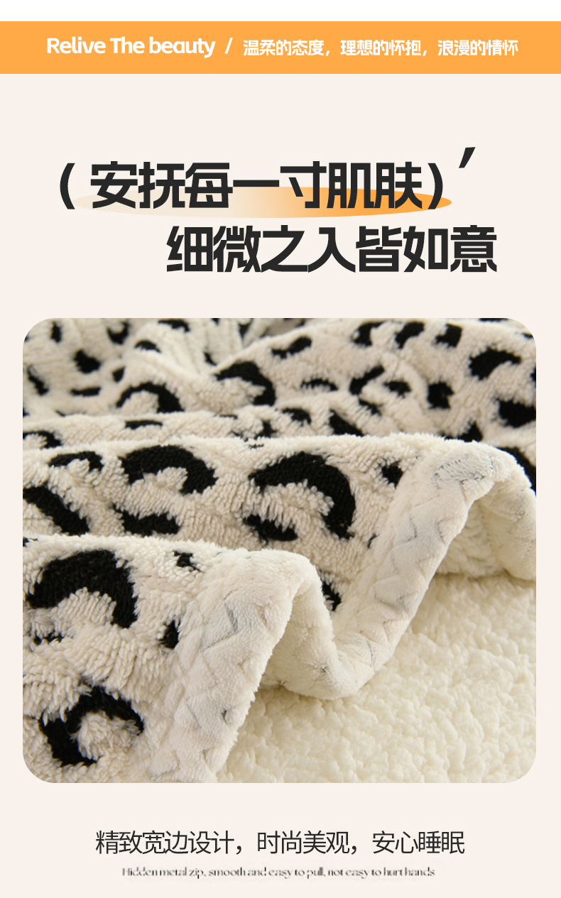 圣楚家纺 2025新款豹纹羊羔绒双层毯 杉影奶白
