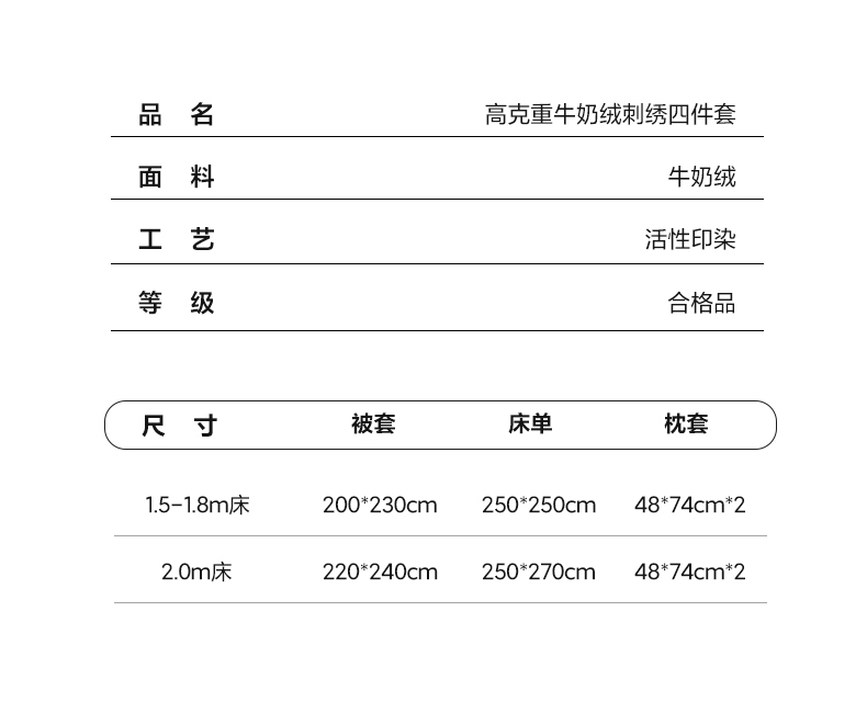 商品名称:(总)壹张床 2025新款高克重牛奶绒刺绣四件套