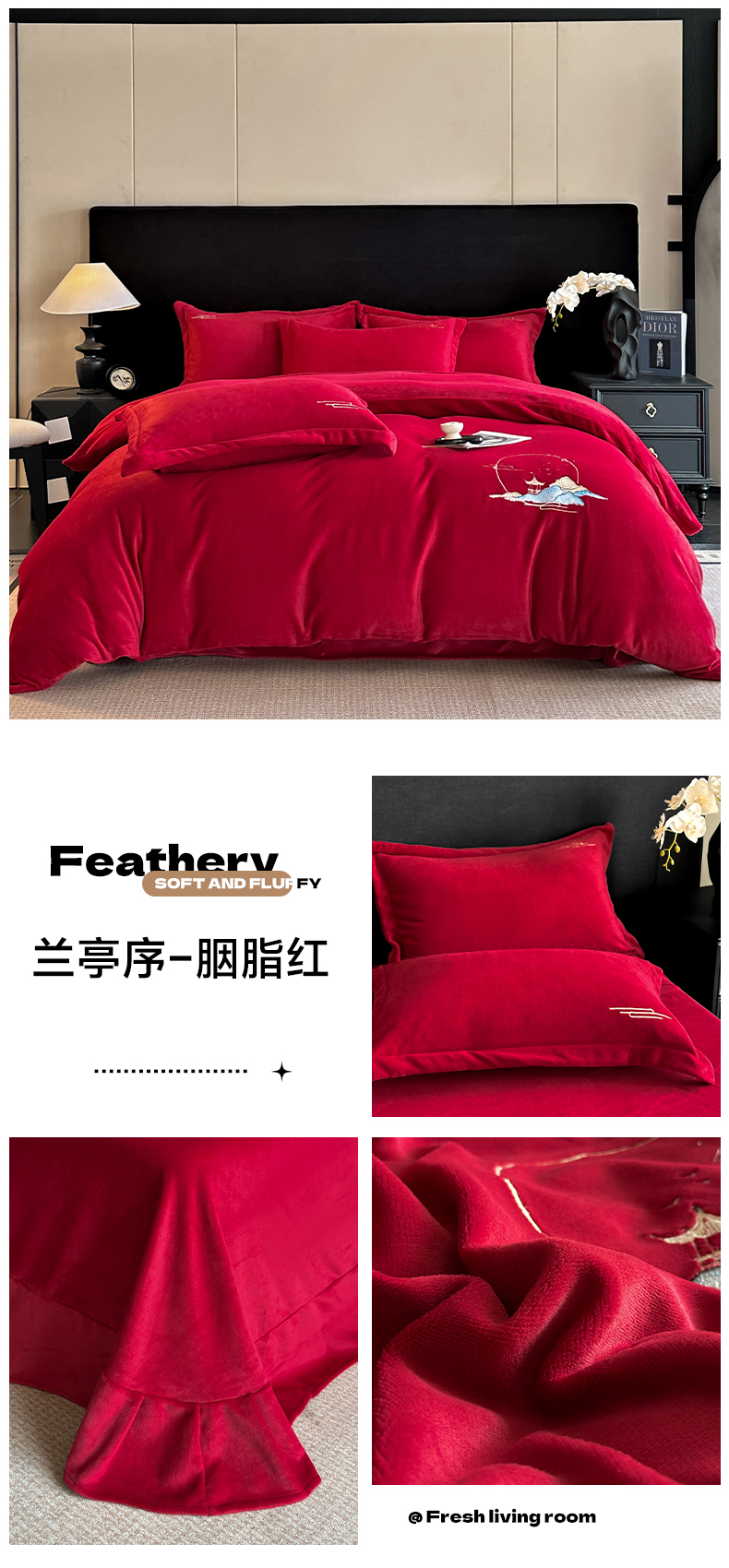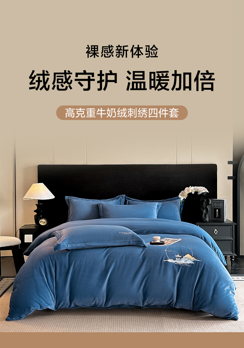 (总)壹张床 2025新款高克重牛奶绒刺绣四件套