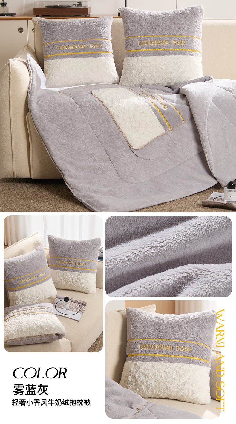 (总)金喜 2025新款轻奢小香风牛奶绒抱枕靠枕牛奶绒盖毯多功能抱枕被拼色字母款,拼接字母-粉白,拼接字母-灰白,拼接字母-蓝白,拼接字母-绿白,拼接字母-紫白,组合图仅供参考不可下单
