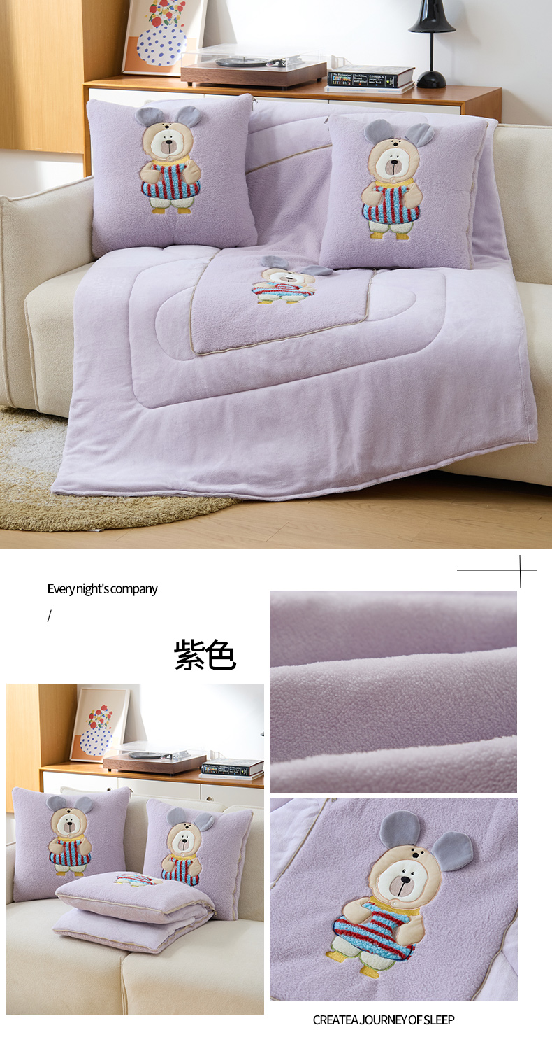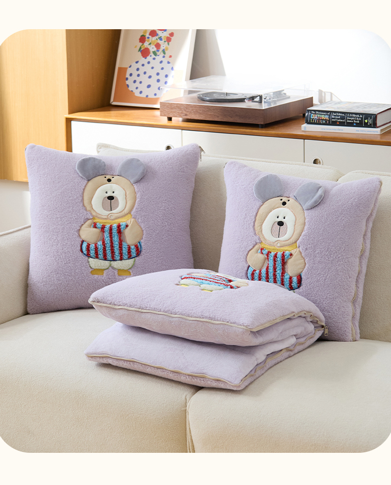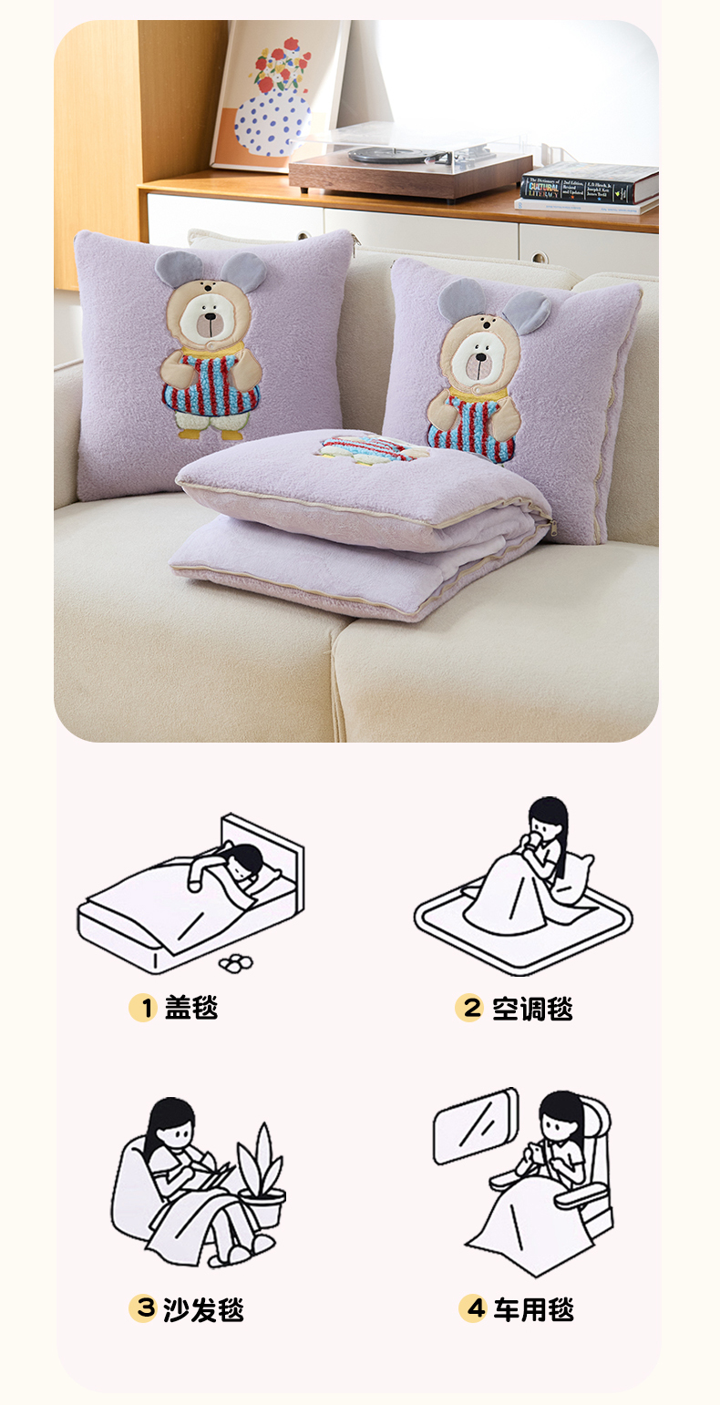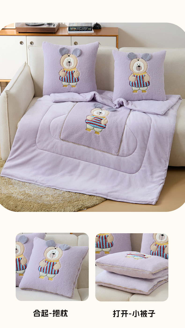 商品名称:金喜 2025新款牛奶绒抱枕被大耳朵熊牛奶绒多功能抱枕被汽车靠枕沙发靠枕 多巴胺熊-紫色