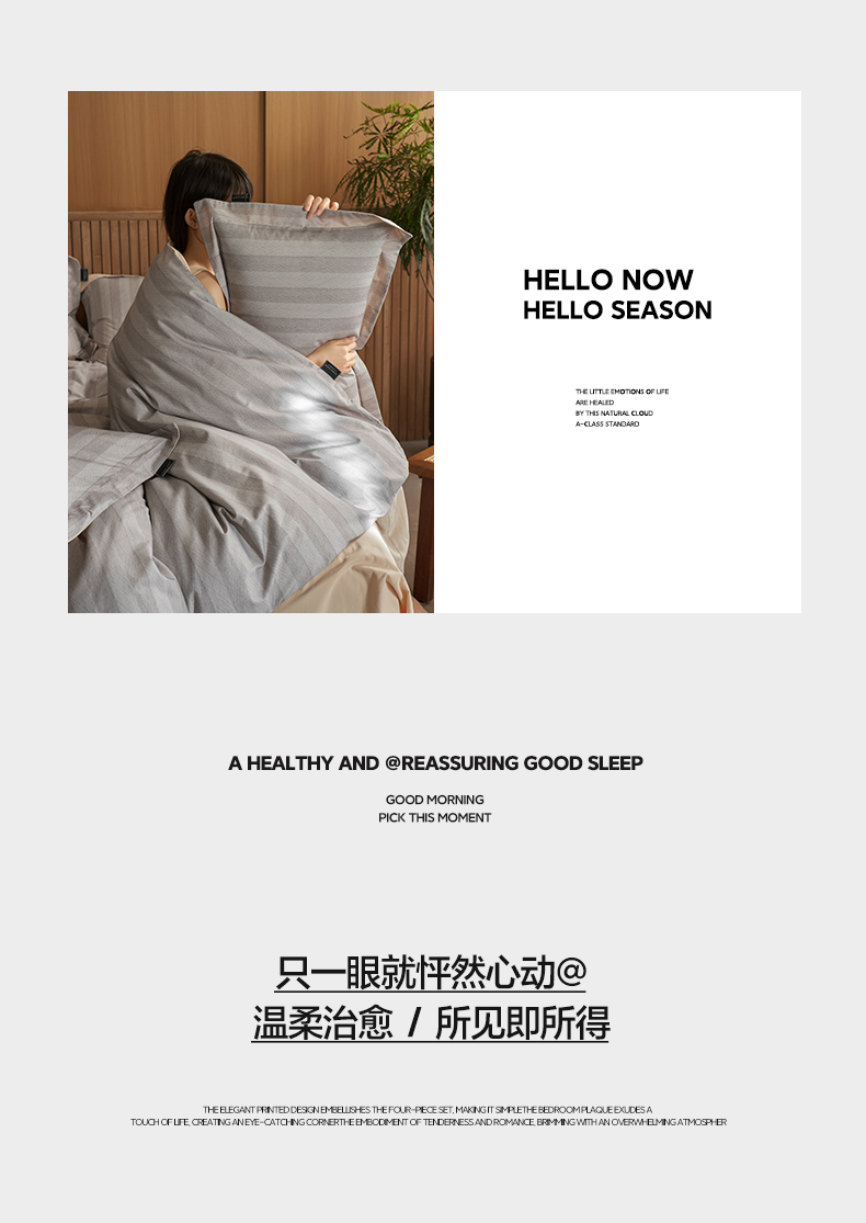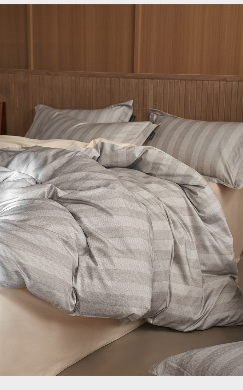 商品名称:三味舒屋 2025新款50支全棉印花条纹磨毛四件套-布衣系列 券后(包含优惠券后)不低于289/309元 布衣灰咖