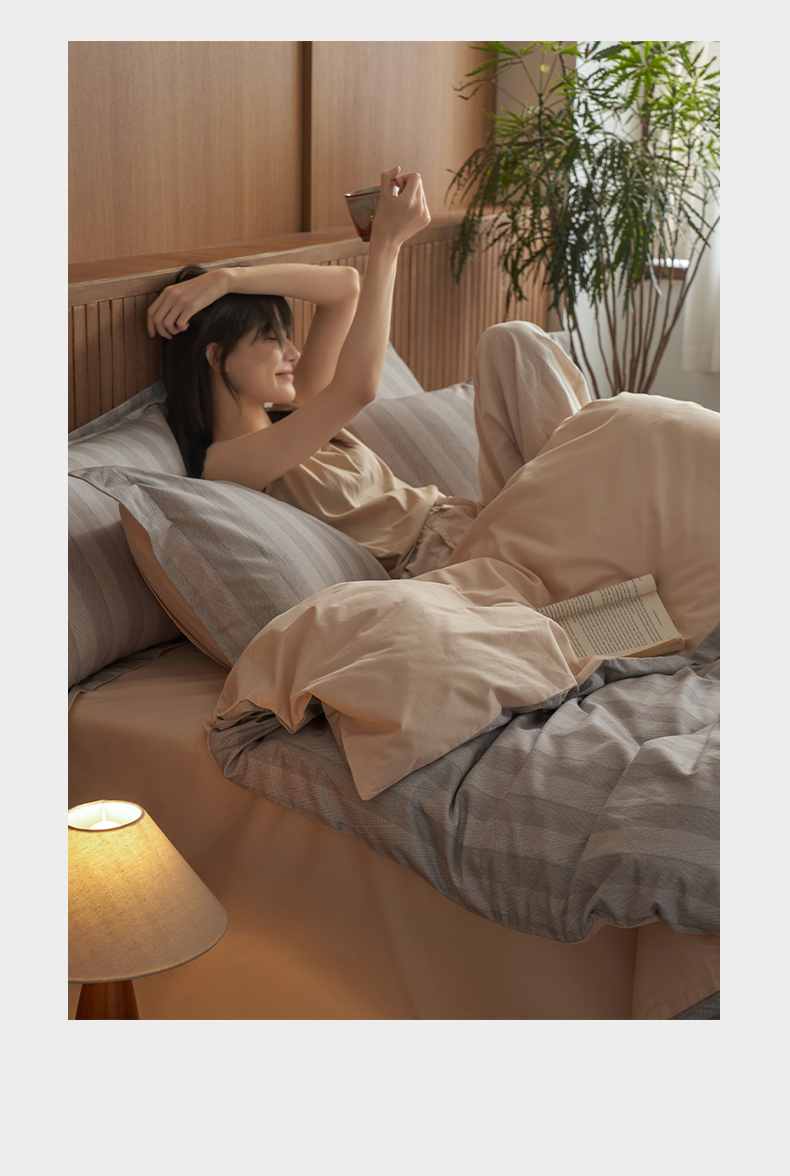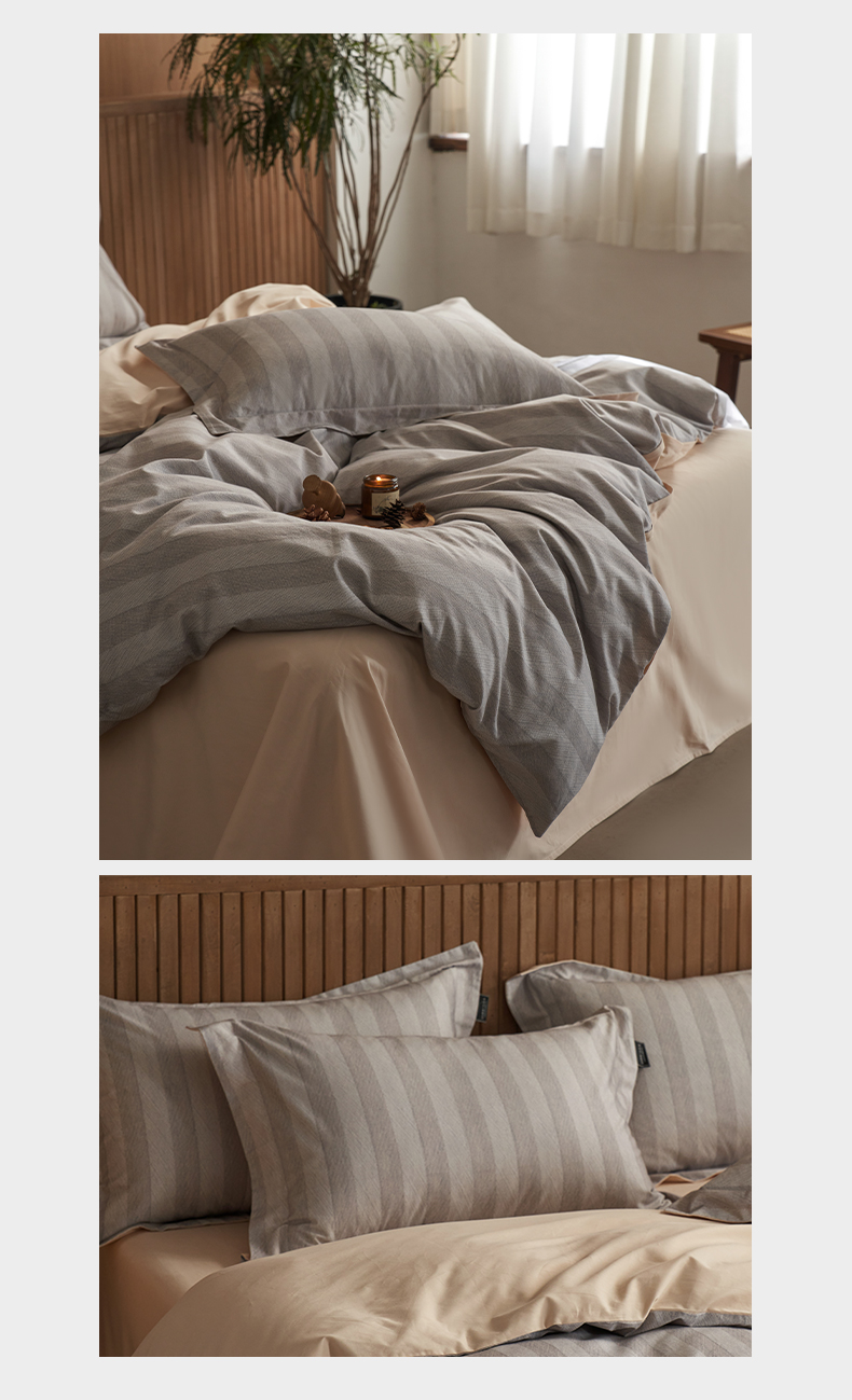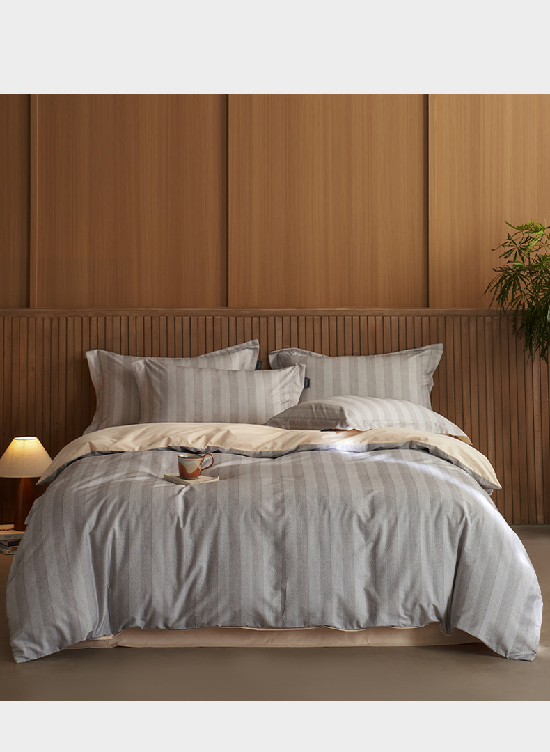 三味舒屋 2025新款50支全棉印花条纹磨毛四件套-布衣系列 券后(包含优惠券后)不低于289/309元 布衣灰咖