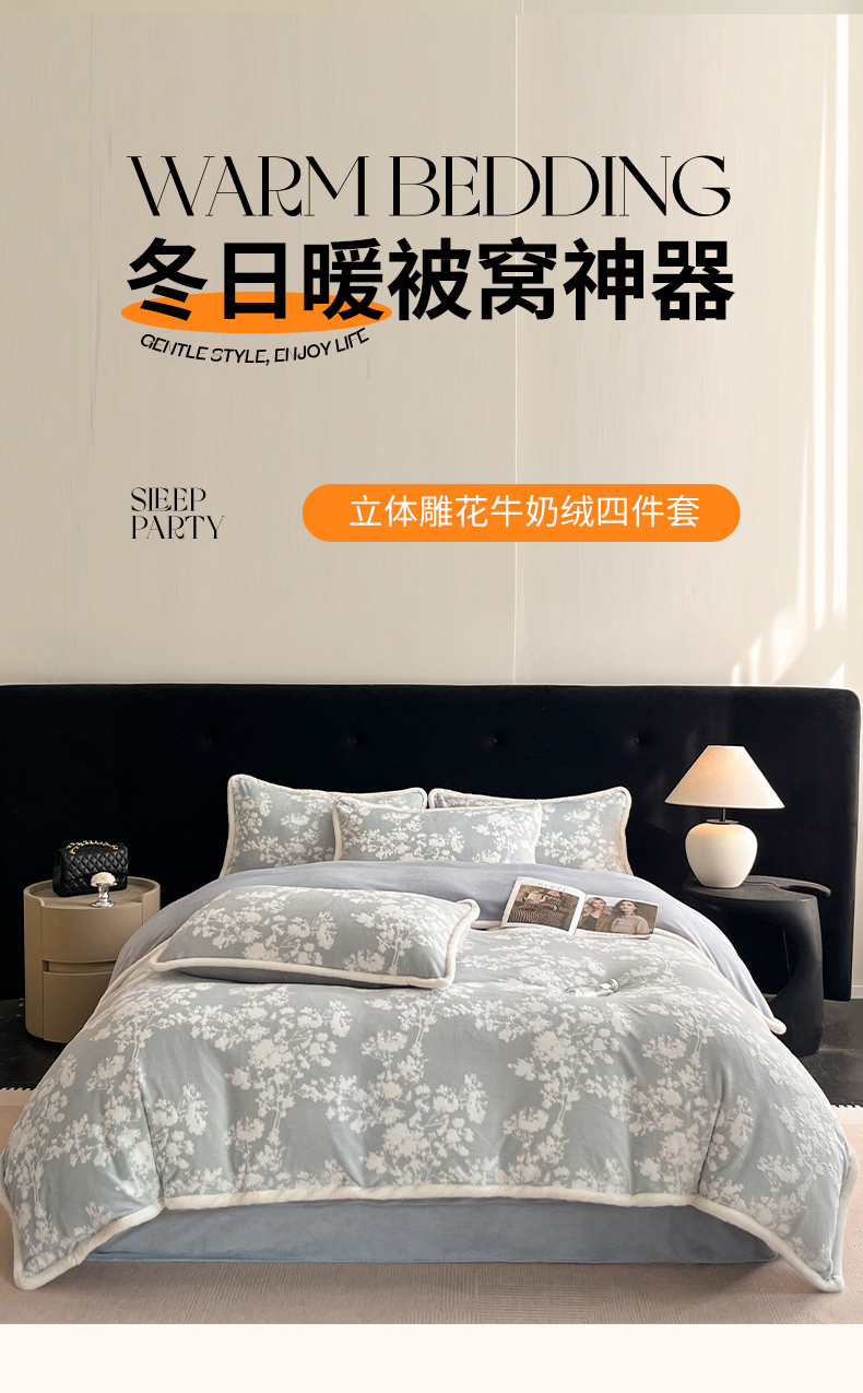 (总)极简 2024新款兔毛宽包边立体雕好牛奶绒四件套-米莱,米莱-冰蓝,米莱-草绿,米莱-豆蔻紫,米莱-湖蓝,米莱-米月白,米莱-藕粉,米莱-鸭蛋灰