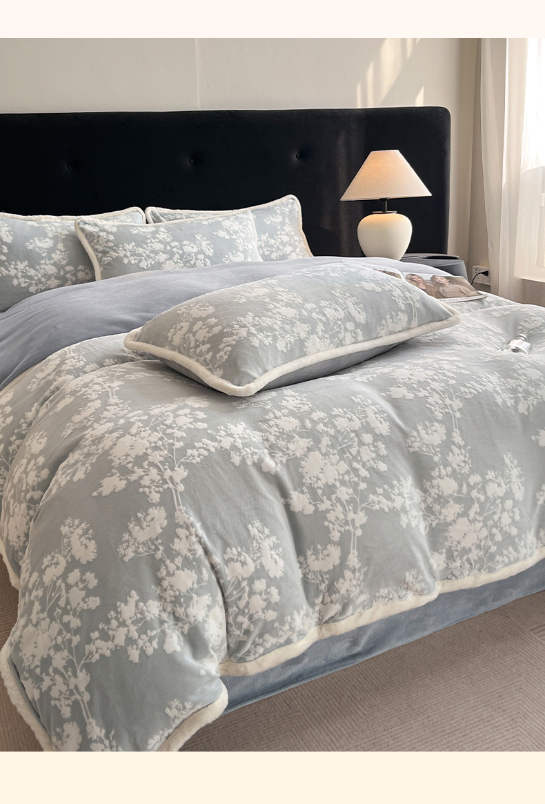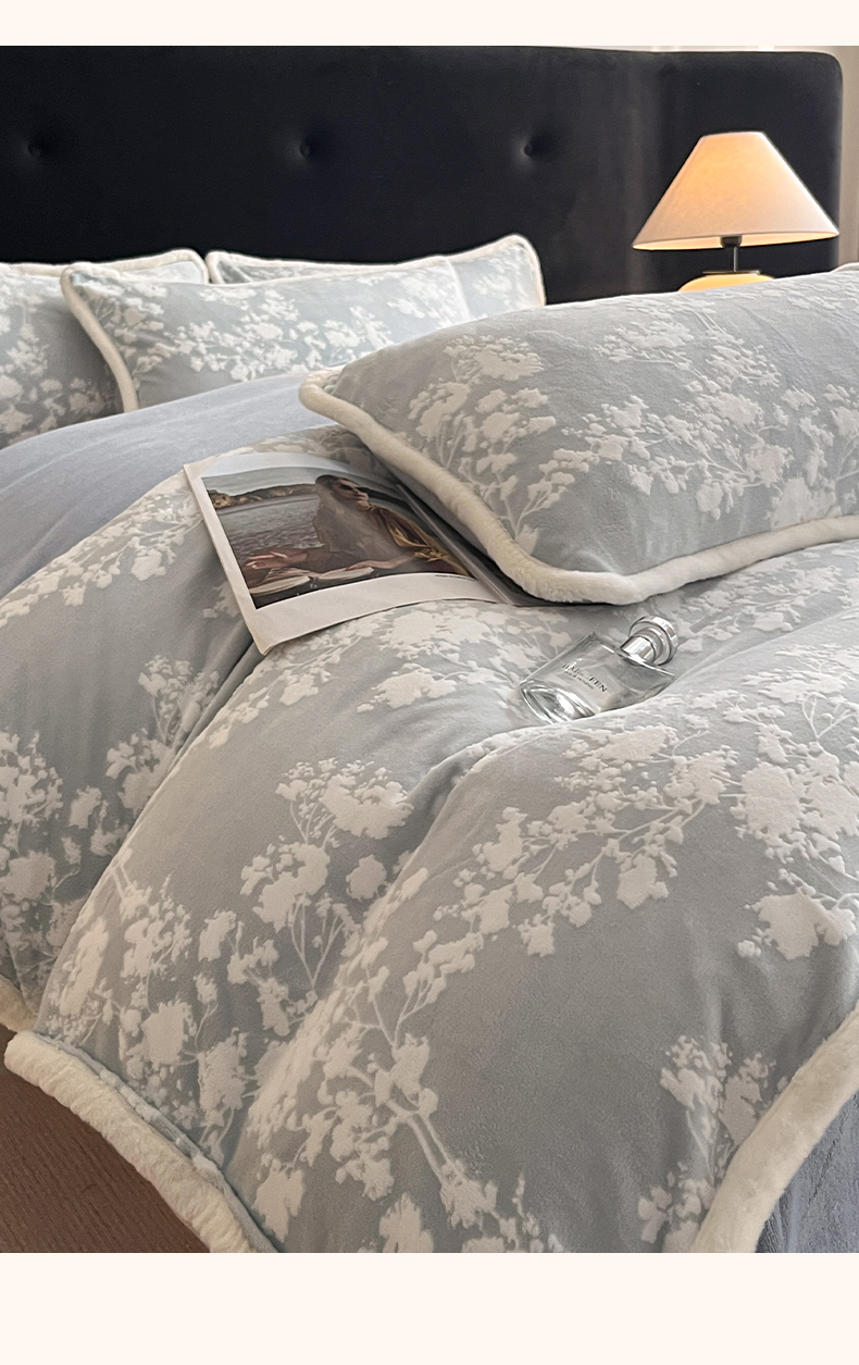 极简 2025新款立体雕花牛奶绒四件套系列 米菲娜-蓝