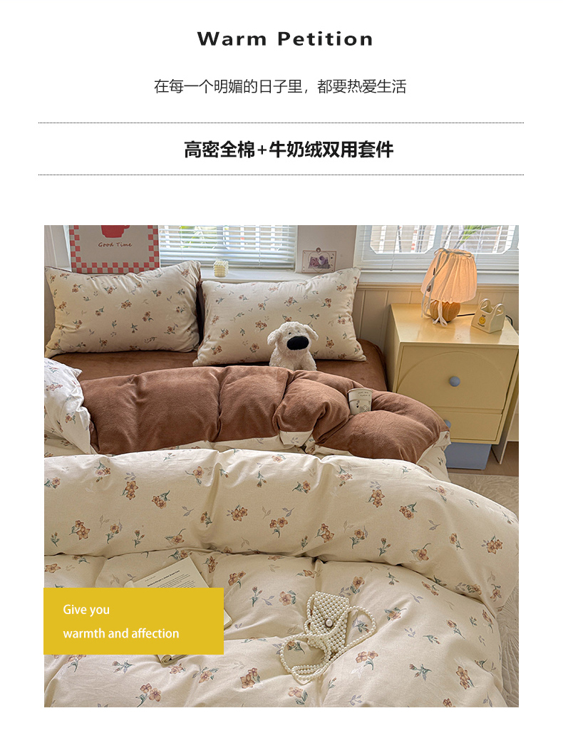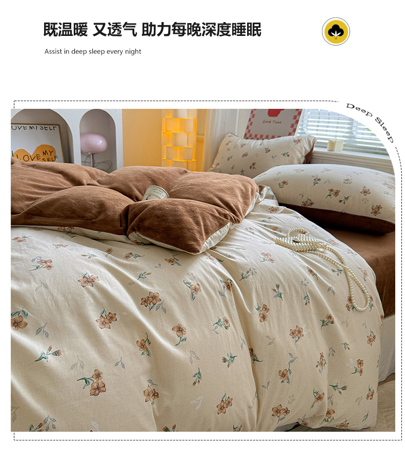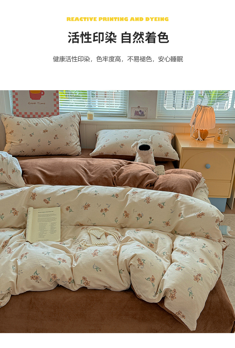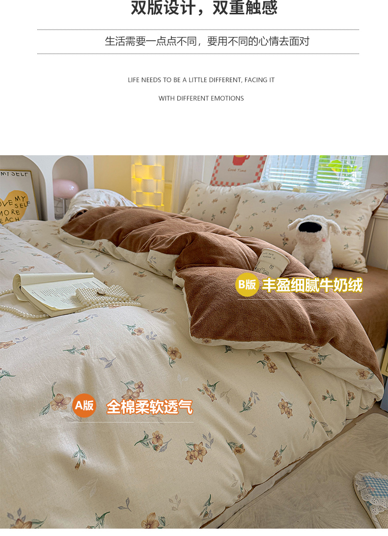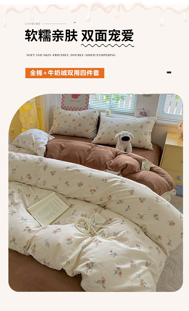 当前位置: 91家纺网 > 商品网购 > 床品套件 > 四件套 > 牛奶绒四件套 > 捌月 2025新款棉加绒A版13372全棉B版高克重牛奶绒四件套直播新品 秋韵