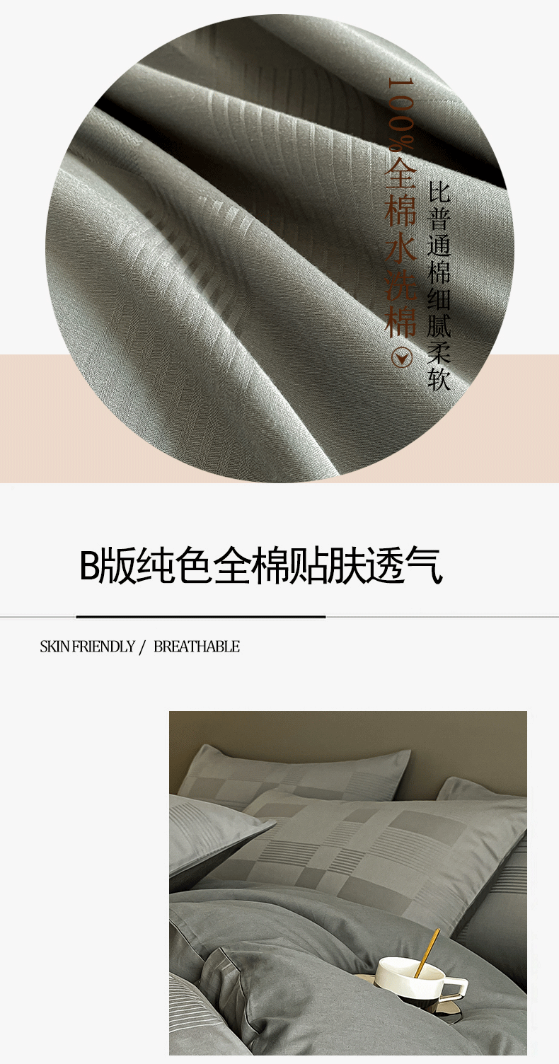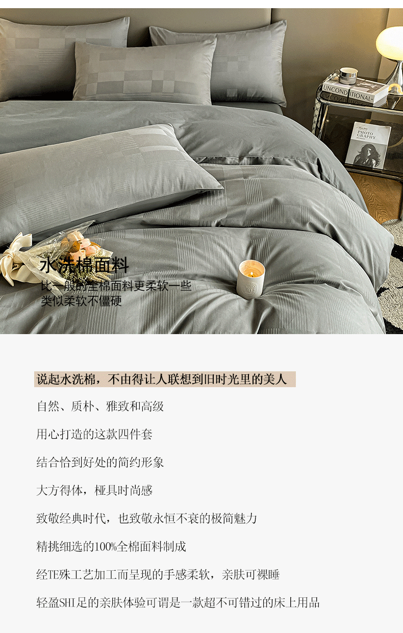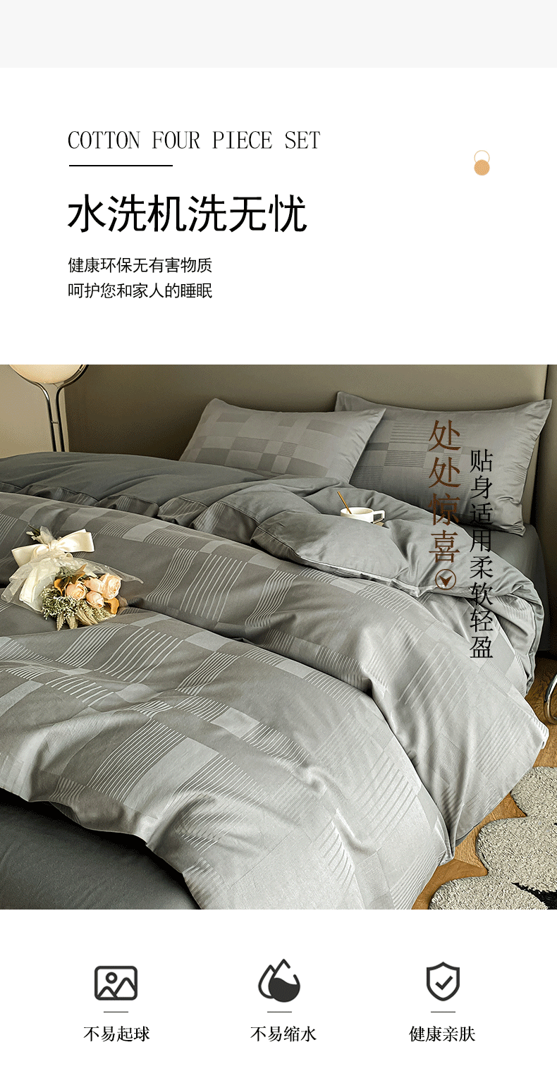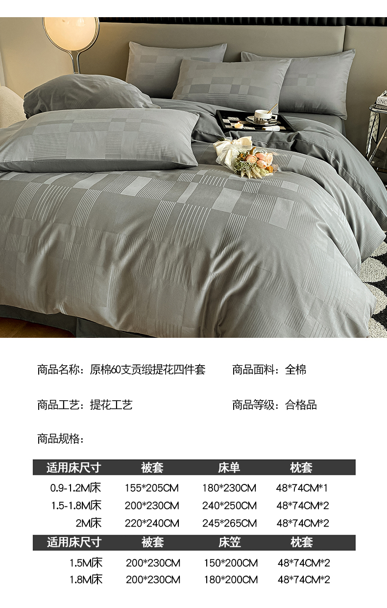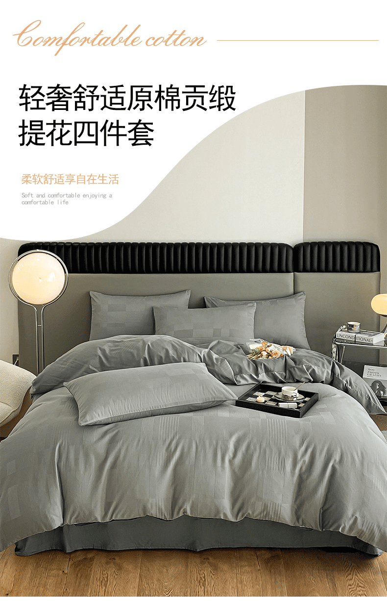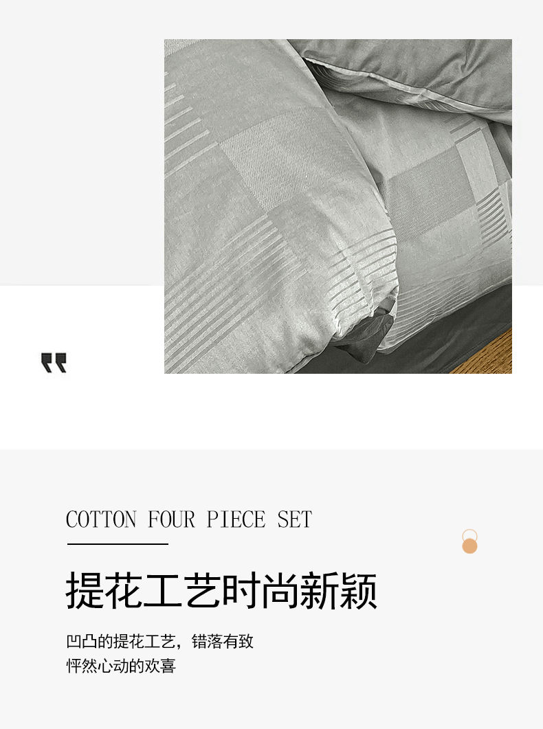 商品名称:琪格格纺织 2025新款纯棉轻奢大提花酒店名宿风家纺四件套 原棉大提花-摩登灰