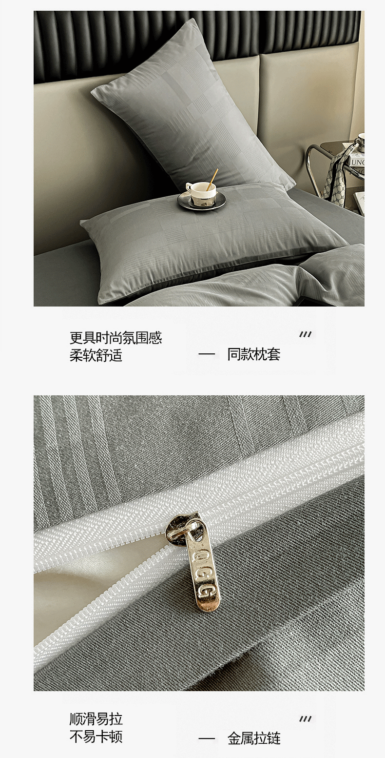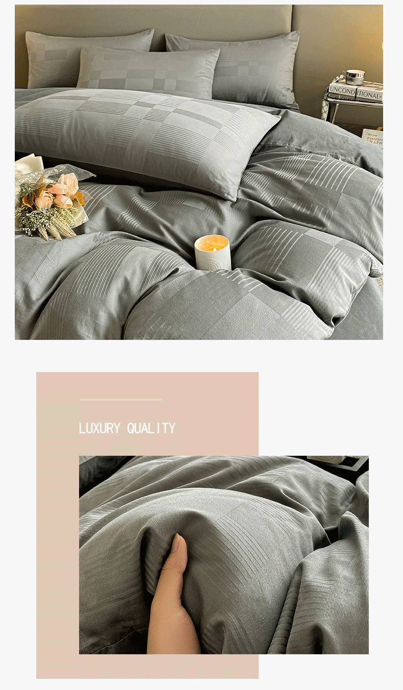 琪格格纺织 2025新款纯棉轻奢大提花酒店名宿风家纺四件套 原棉大提花-摩登灰