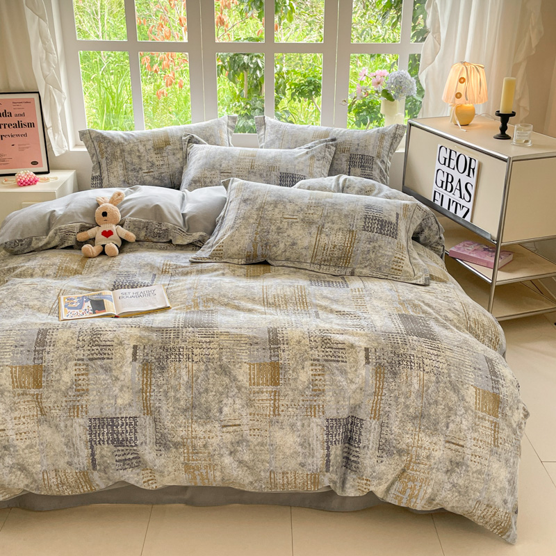 商品名称:仔仔熊 2025新款磨毛四件套系列 雅灰格纹