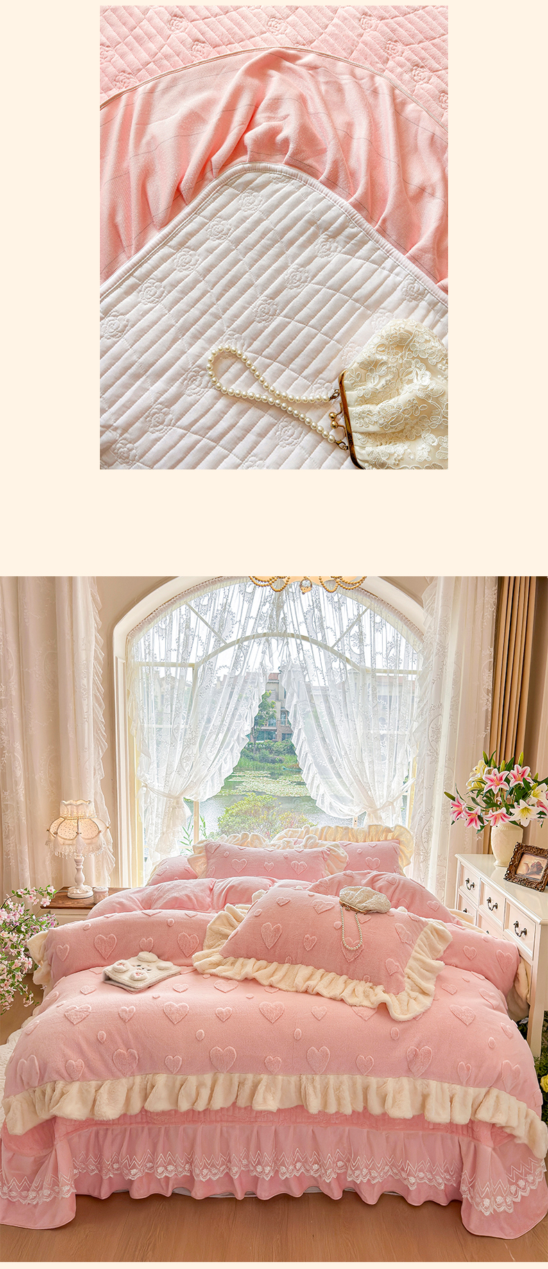 (总)宜凡家纺 2025新款兔绒提花牛奶绒夹棉床裙四件套,爱心 少女粉,爱心 粉紫,爱心 驼色,蝶舞 大红,蝶舞 米色,蝶舞 浅紫,蝶舞 玉色,简爱 苍青,简爱 豆沙紫,简爱 玉色,樱桃 苍青,樱桃 豆沙紫,樱桃 奶油白