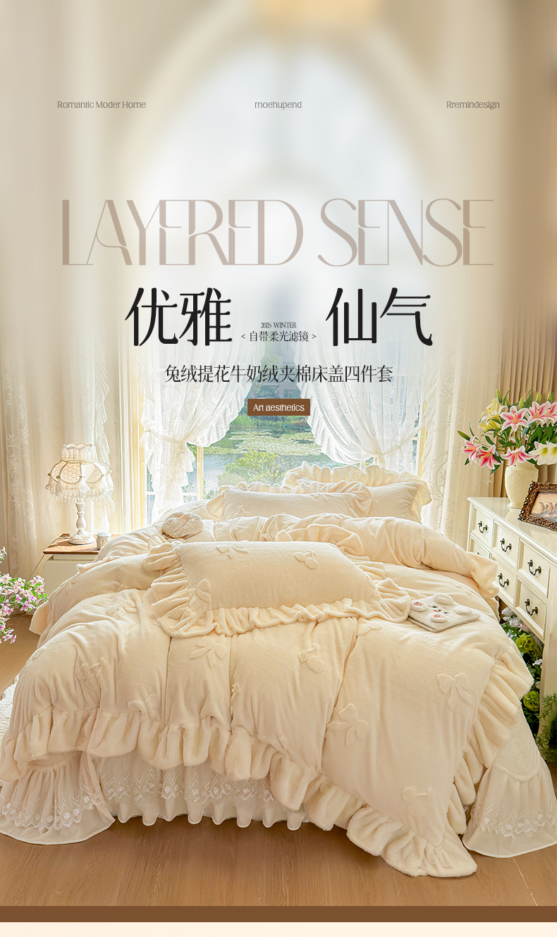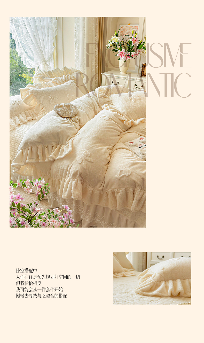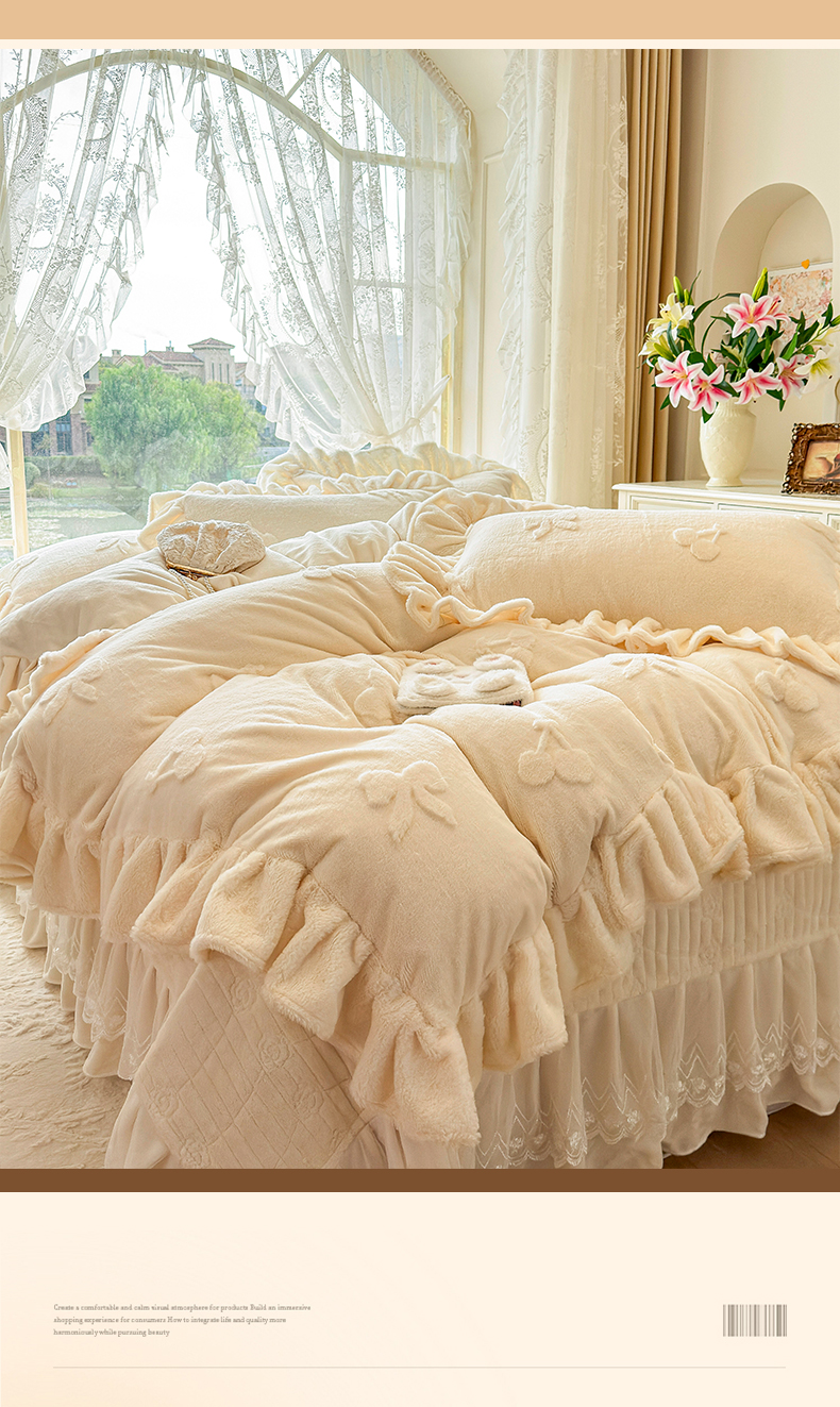 (总)宜凡家纺 2025新款兔绒提花牛奶绒夹棉床裙四件套,爱心 少女粉,爱心 粉紫,爱心 驼色,蝶舞 大红,蝶舞 米色,蝶舞 浅紫,蝶舞 玉色,简爱 苍青,简爱 豆沙紫,简爱 玉色,樱桃 苍青,樱桃 豆沙紫,樱桃 奶油白