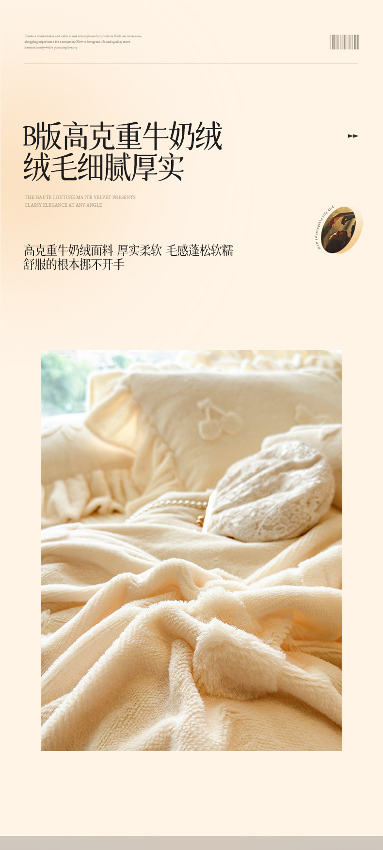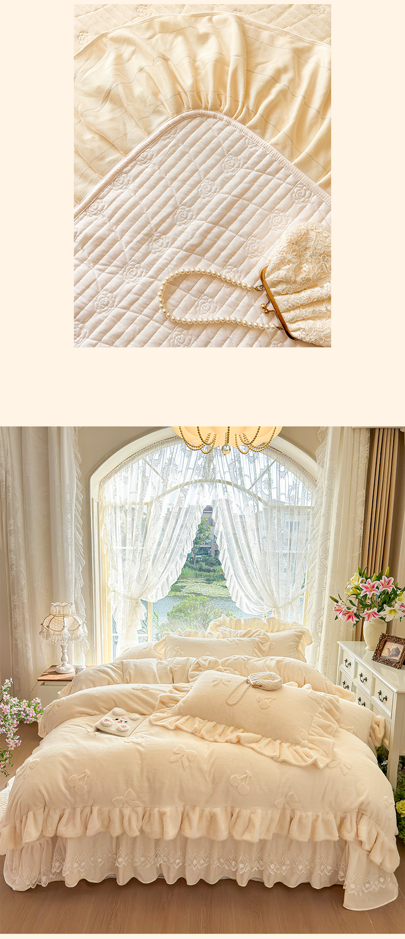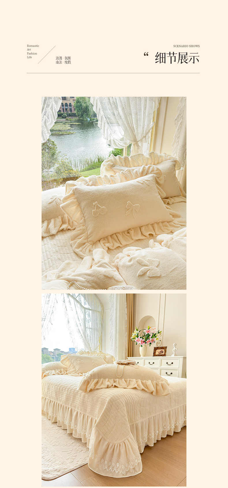 商品名称:宜凡家纺 2025新款兔绒提花牛奶绒夹棉床盖四件套 樱桃 奶油白