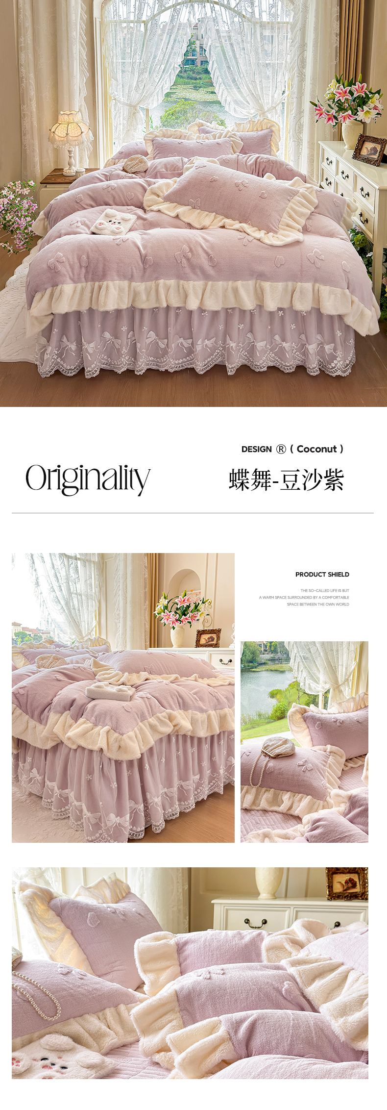 (总)宜凡家纺 2025新款兔绒提花牛奶绒夹棉床裙四件套,爱心 少女粉,爱心 粉紫,爱心 驼色,蝶舞 大红,蝶舞 米色,蝶舞 浅紫,蝶舞 玉色,简爱 苍青,简爱 豆沙紫,简爱 玉色,樱桃 苍青,樱桃 豆沙紫,樱桃 奶油白