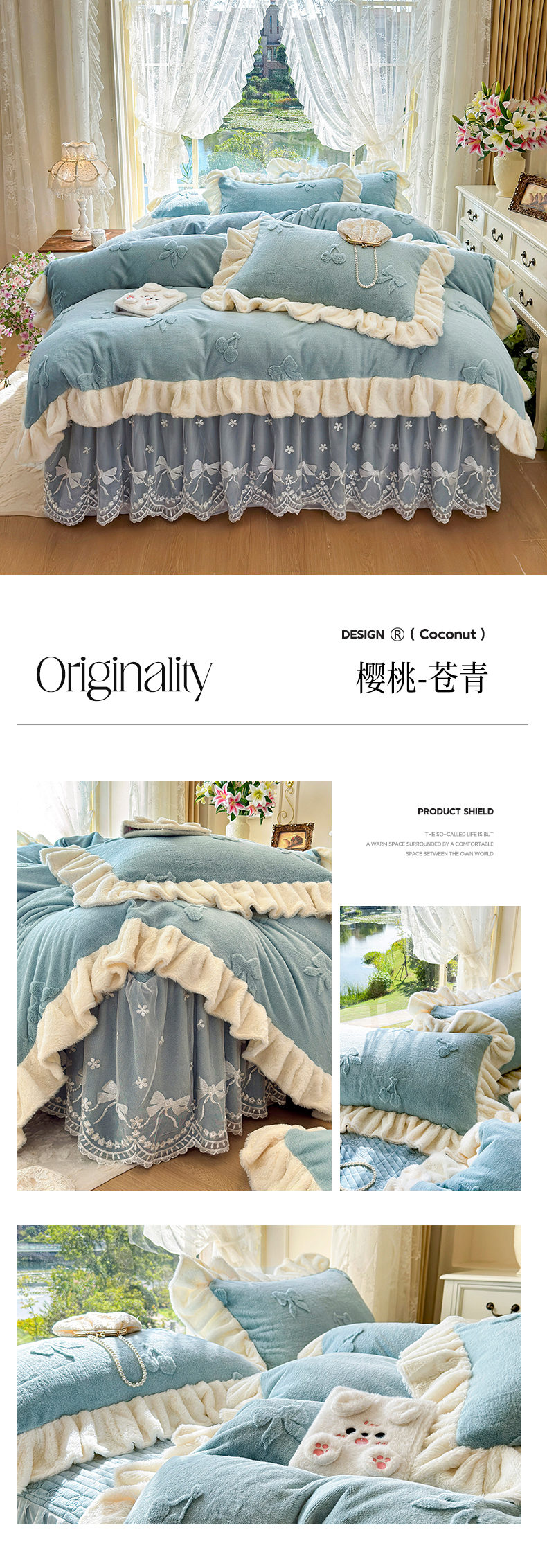 宜凡家纺 2025新款兔绒提花牛奶绒夹棉床裙四件套 简爱 苍青