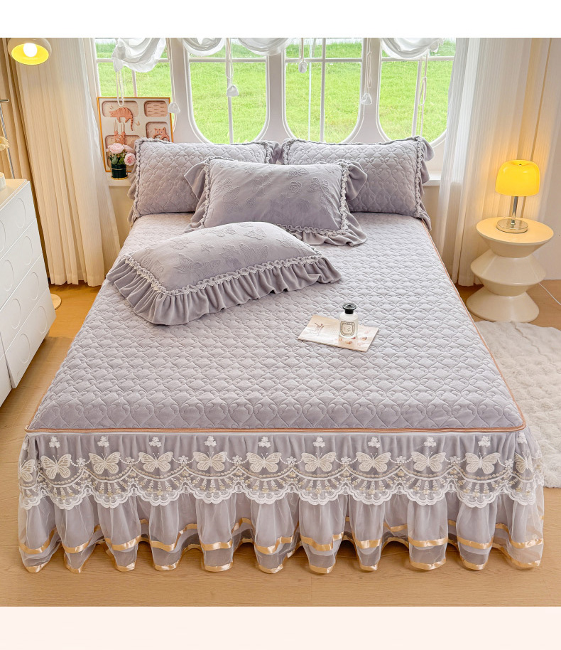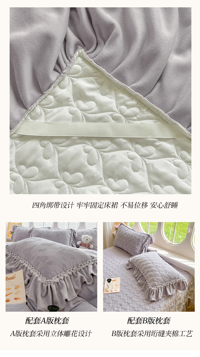(总)罗艺轩 2025新款简约雕花牛奶绒可拆卸单床裙床裙单件单品床裙蝶恋(已申专版,严格控价),蝶恋-灰,蝶恋-蓝,蝶恋-米黄,蝶恋-玉,蝶恋-紫