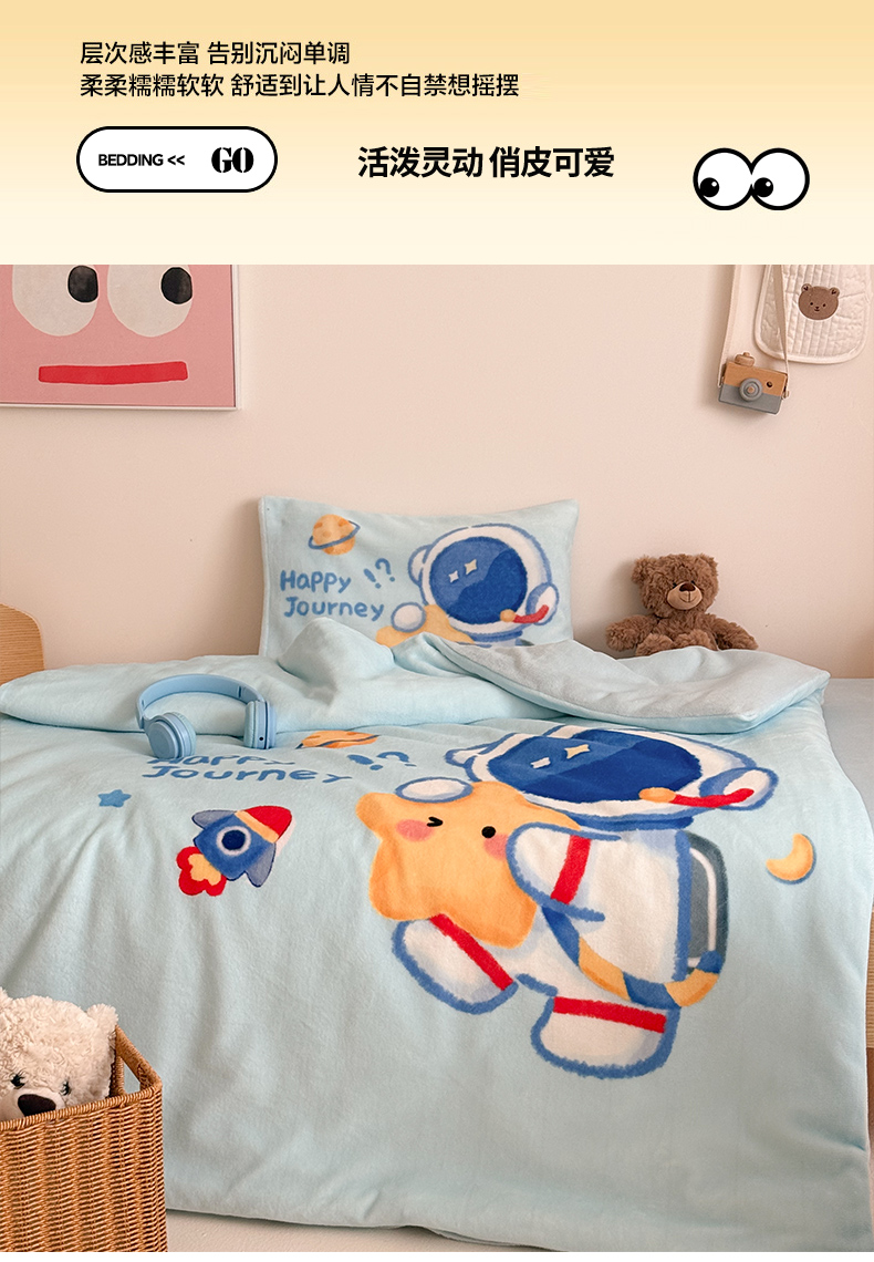 当前位置: 91家纺网 > 商品网购 > 床品套件 > 三件套 > 嗨生活 2025水彩系列新款大版牛奶绒三件套 幼儿园三件套 儿童三件套 开心宇航员