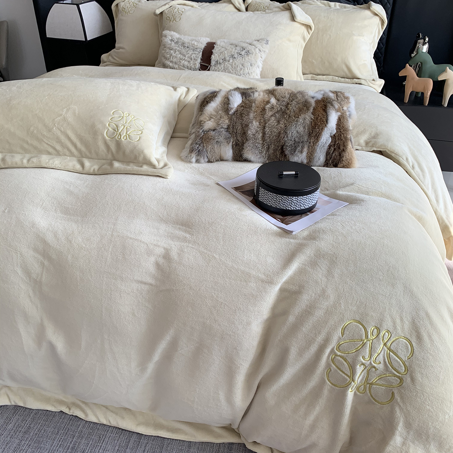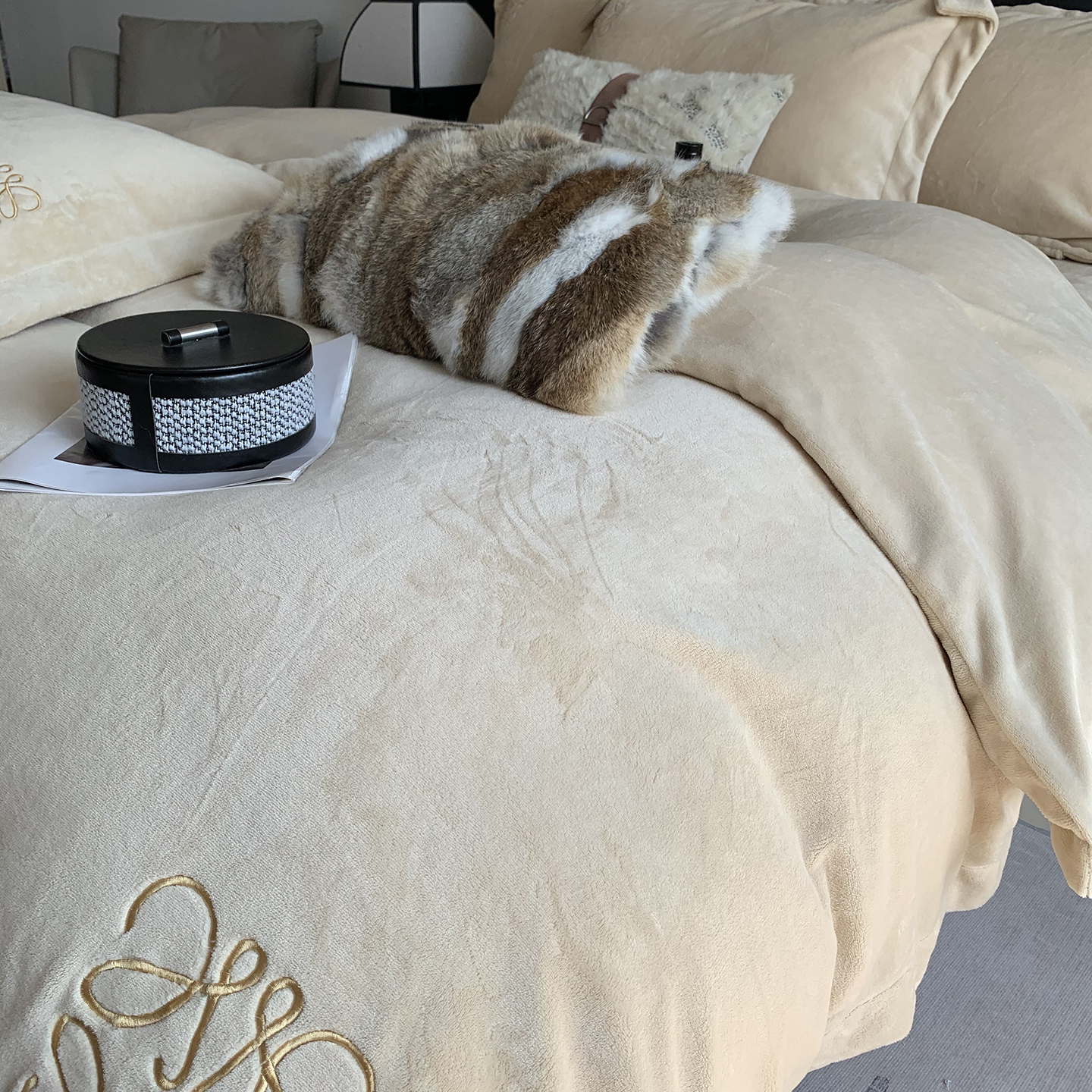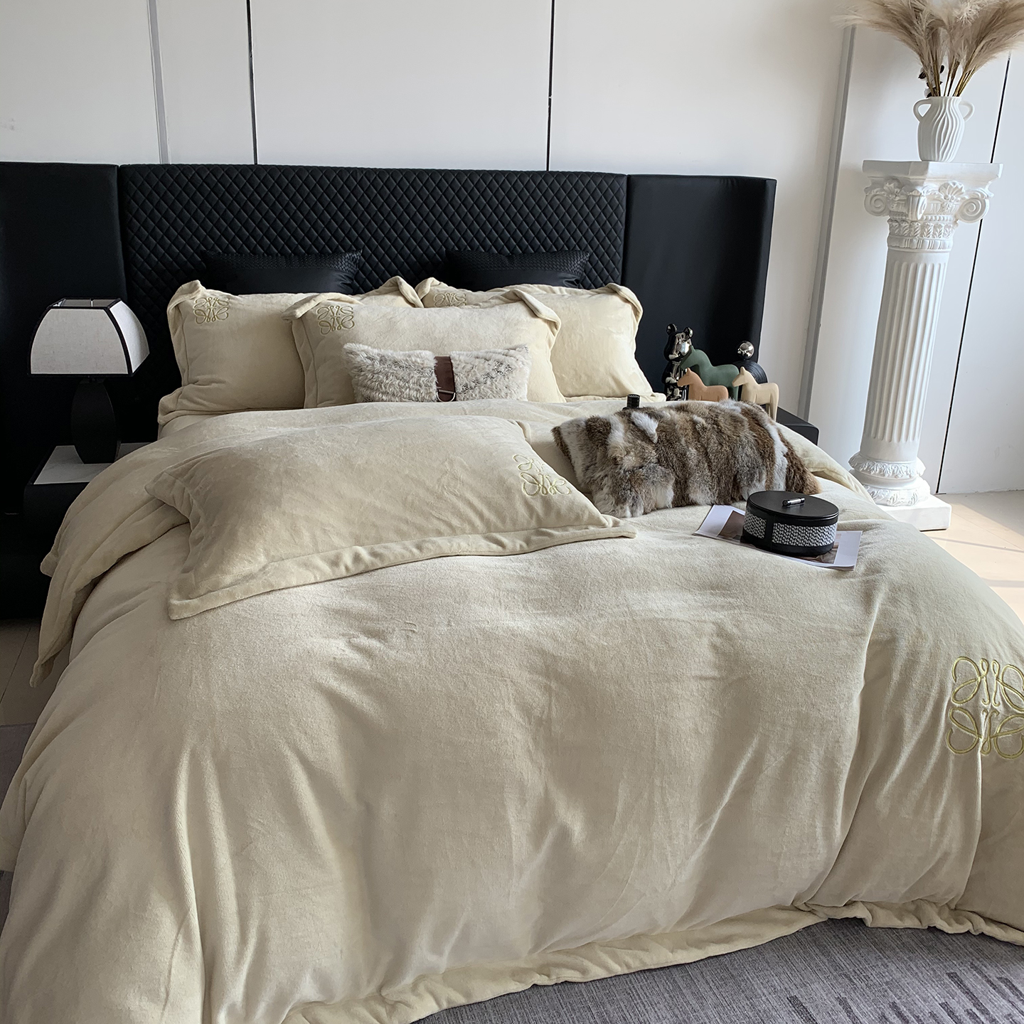 莱豫家纺 2025秋冬新品加厚牛奶绒刺绣款四件套宽边工艺全消光牛奶绒 罗意威温柔浅杏